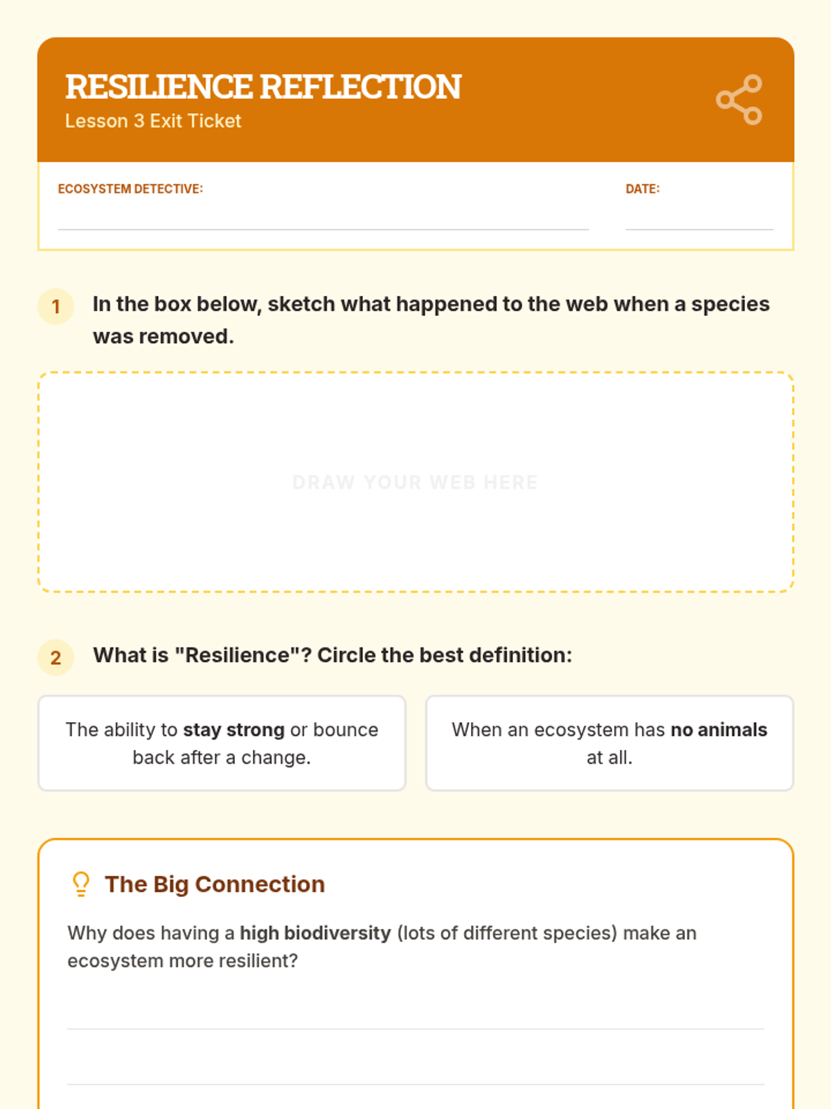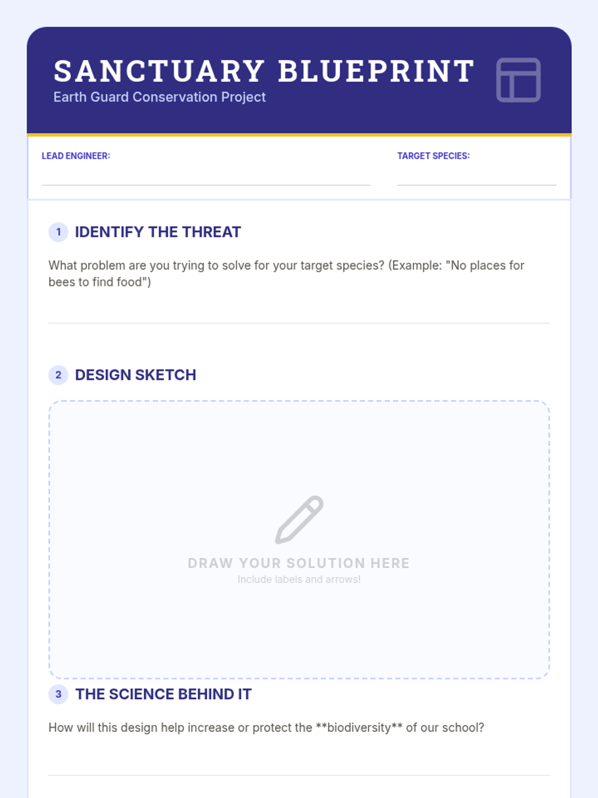A comprehensive 3rd-grade exploration of biodiversity, moving from local schoolyard observations to global habitat comparisons, ecosystem interdependence, and active conservation design. Students develop scientific observation skills and environmental stewardship.