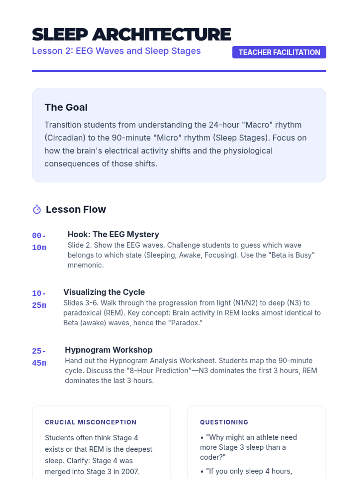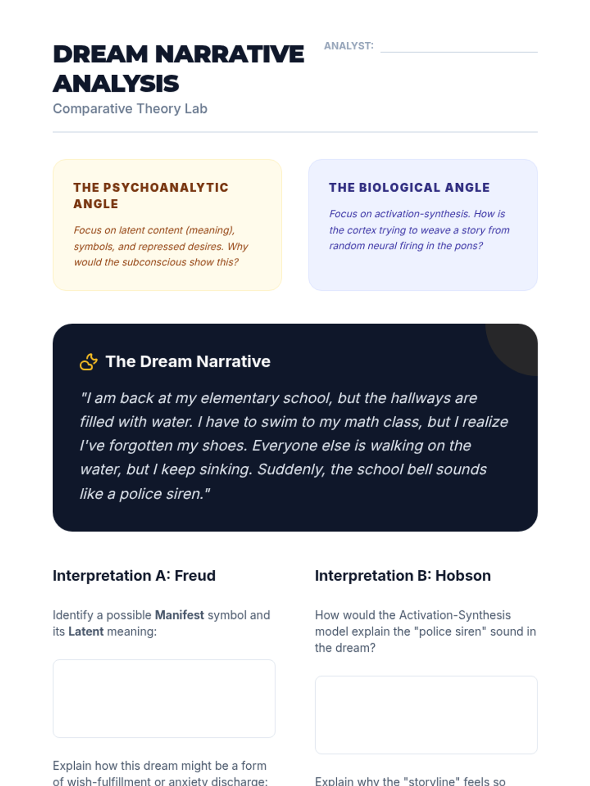 A comprehensive 10th-grade psychology unit exploring circadian rhythms, sleep architecture, disorders, dream theories, and psychoactive substances. Students investigate how biological and chemical factors regulate and alter human consciousness.