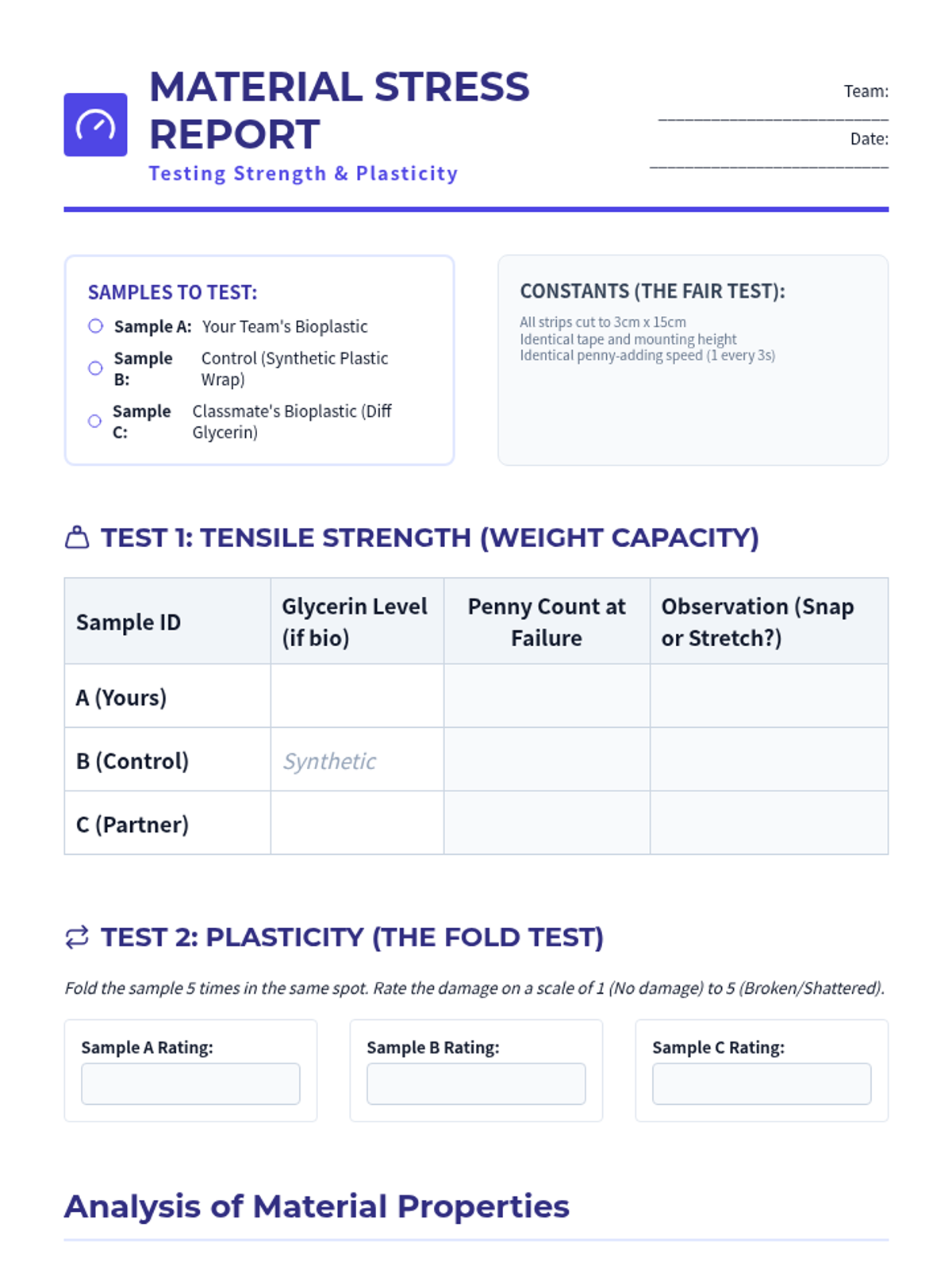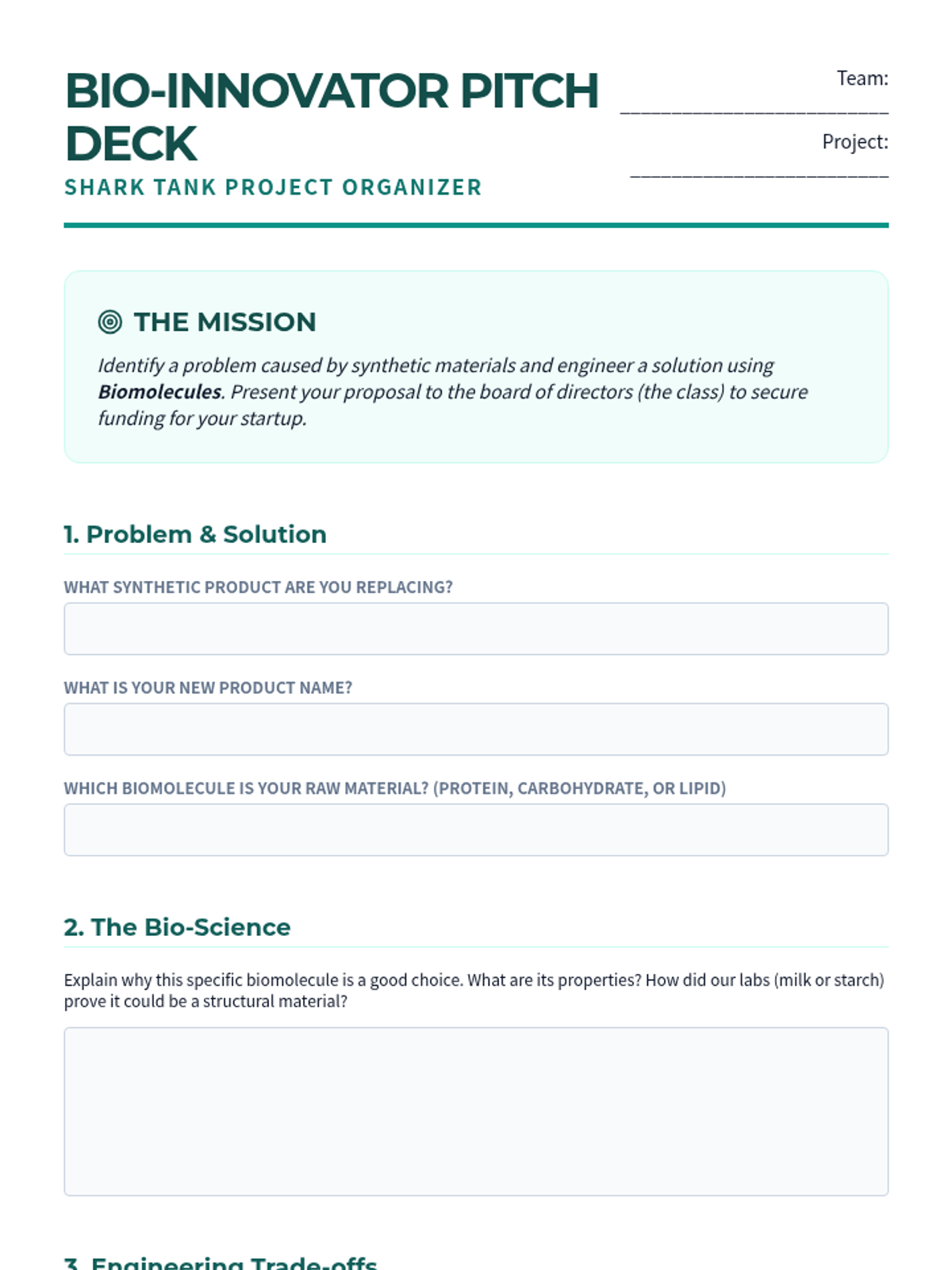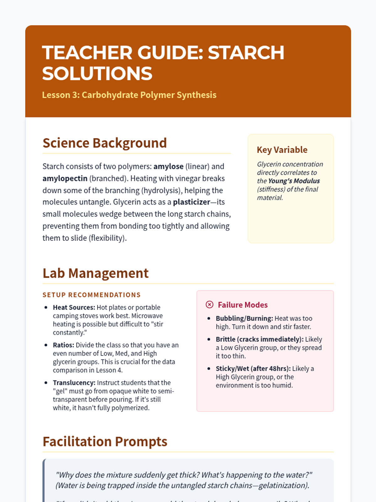 An engineering-focused biology sequence where students explore biomolecules as raw materials. They synthesize bioplastics from milk and starch, test their properties against synthetic plastics, and research future sustainable materials.