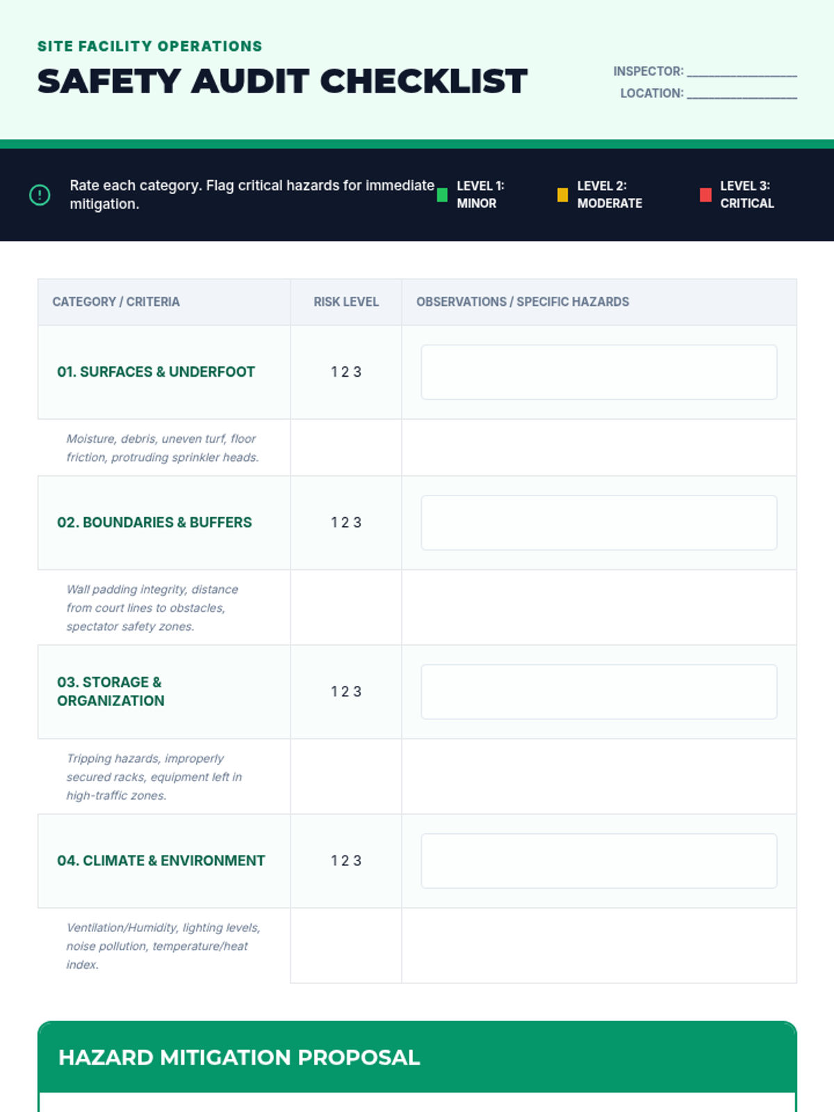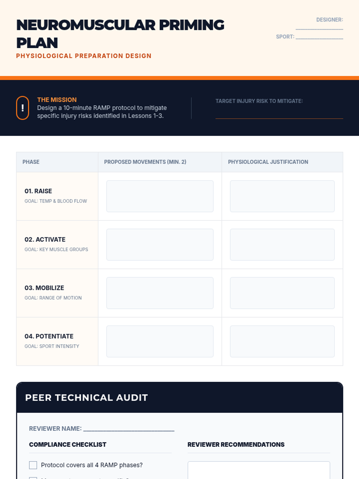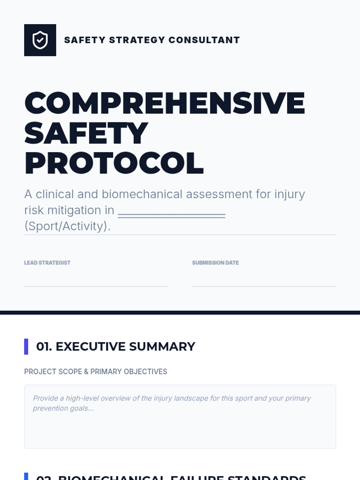 An analytical sequence exploring injury prevention through the lenses of biomechanics, protective engineering, environmental assessment, and physiological preparation. Students transition from understanding mechanical failure to designing comprehensive safety protocols.