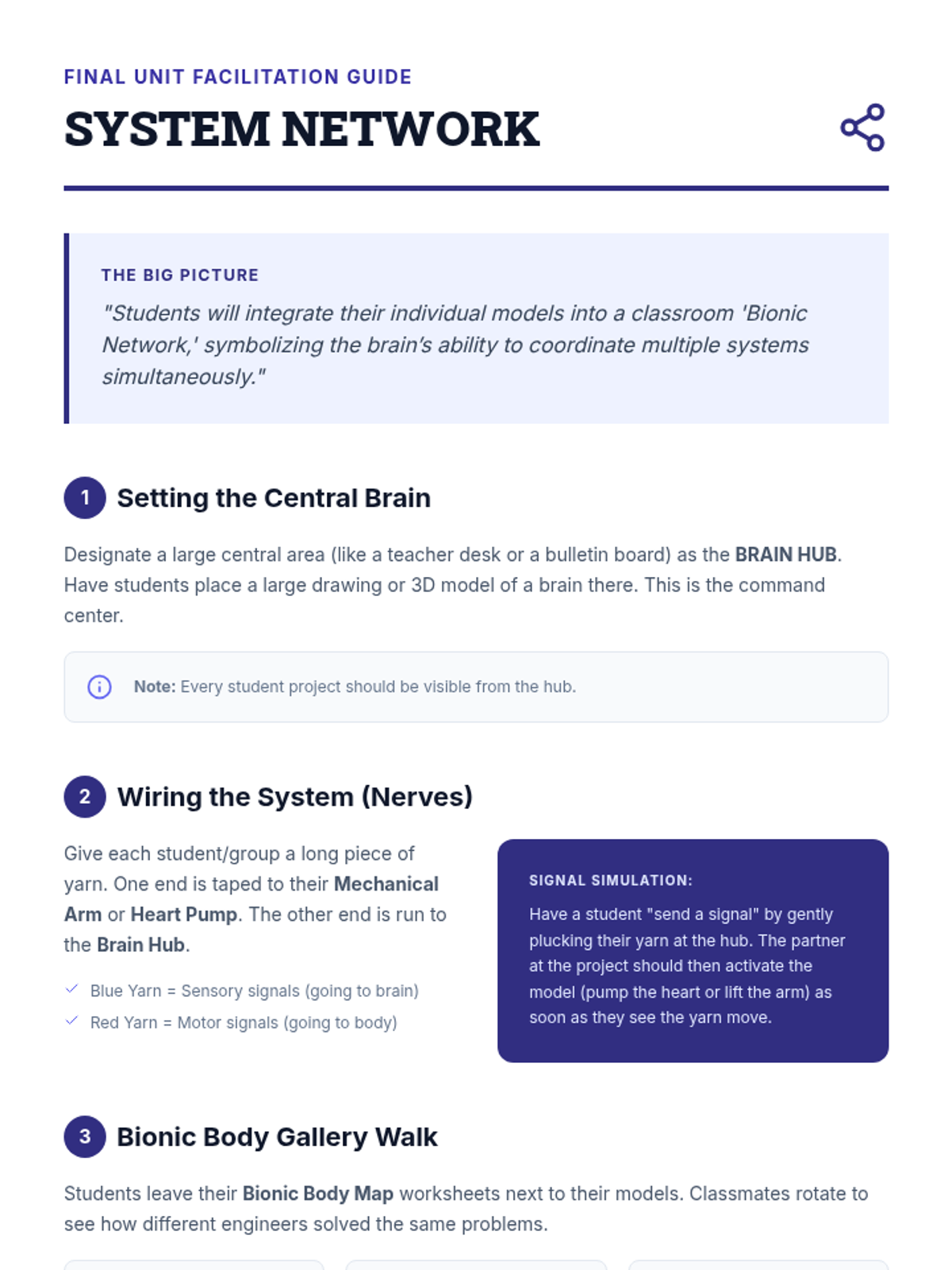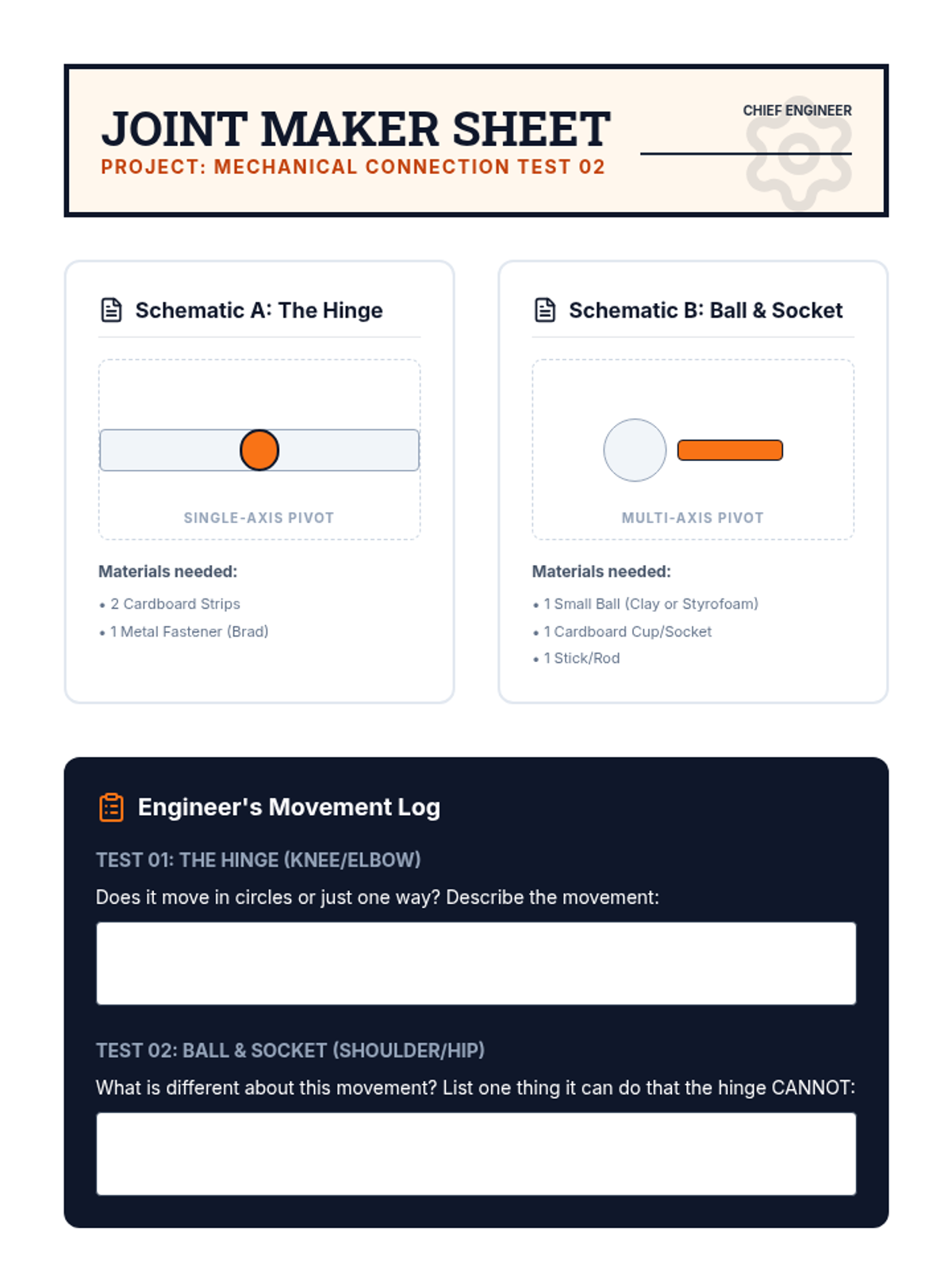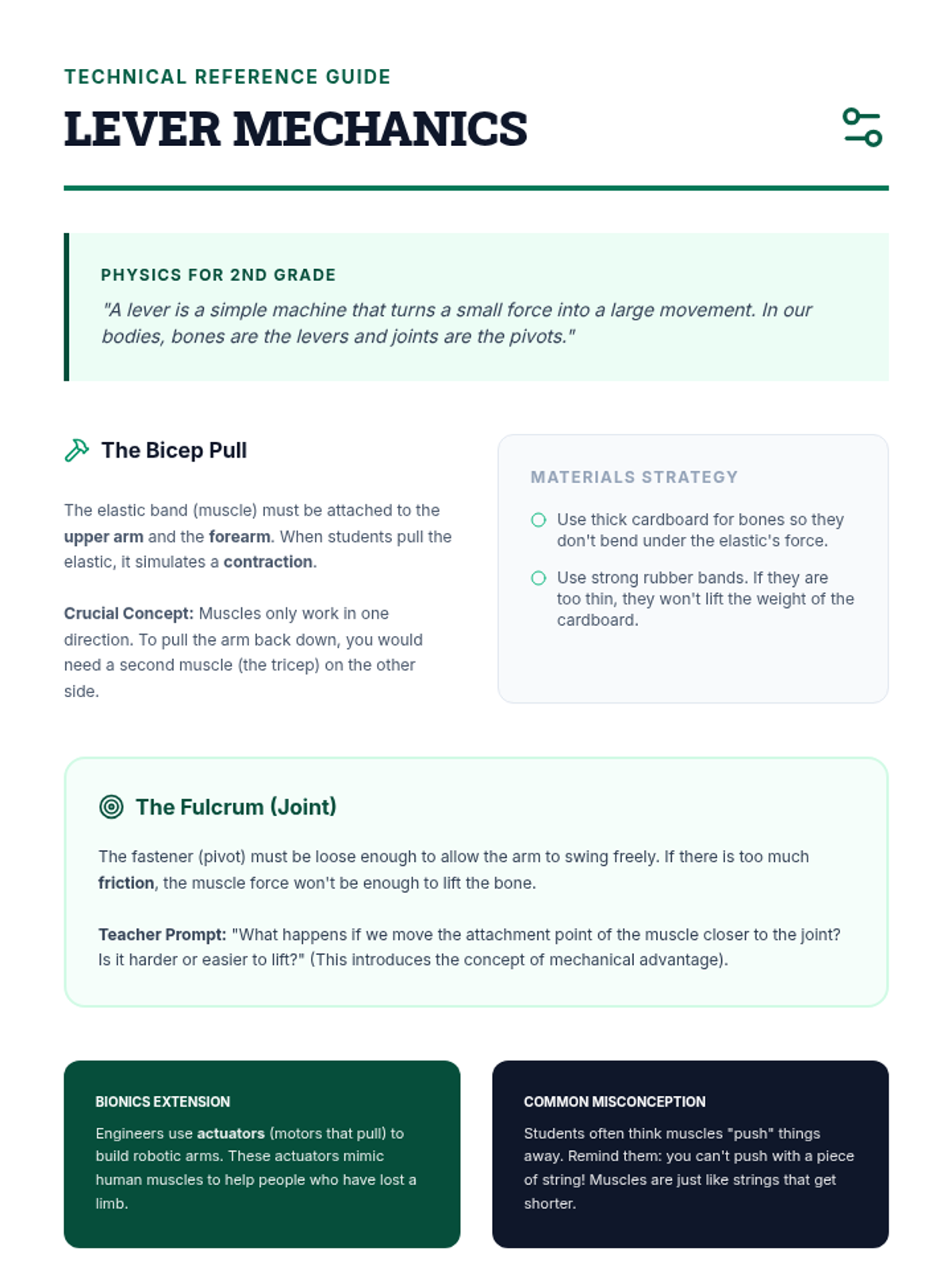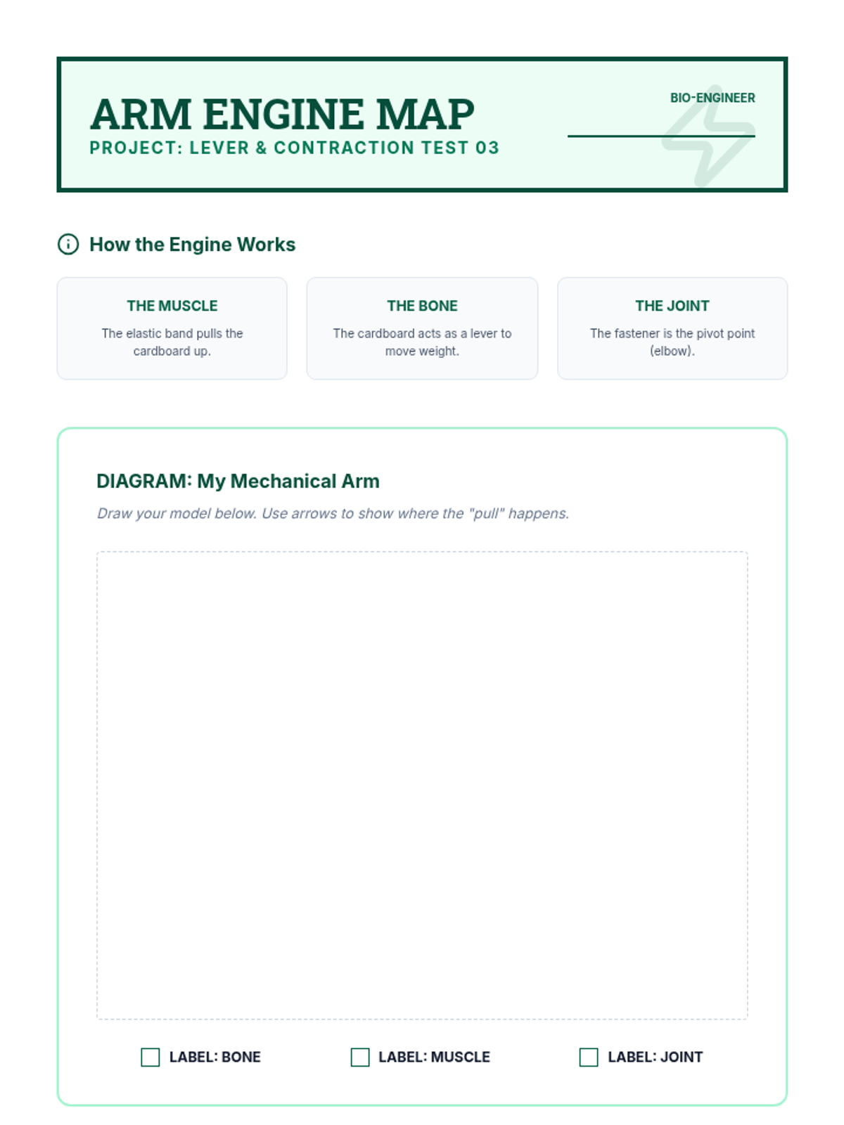 A project-based unit where 2nd-grade students act as biomechanical engineers to build mechanical models of human body systems, exploring bones, joints, muscles, the heart, and the nervous system.