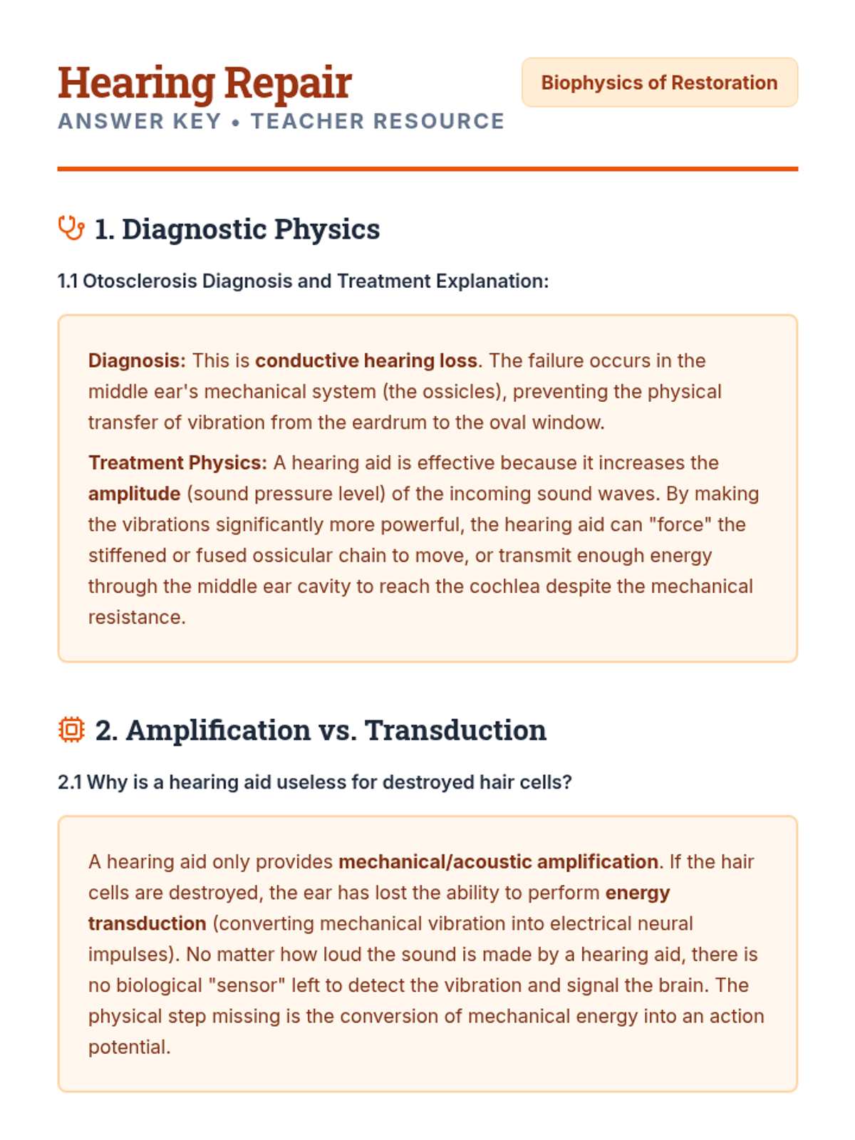 A 12th-grade physics unit exploring the mechanics of human hearing and medical ultrasound, focusing on energy transduction, impedance matching, and psychoacoustics.