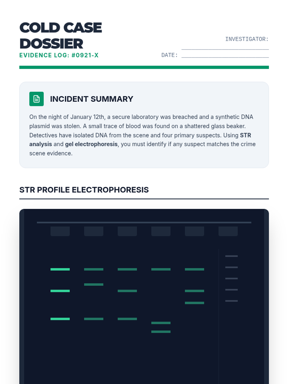 This sequence explores the practical application of biotechnology, moving from DNA extraction to advanced analysis techniques like PCR and DNA profiling. Students engage in hands-on labs and simulations to understand how molecular tools are used in forensics and research.