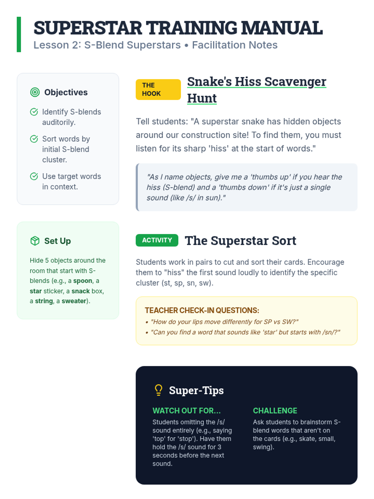 A systematic 5-lesson unit for 2nd Grade focusing on decoding and encoding initial L, R, and S blends, final blends, and complex three-letter clusters through phonemic awareness and orthographic mapping.