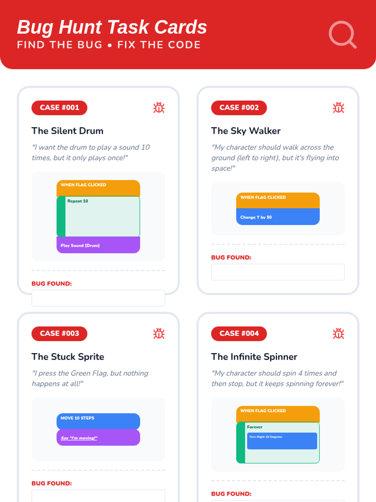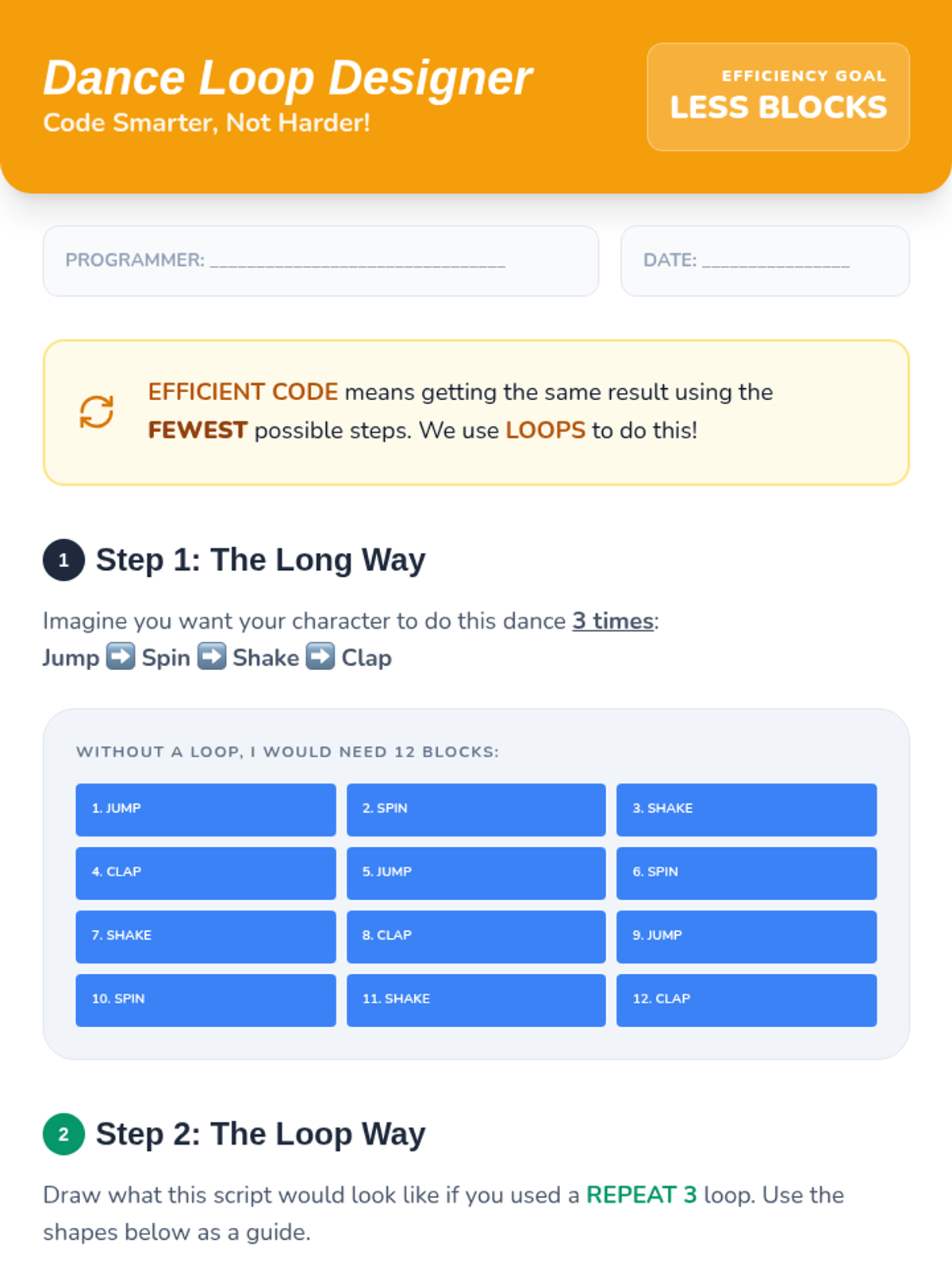 A comprehensive introduction to block-based programming for 3rd graders, covering algorithms, syntax, events, loops, debugging, and project design through a 'Code Lab' theme.