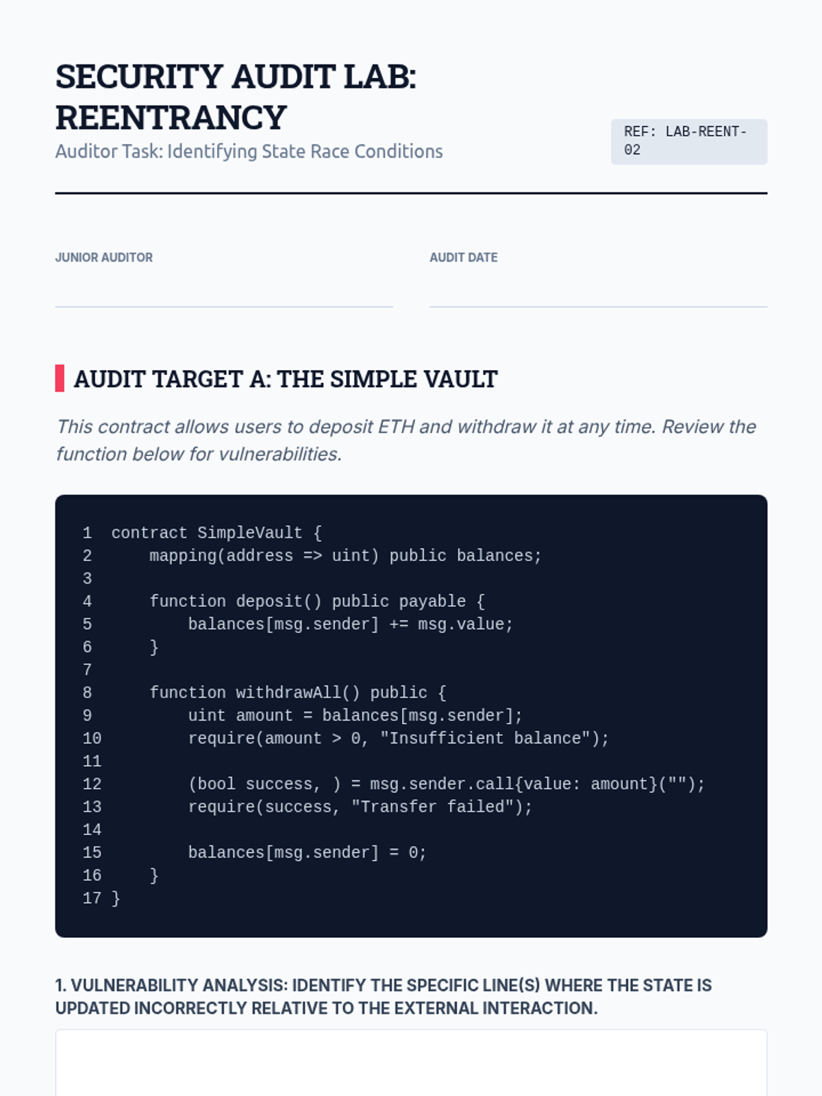 An advanced course focusing on security vulnerabilities in blockchain systems, smart contracts, and decentralized architecture, using a 'Red Team' auditing approach.