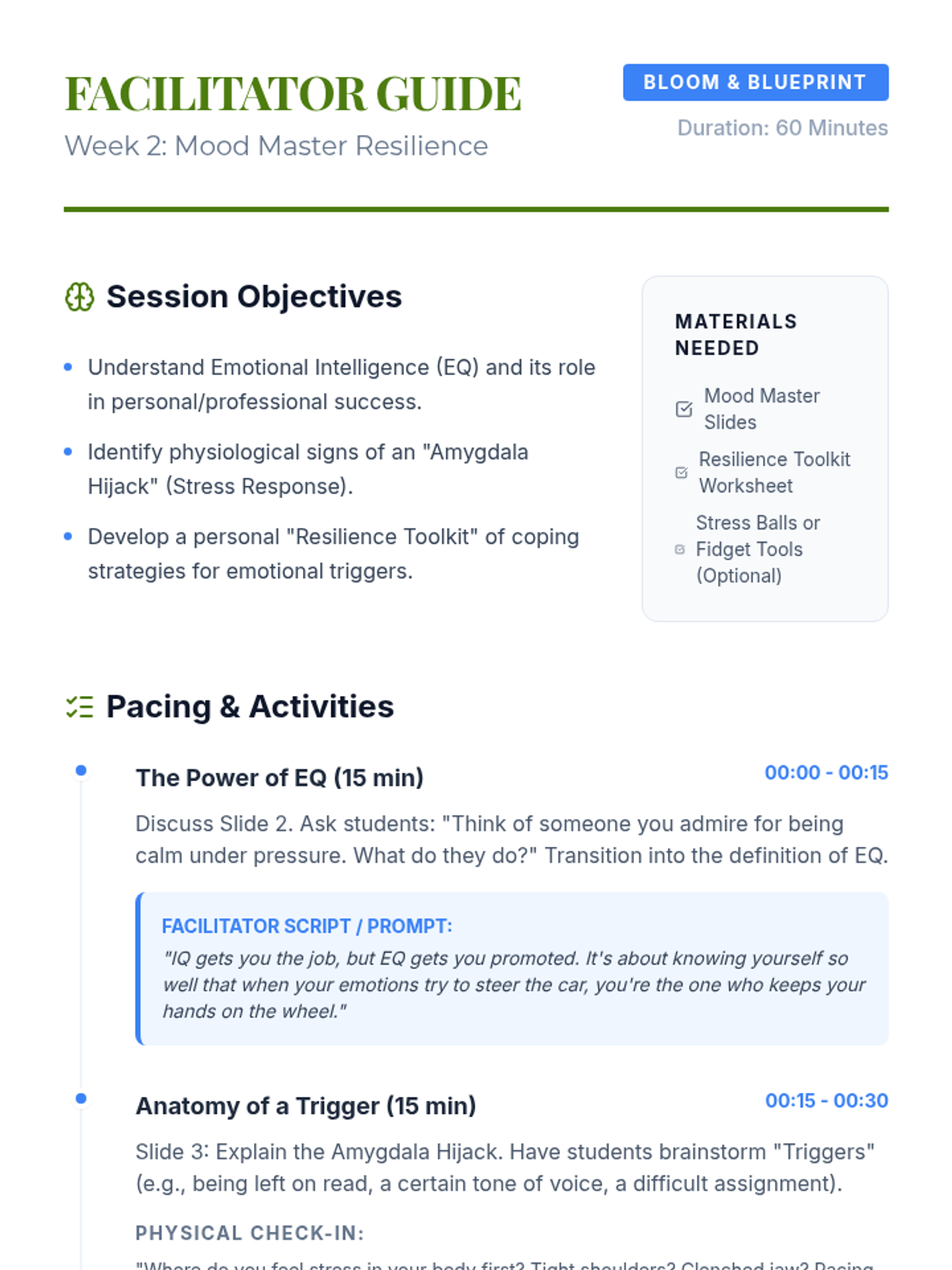 A 5-lesson series focused on cognitive behavioral techniques, helping students identify unhelpful thought patterns, regulate emotions, and build mental resilience through the 'Mind Mechanics' framework.