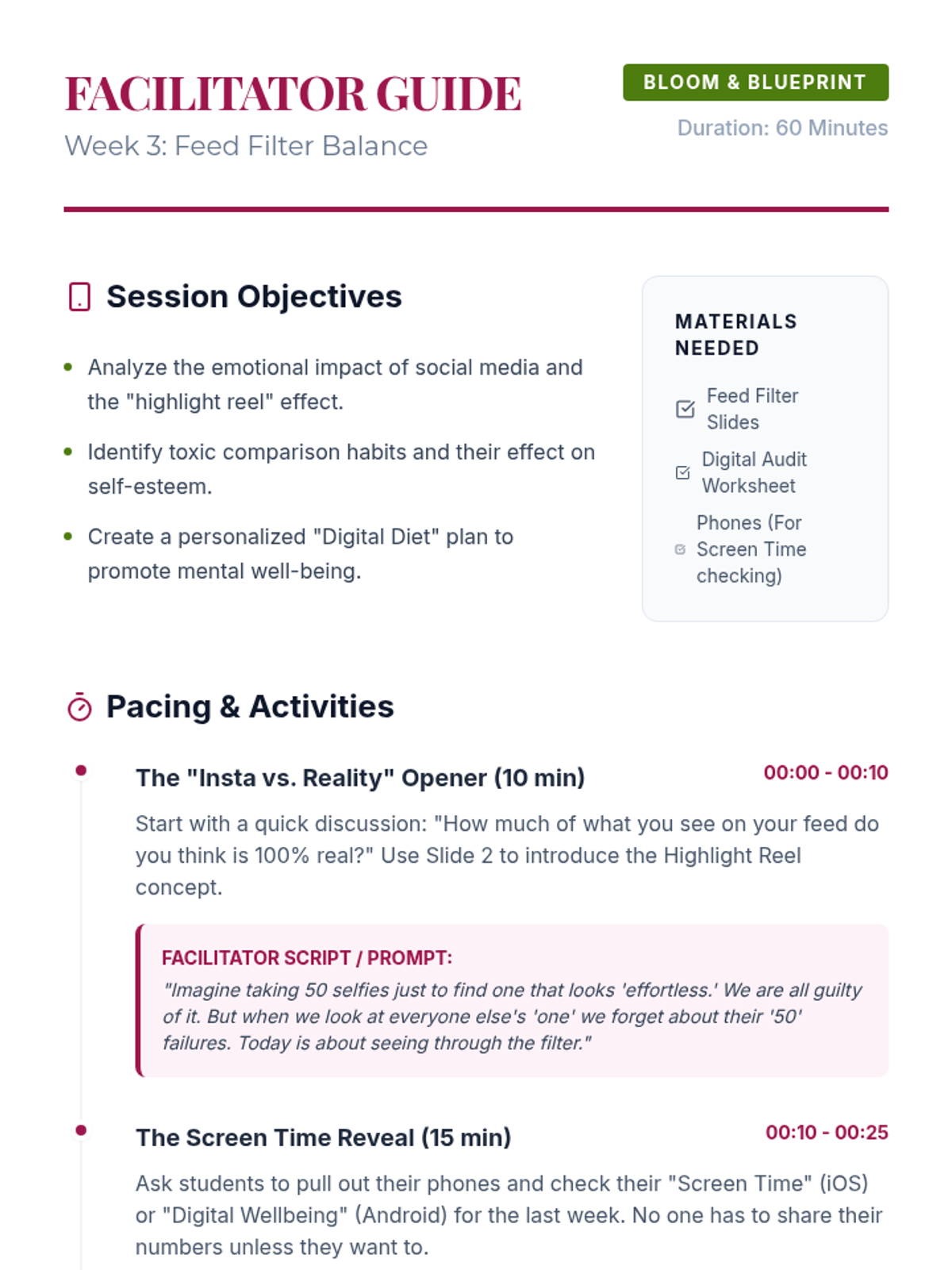 An 8-week personal development and career exploration program designed for high school girls, focusing on identity, emotional intelligence, healthy relationships, and professional growth in a digital age.
