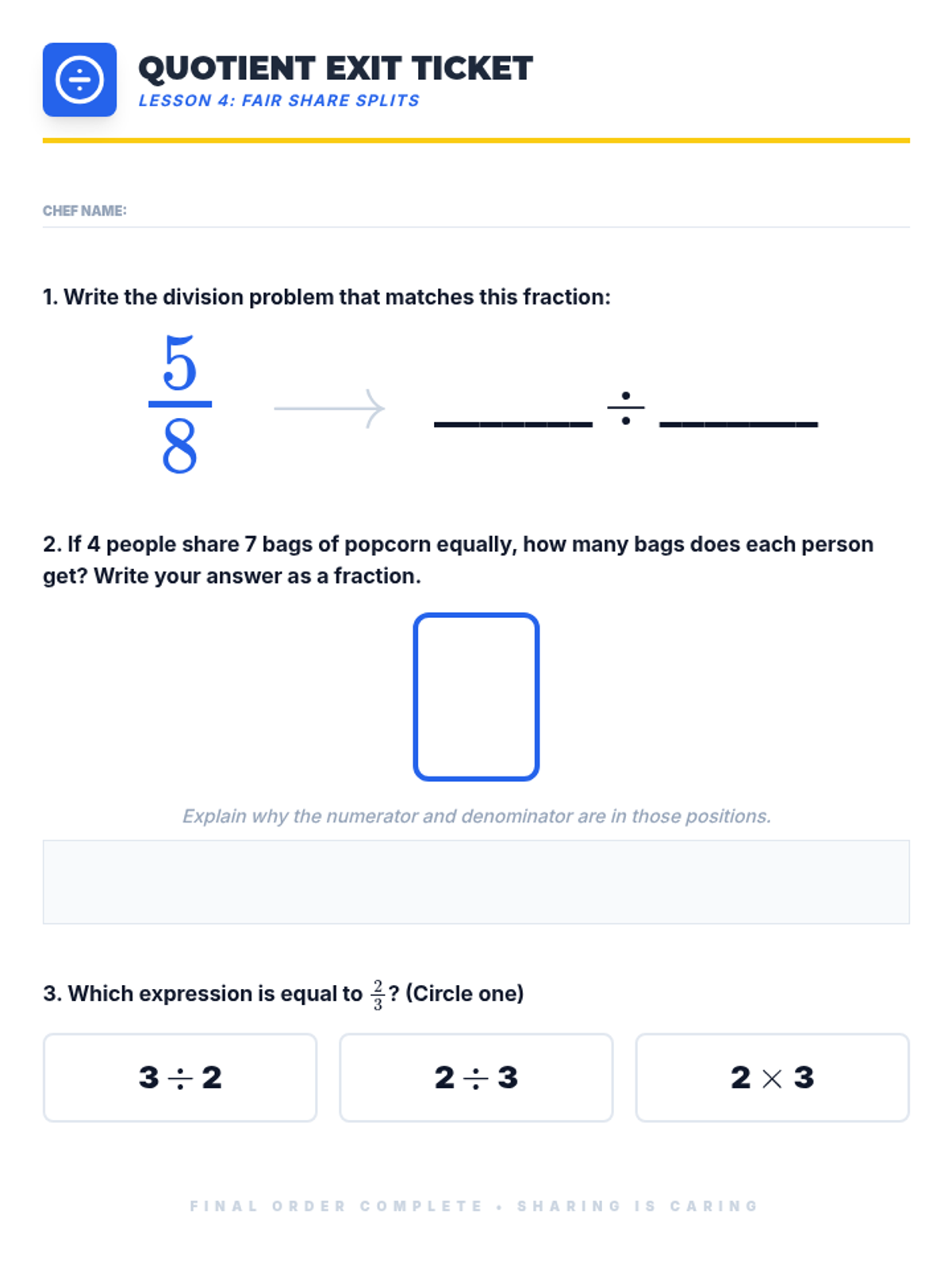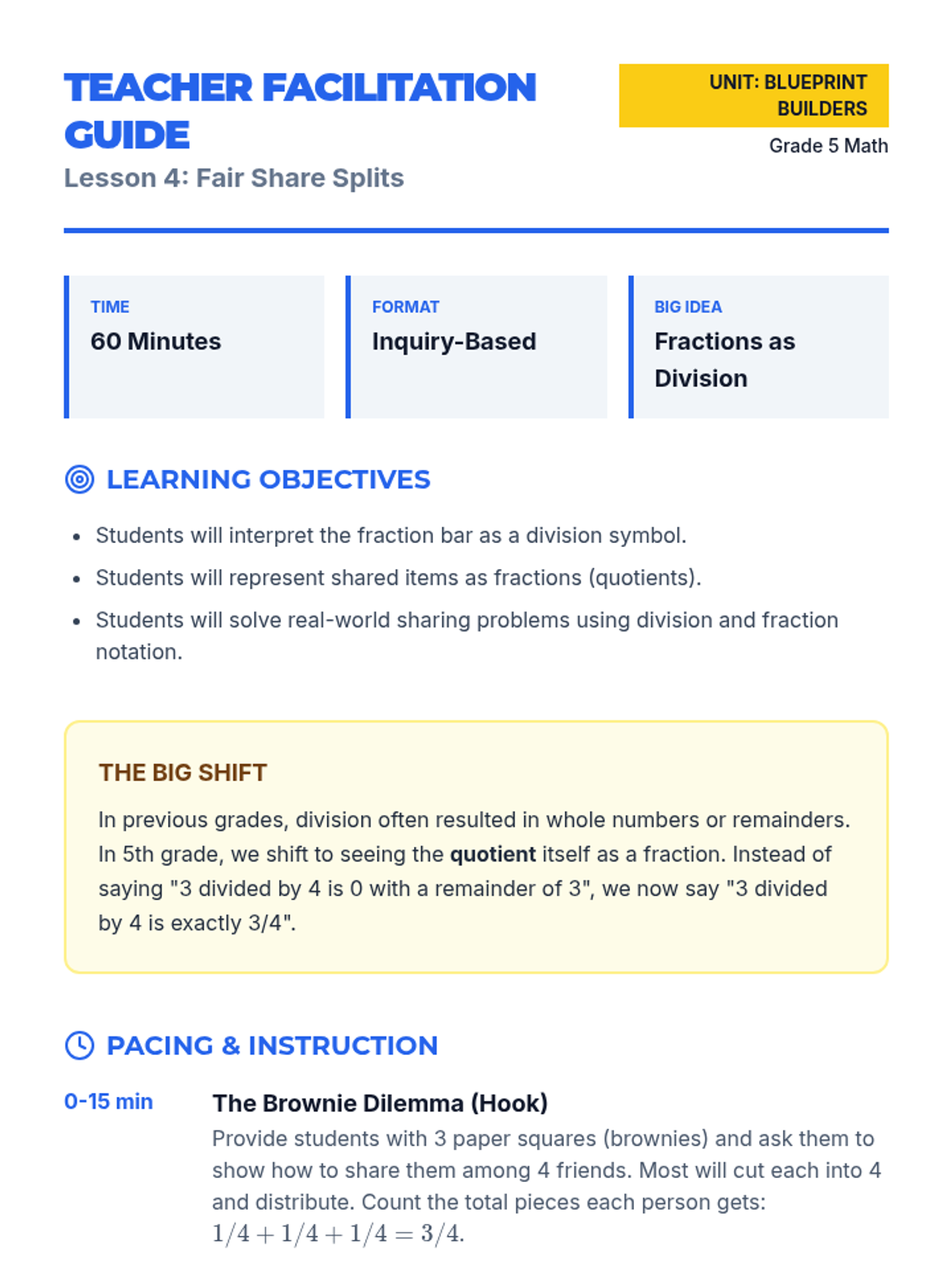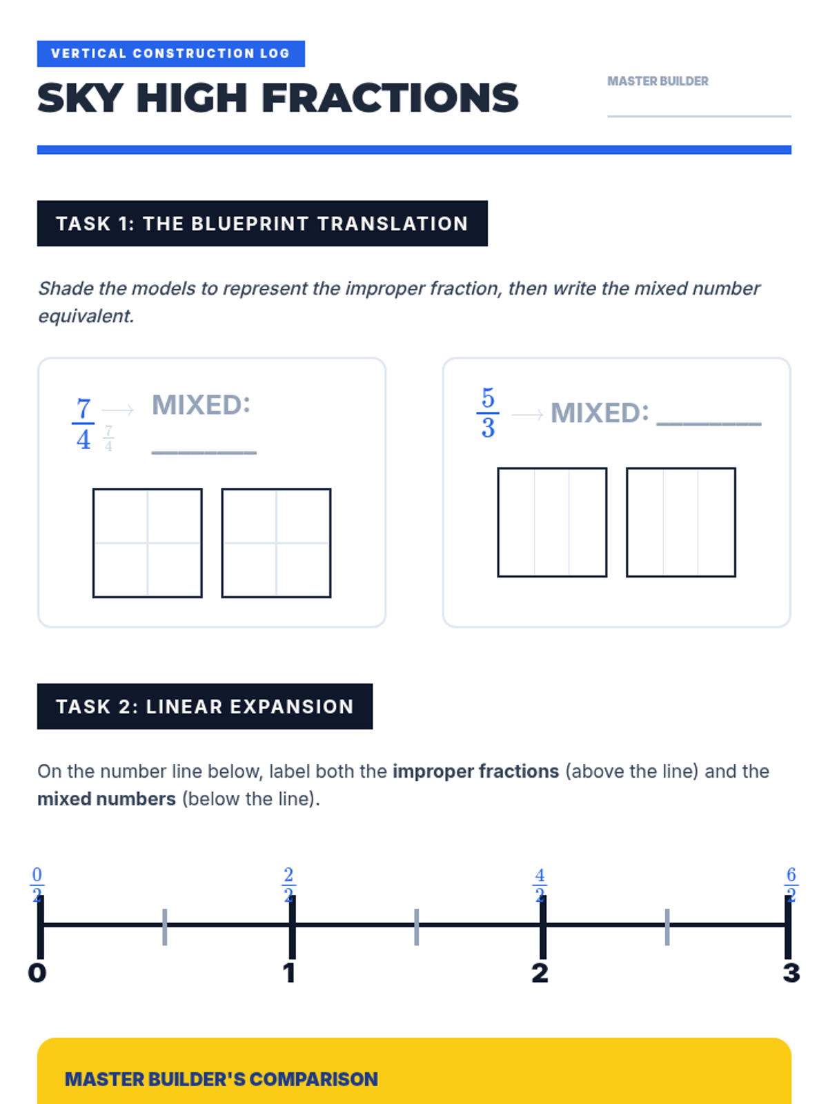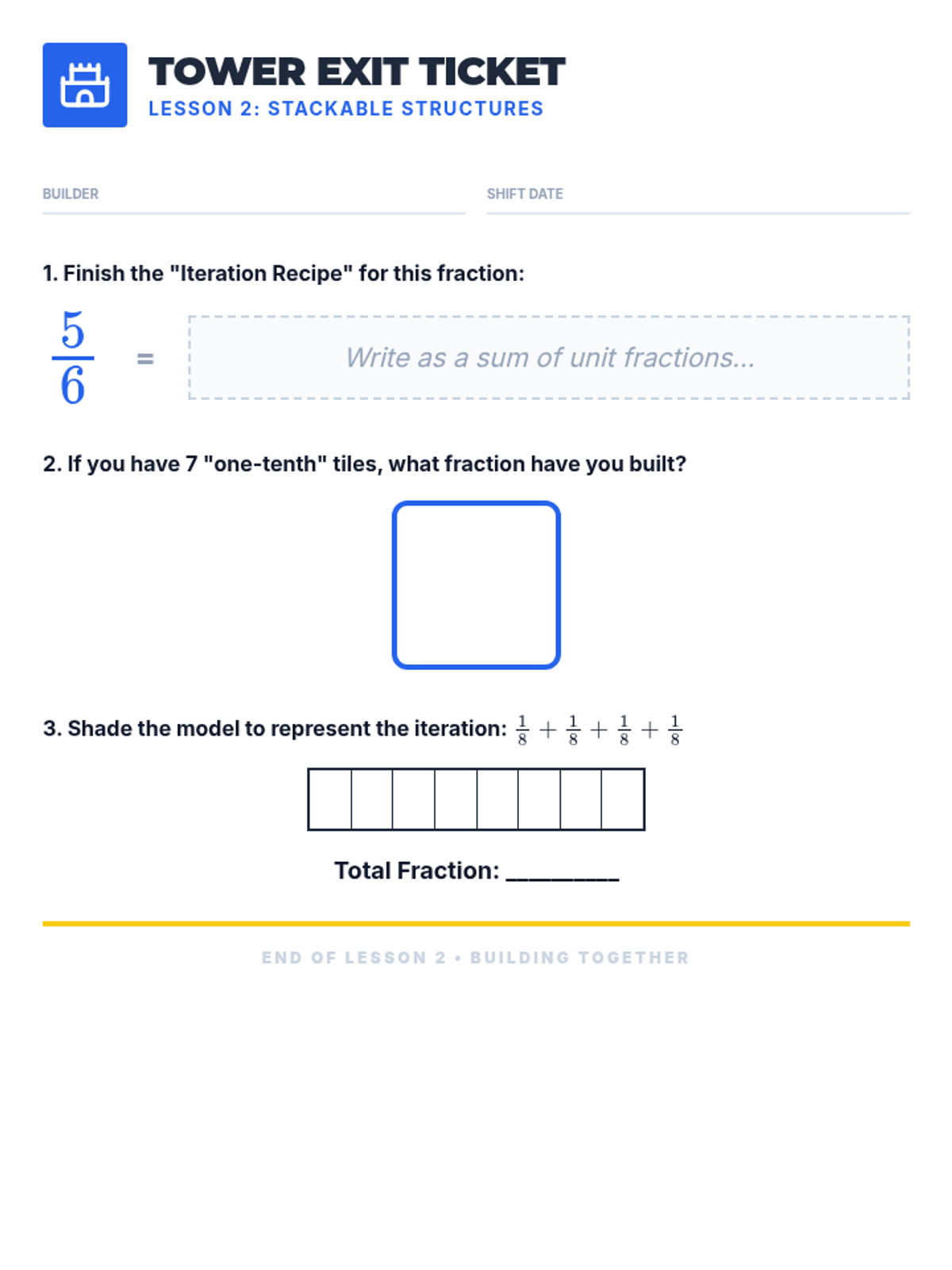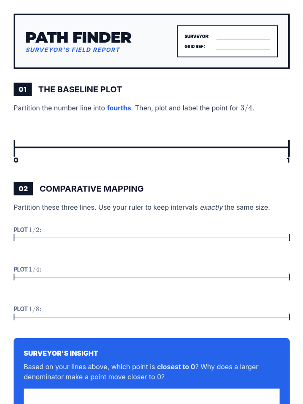 This sequence strengthens student understanding of fractions as numbers through a rigorous workshop model designed to solidify foundational concepts before advanced operations. Students progress from identifying unit fractions to constructing complex fractional values using area models, set models, and number lines.