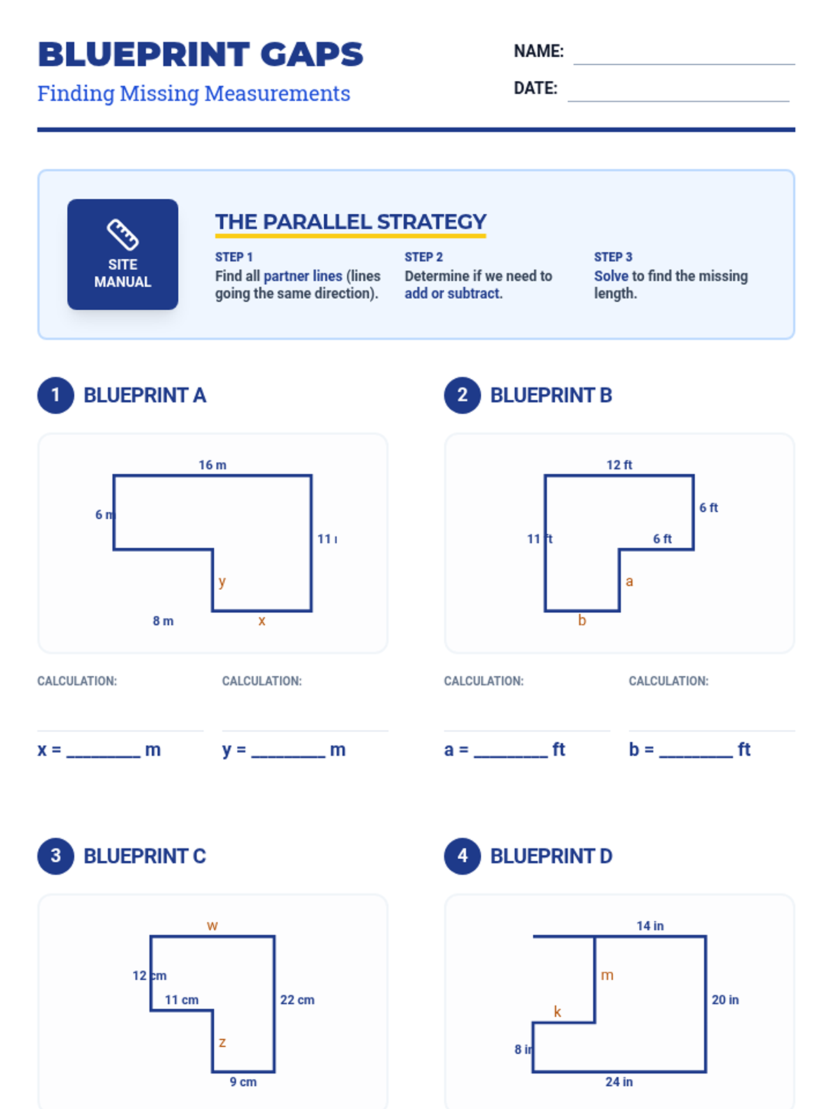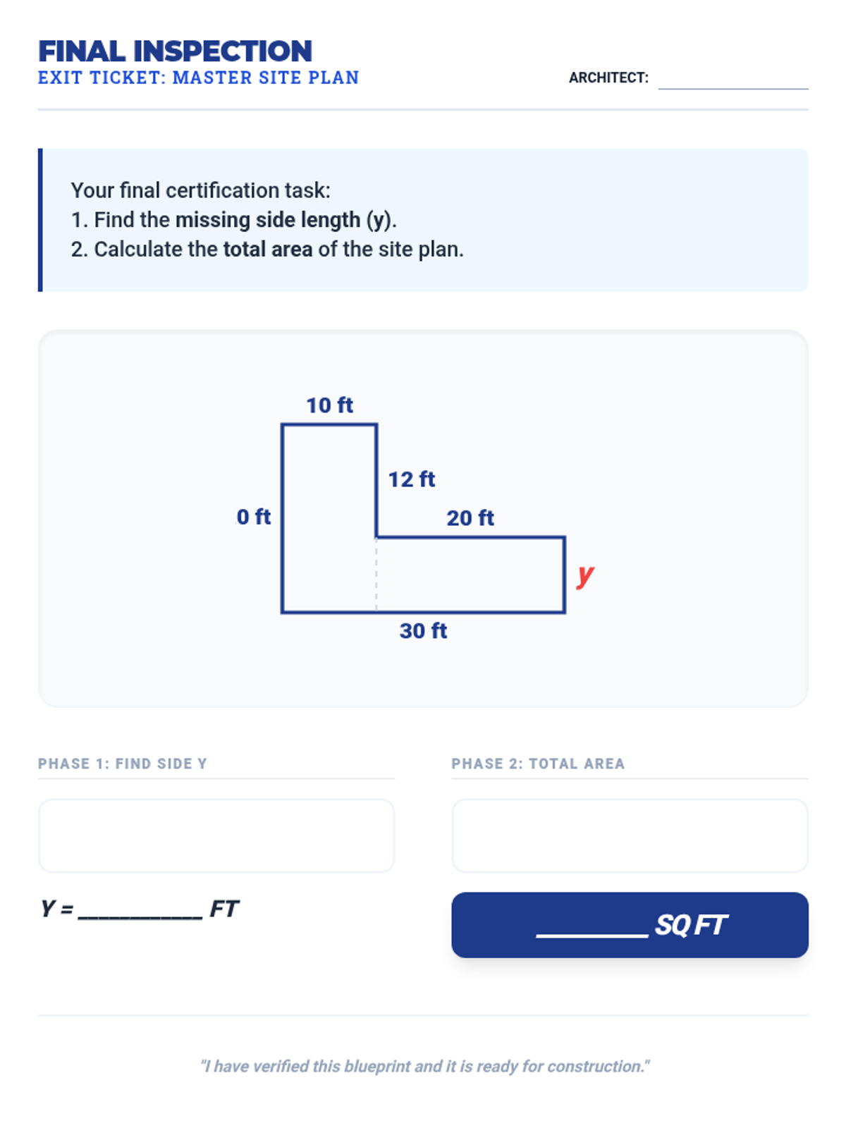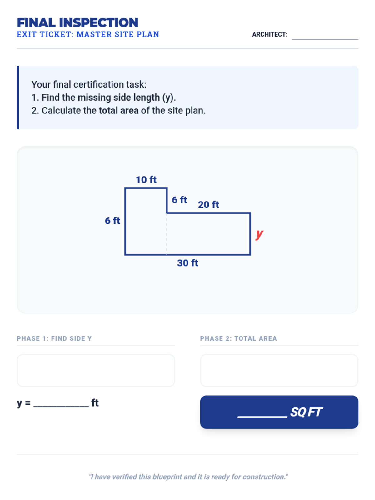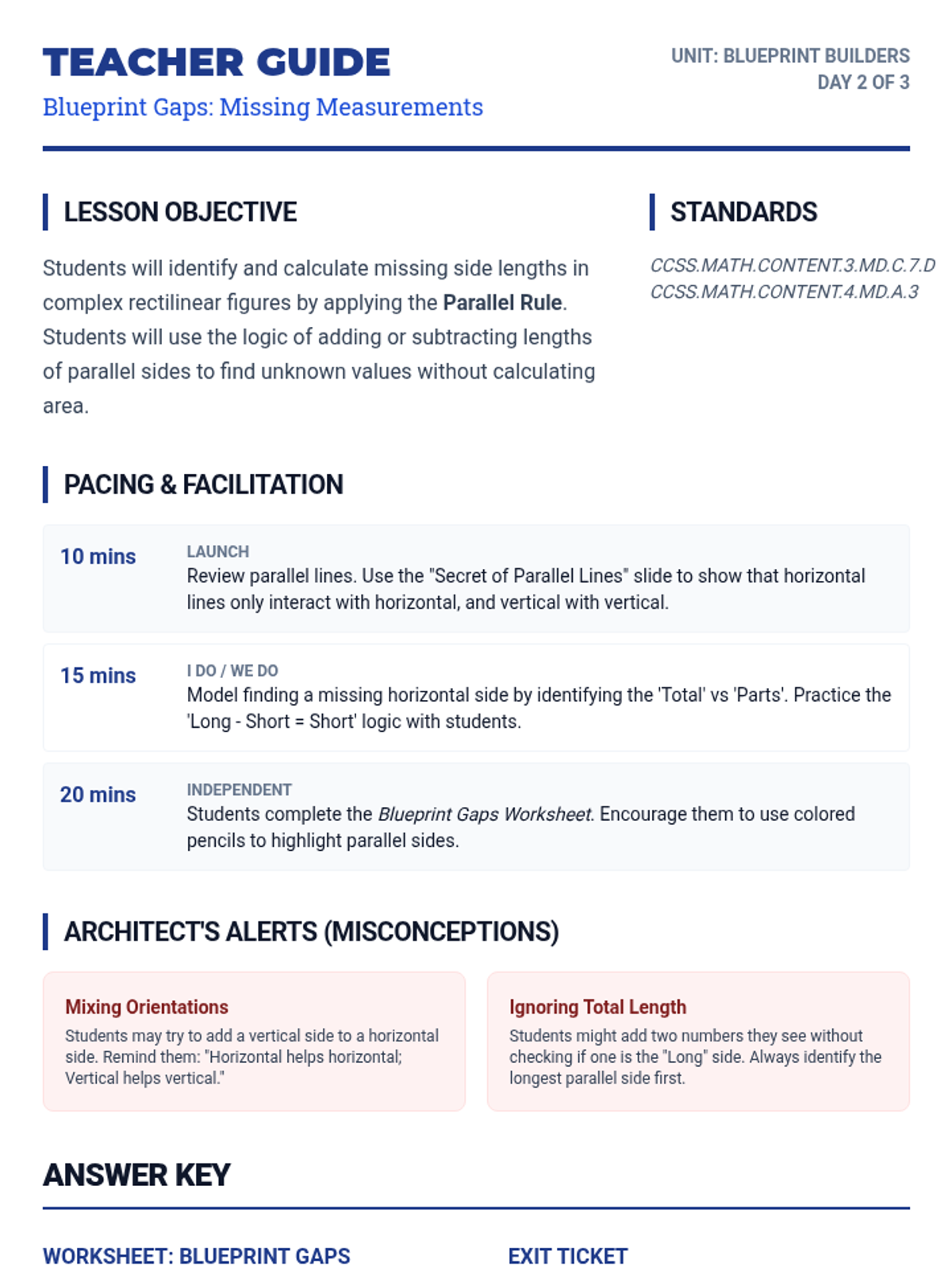 A multi-day math unit on complex rectilinear figures, progressing from finding area with all labels to identifying missing side lengths and solving multi-step problems.