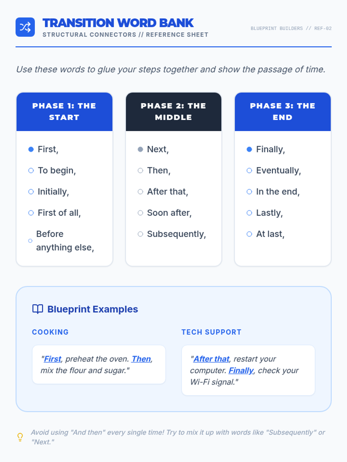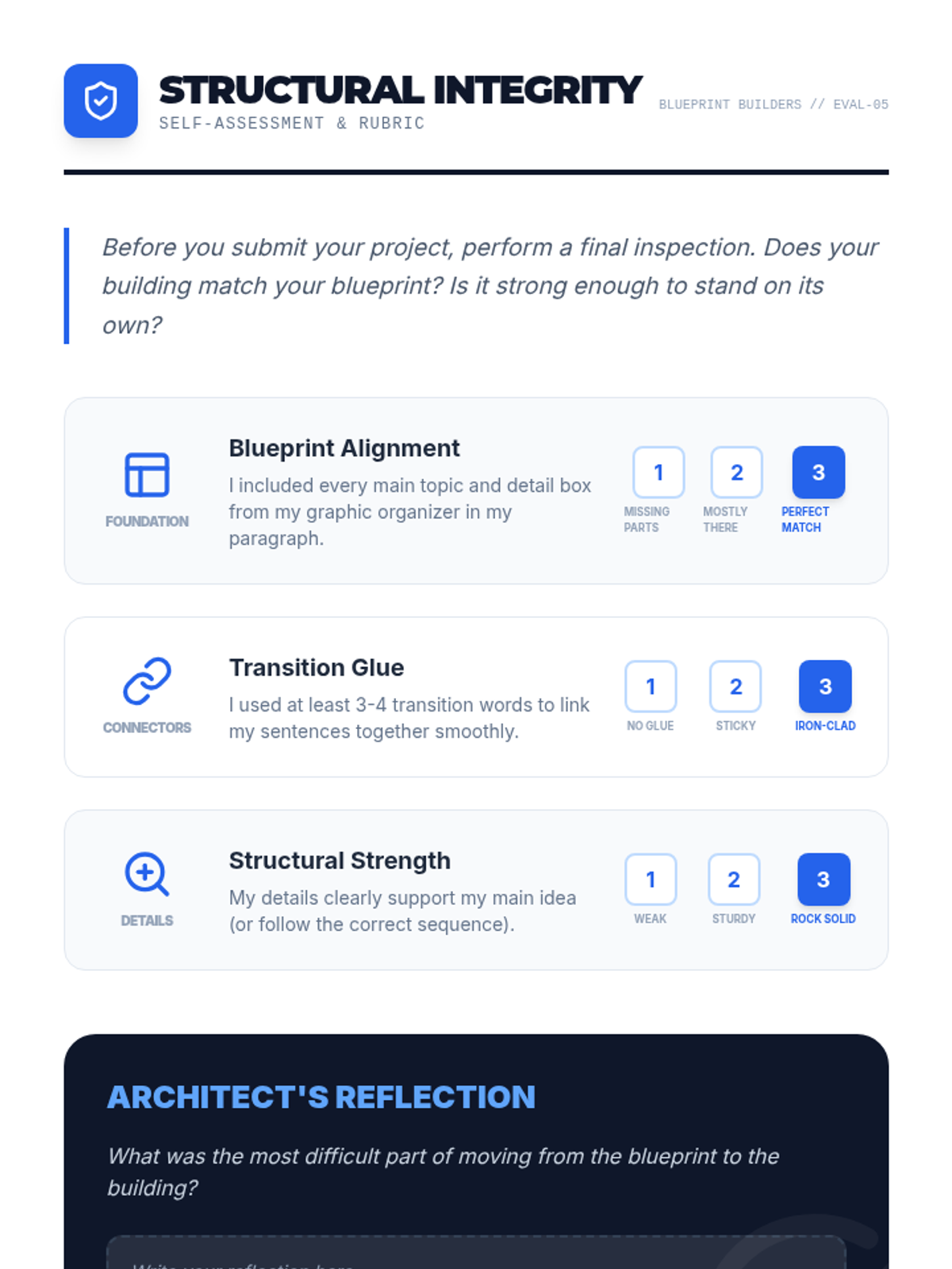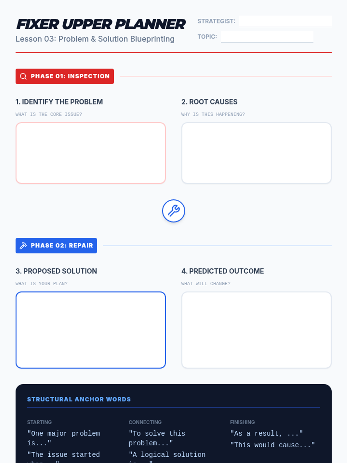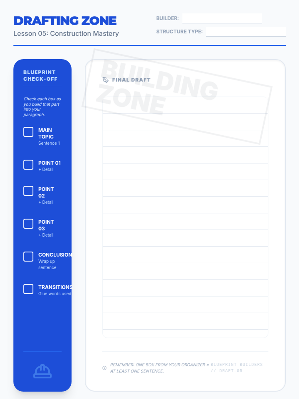 A unit on essential writing and grammar skills, focusing on sentence structure and cohesion through verbs and transition words.