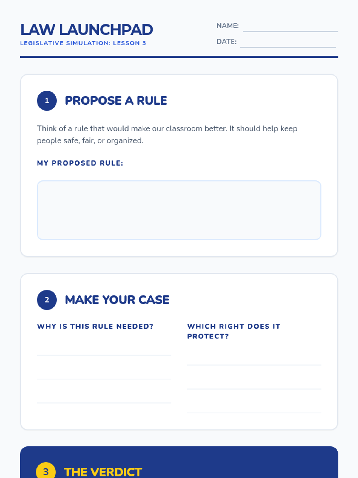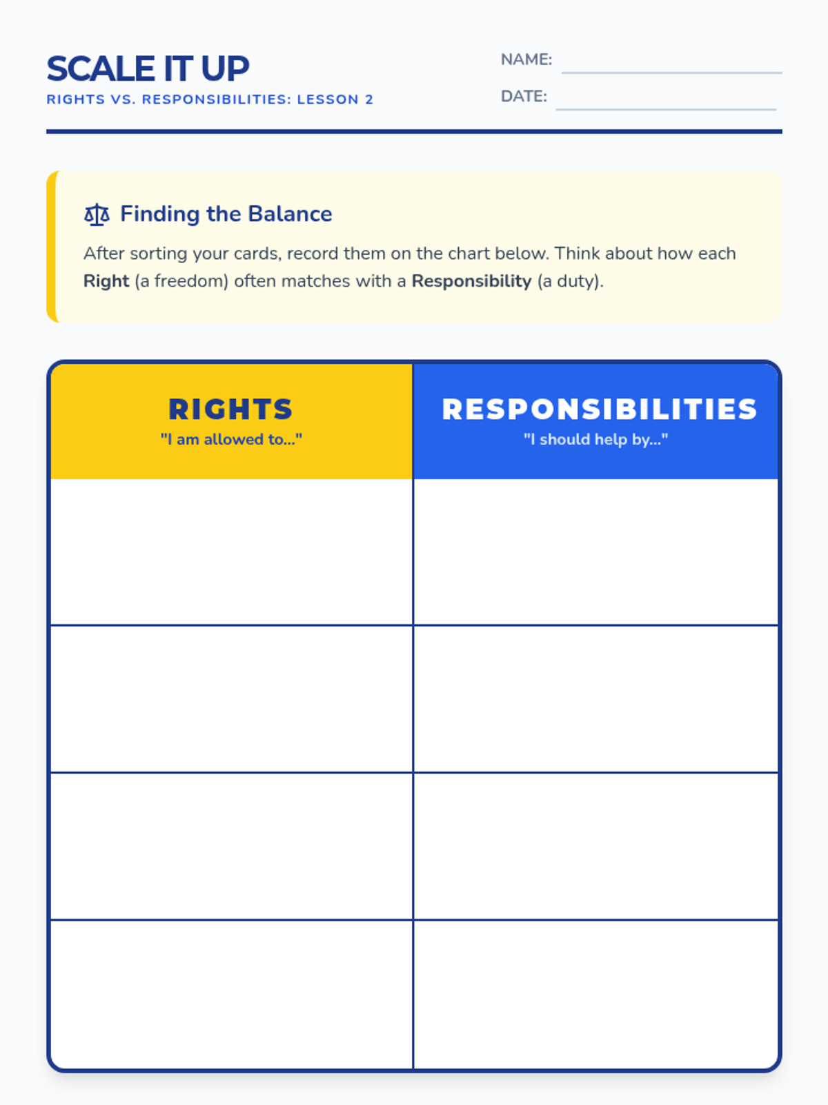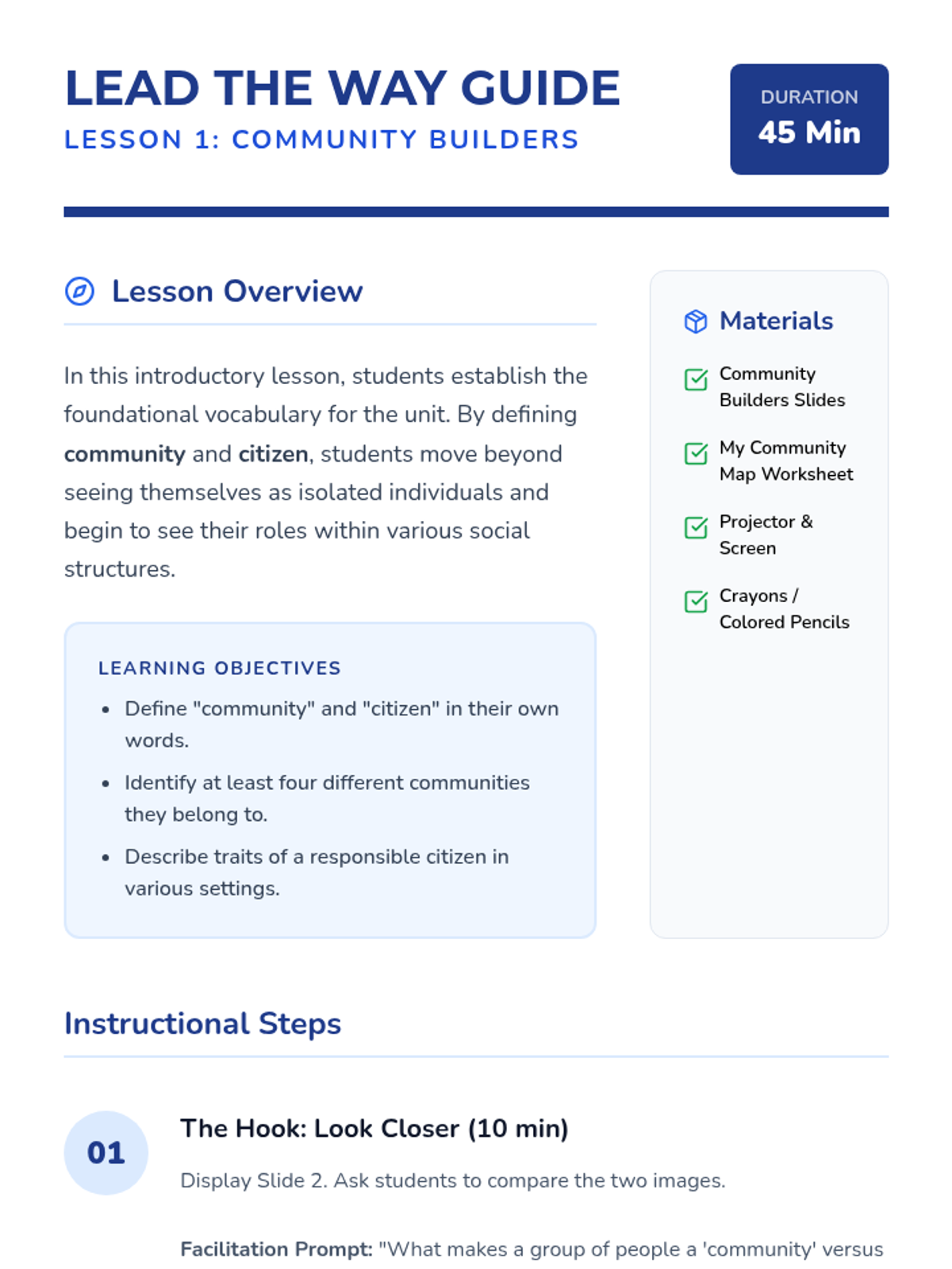A 5-lesson unit for 3rd graders exploring citizenship, rights, responsibilities, and the rule of law through the metaphor of building a community. Students move from defining their place in multiple communities to drafting their own classroom laws and resolving conflicts for the common good.
