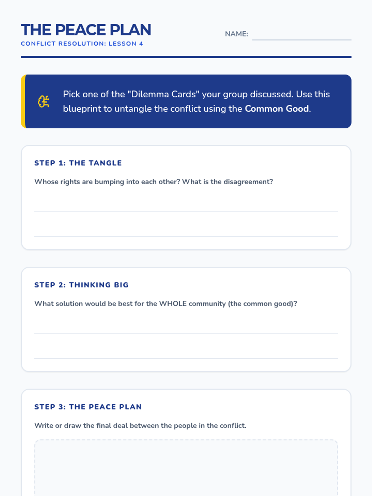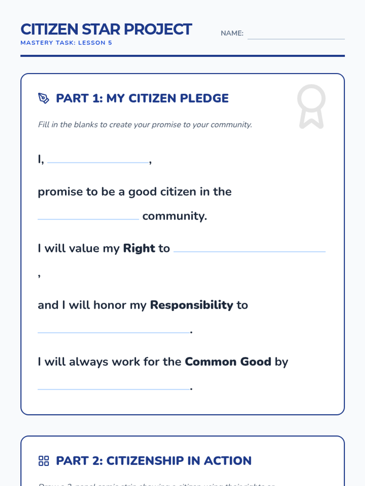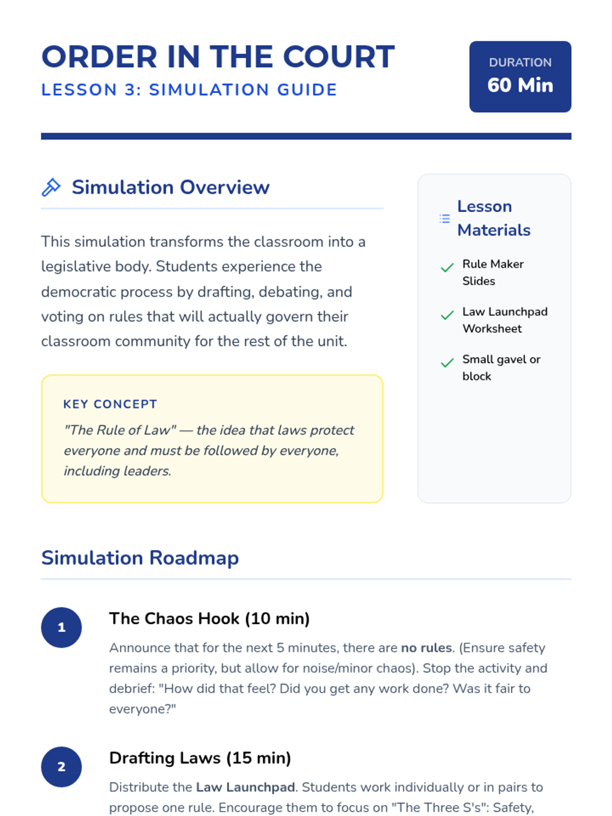 A 5-lesson unit for 3rd graders exploring citizenship, rights, responsibilities, and the rule of law through the metaphor of building a community. Students move from defining their place in multiple communities to drafting their own classroom laws and resolving conflicts for the common good.
