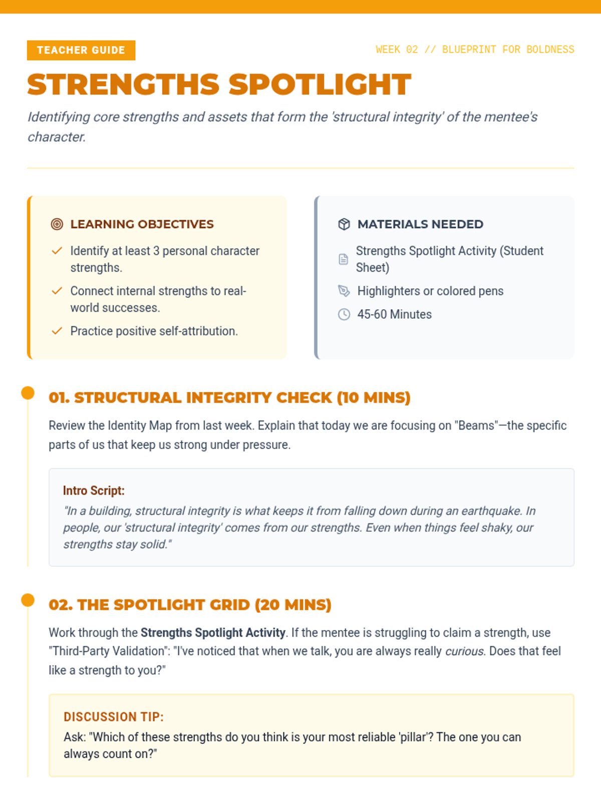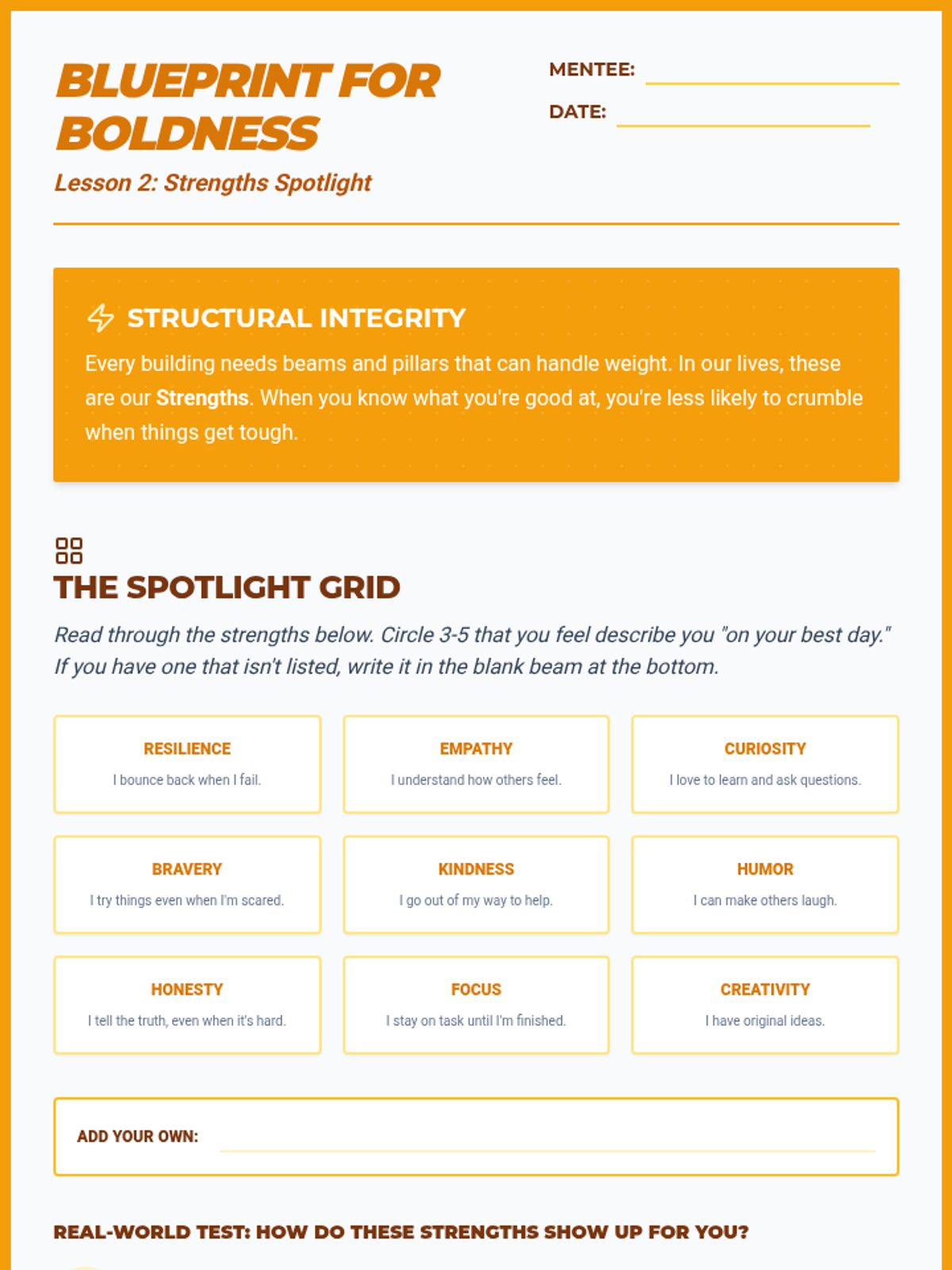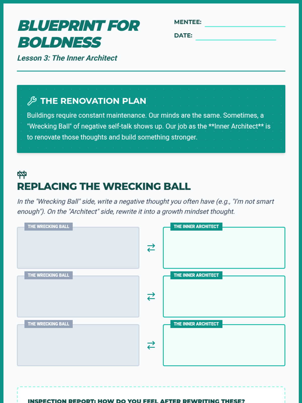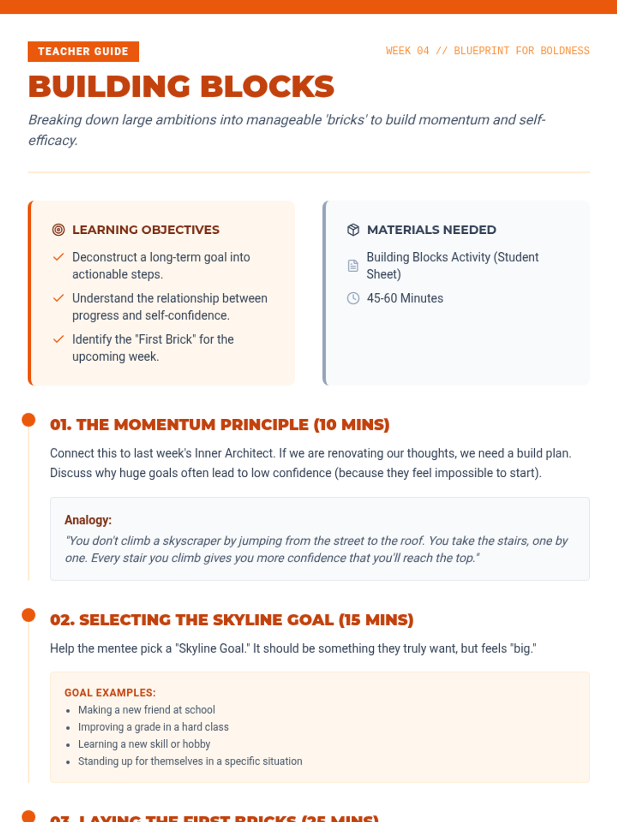 A comprehensive 10-week mentorship journey designed to build confidence, resilience, and problem-solving skills through collaborative activities and deep discussion.