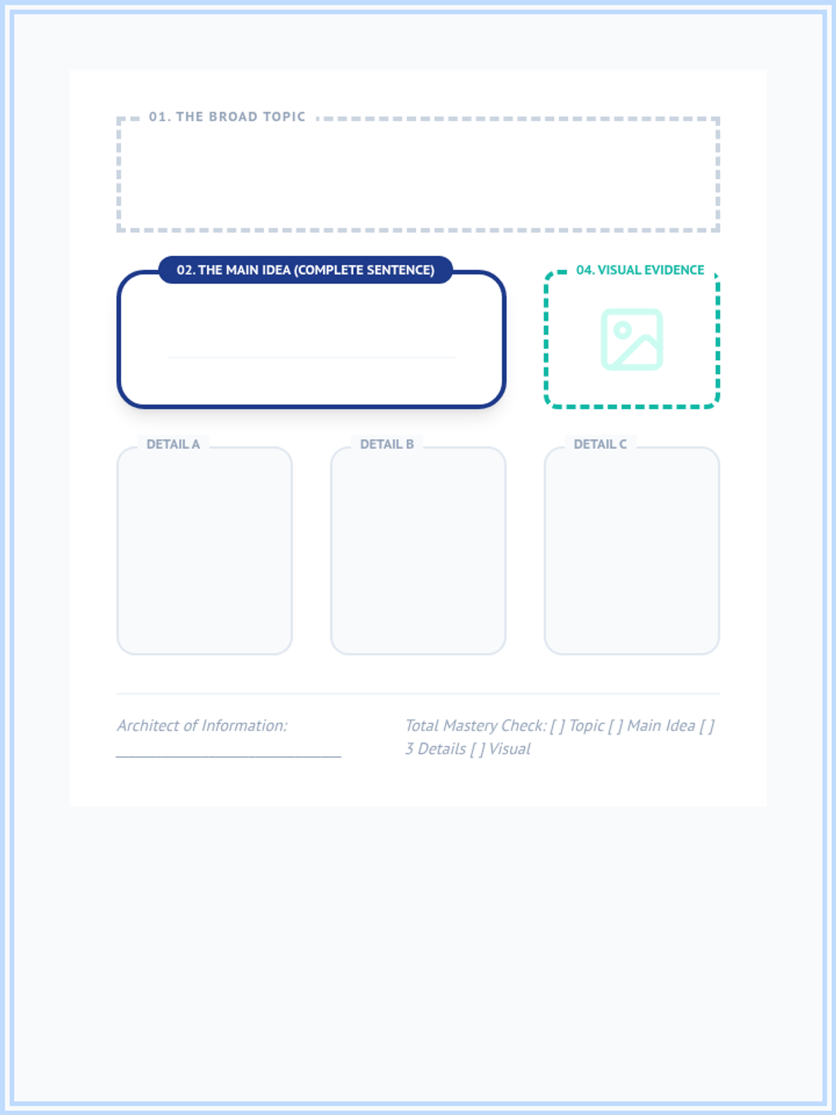 This sequence focuses on the hierarchy of information within non-fiction texts for intermediate ELLs. Students learn to distinguish between topics, main ideas, and supporting details using visual analogies and structured frameworks.