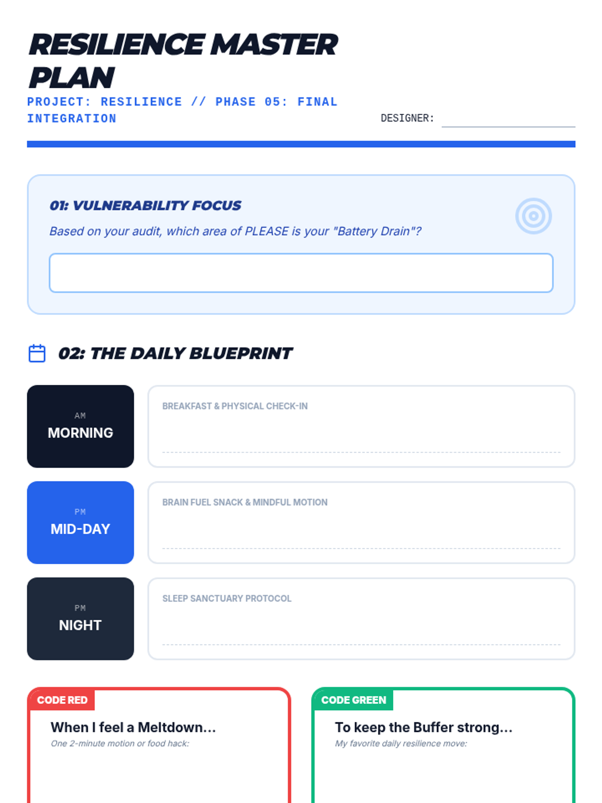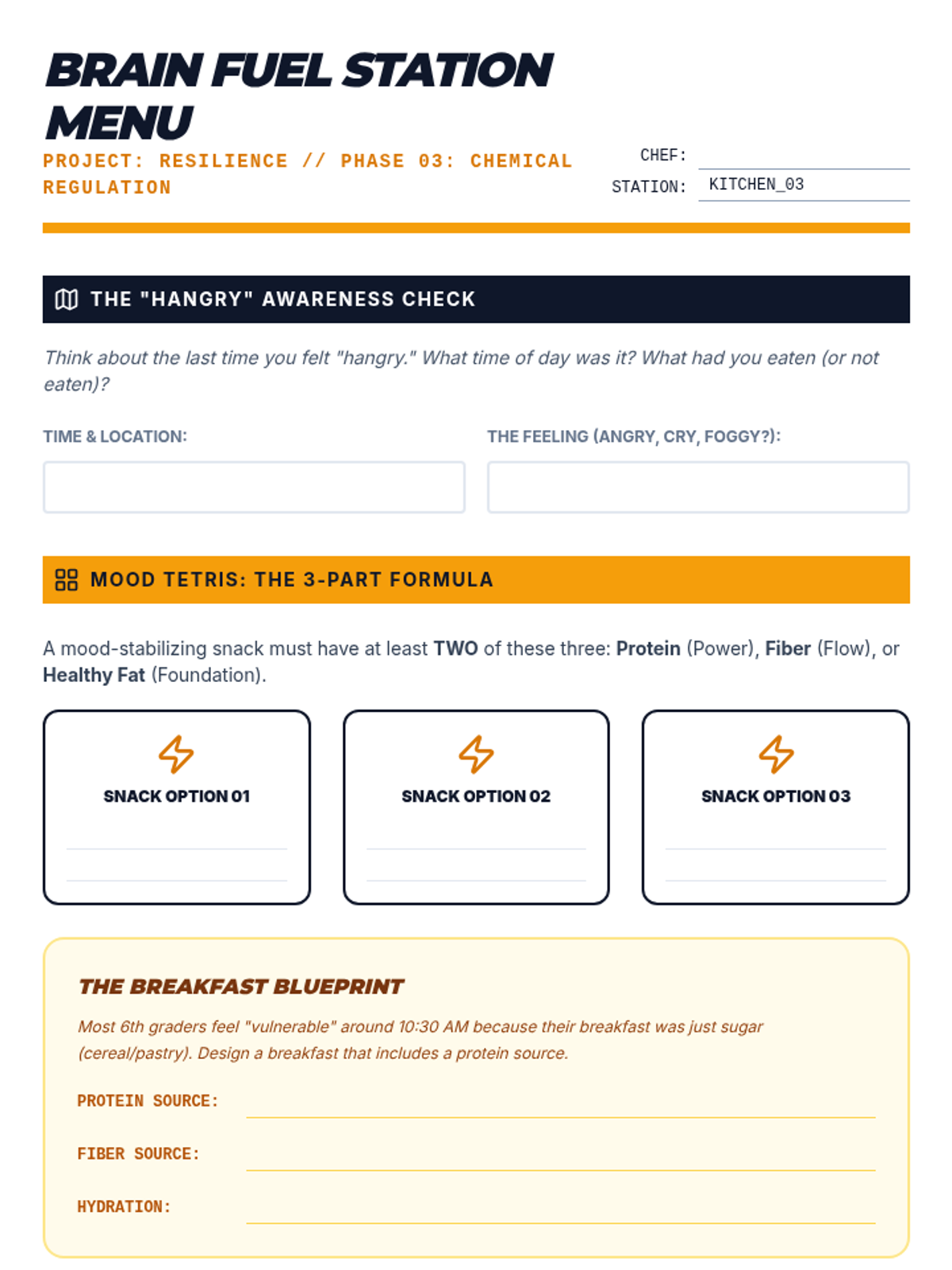 A project-based sequence where 6th-grade students treat their daily routines as a design challenge to reduce emotional vulnerability. Using the DBT PLEASE skills, students audit their habits and design a personalized 'Resilience Routine' for physical and emotional wellness.