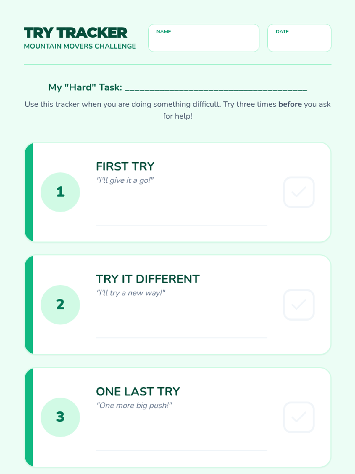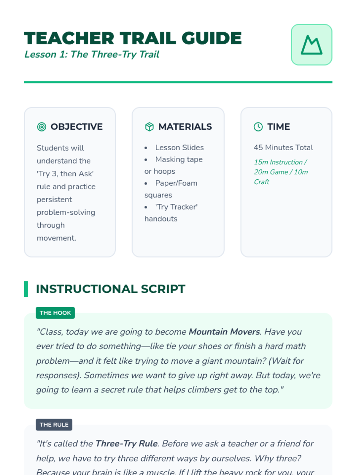A two-day social-emotional learning unit designed to teach students persistence strategies: asking for help after three attempts and breaking large tasks into manageable steps.