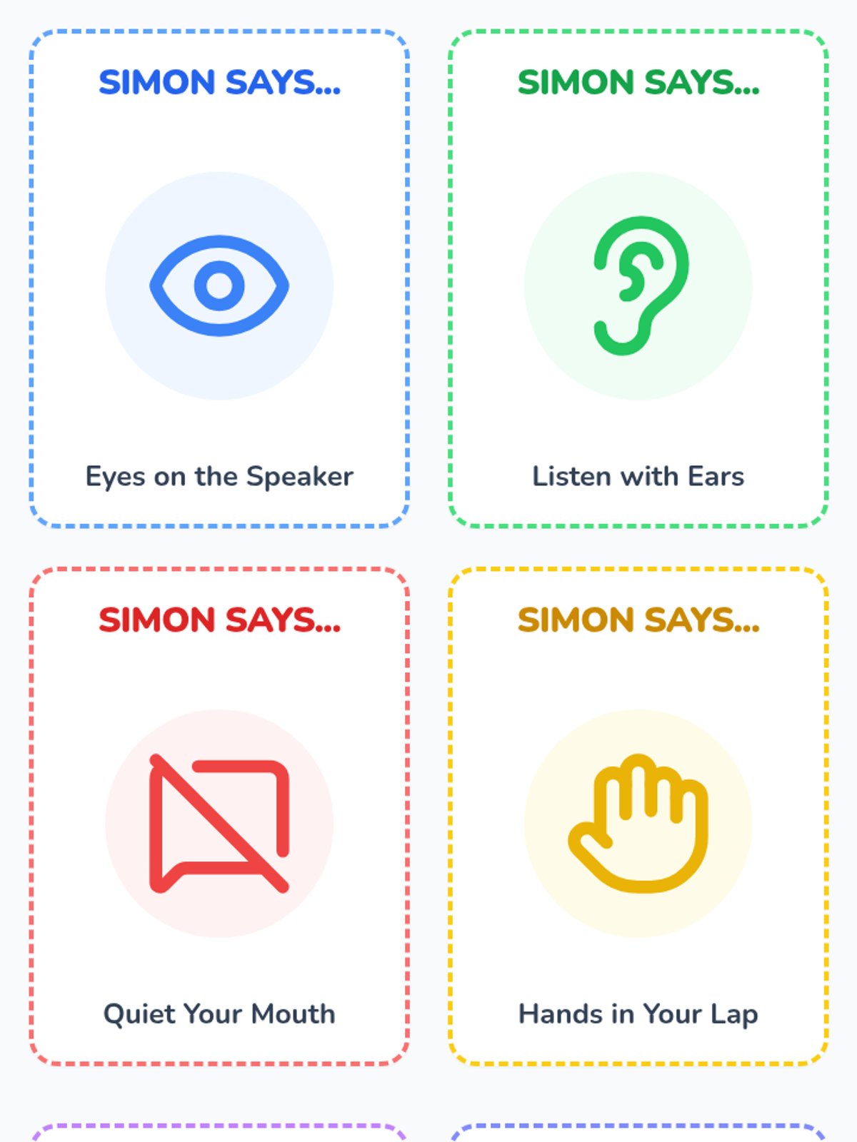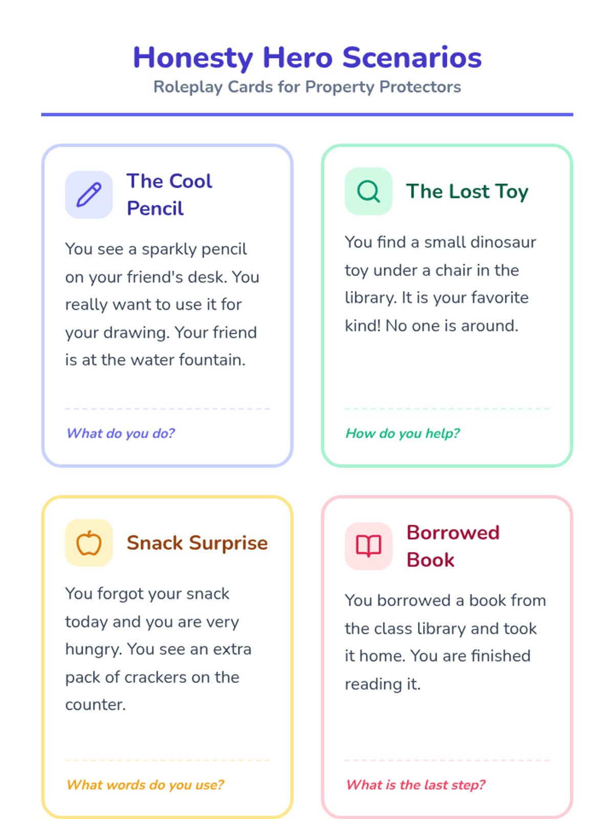 A series of social-emotional learning interventions focused on personal boundaries, self-regulation, and respectful communication in school settings.