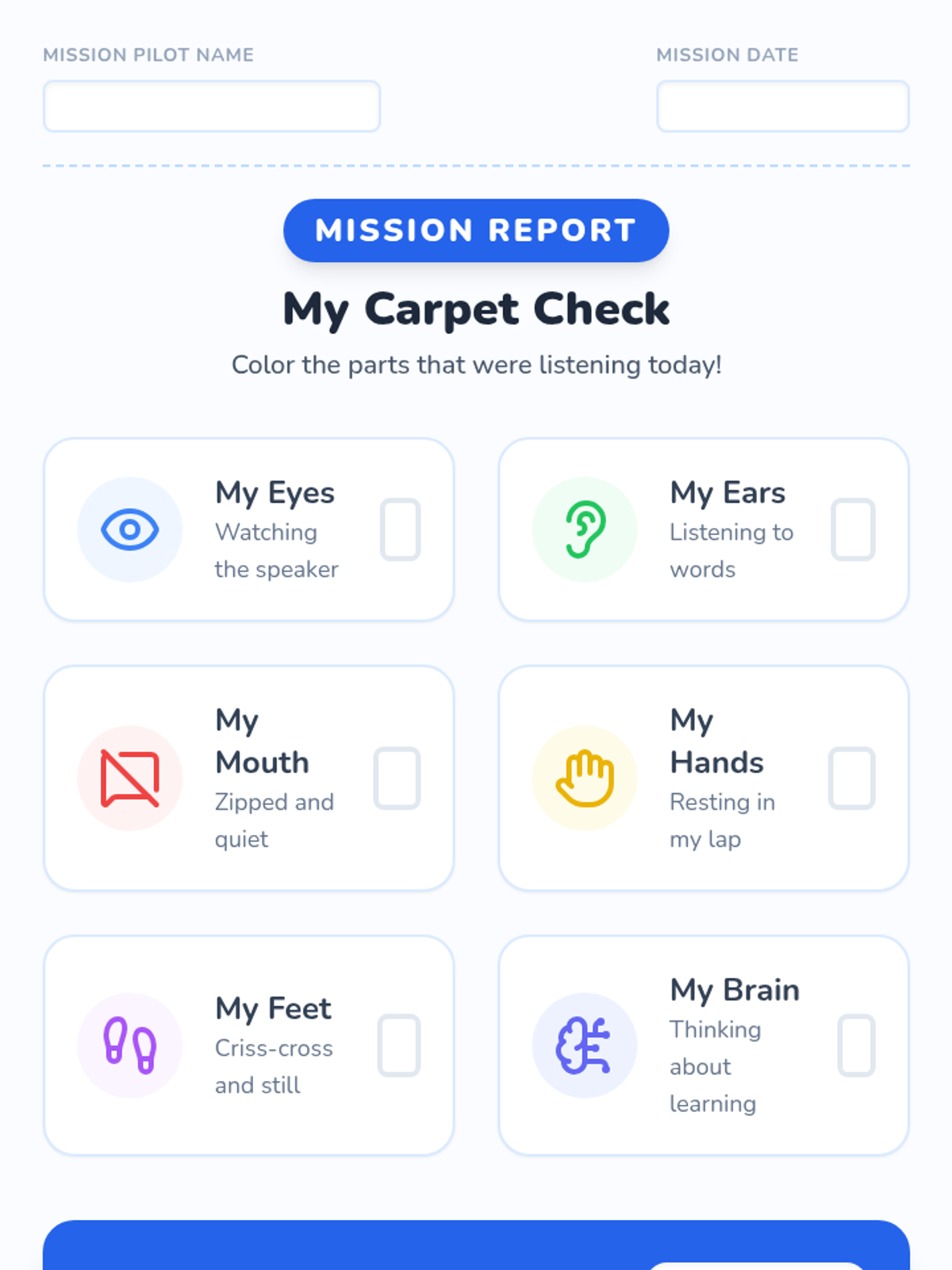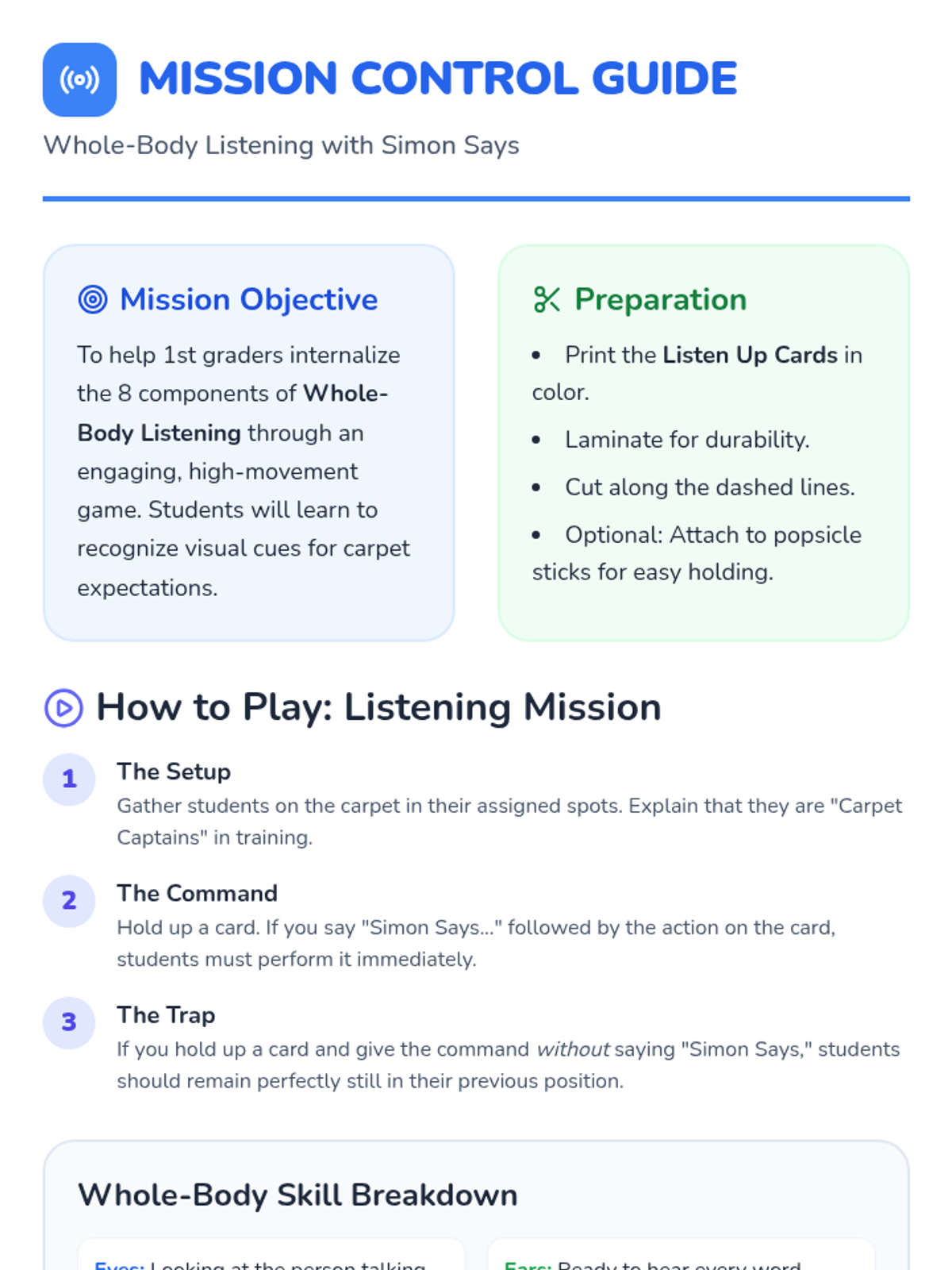 A comprehensive unit for 1st graders to master listening skills across all school environments, using a 'Mission Control' space theme.