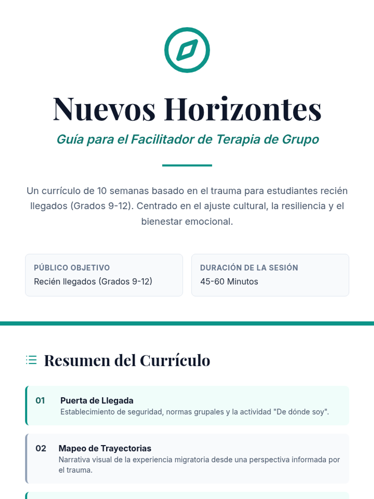 A comprehensive 10-week group counseling curriculum designed for newcomer high school students to build resilience, coping skills, and cultural adjustment.