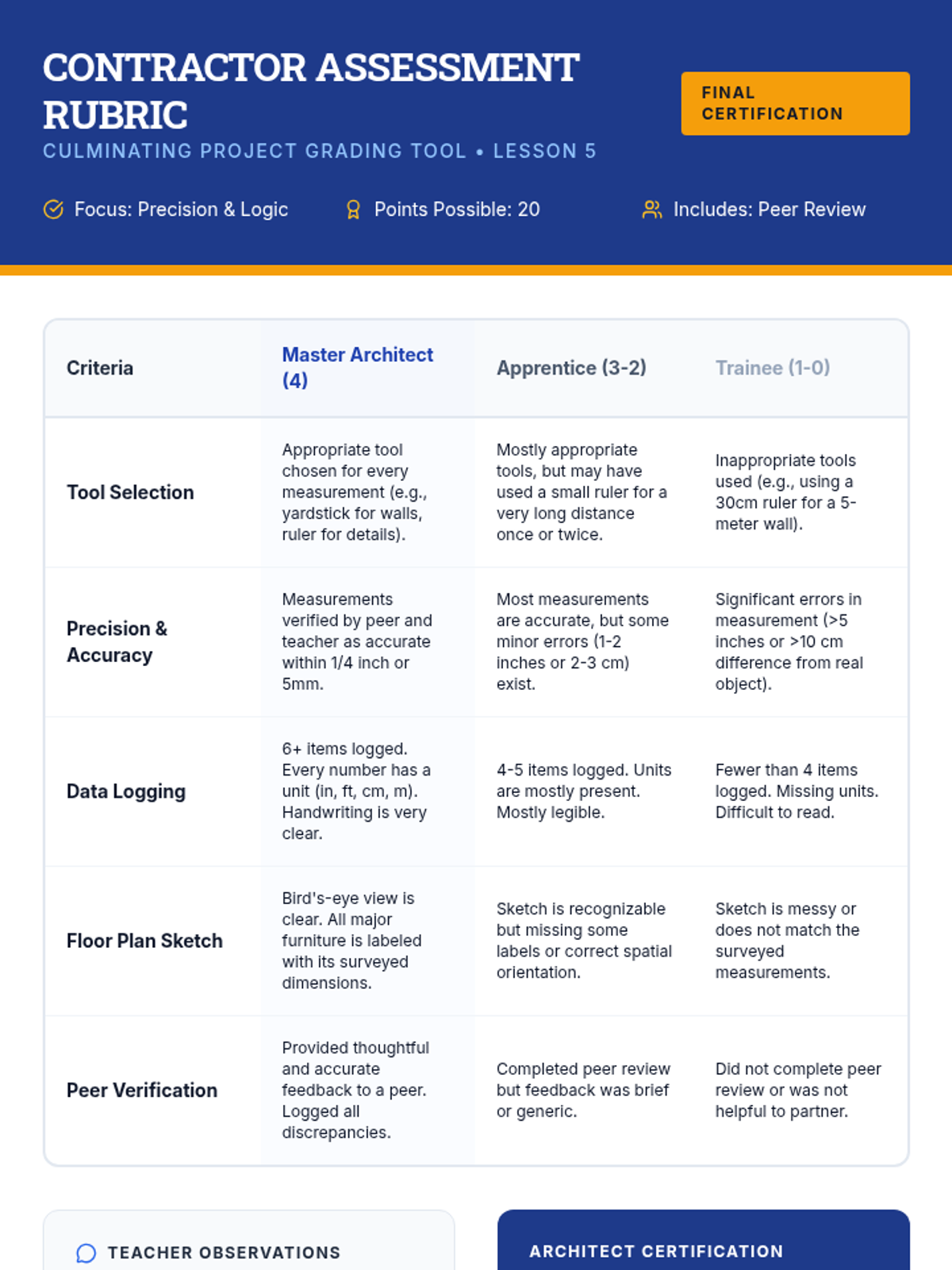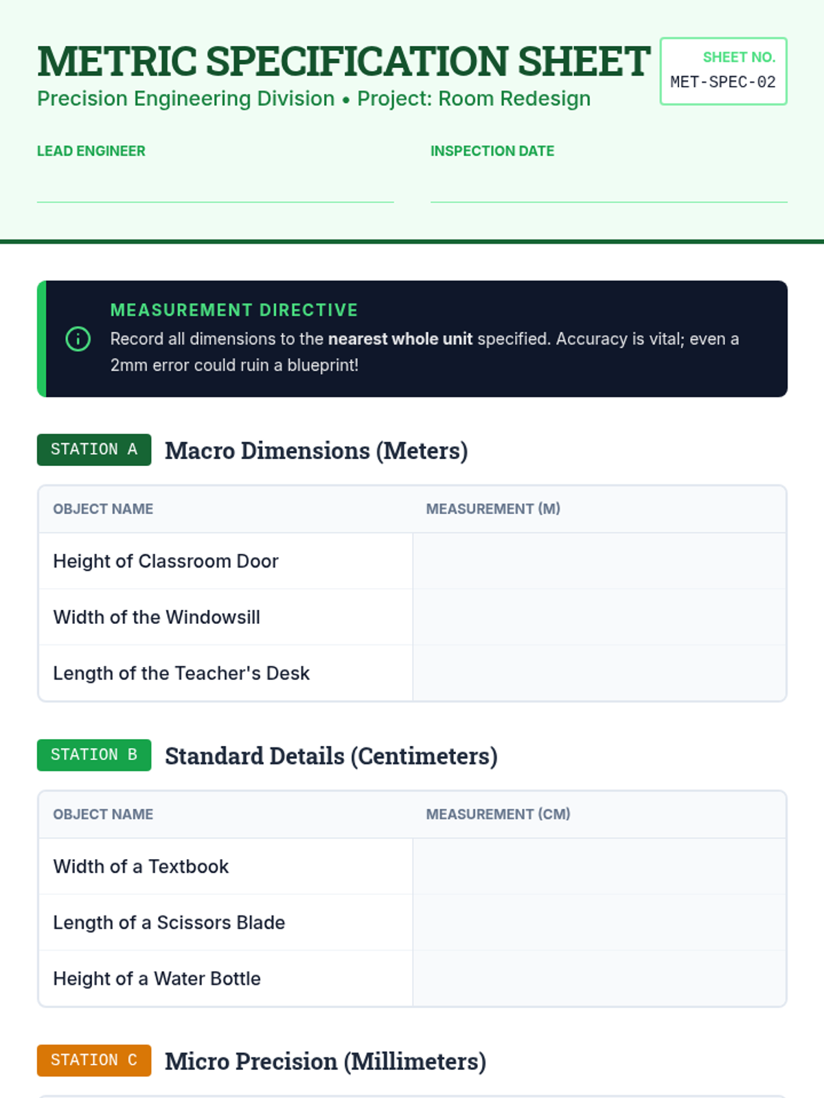 Students become junior architects, mastering estimation and precise measurement using metric and customary units to design classroom floor plans.