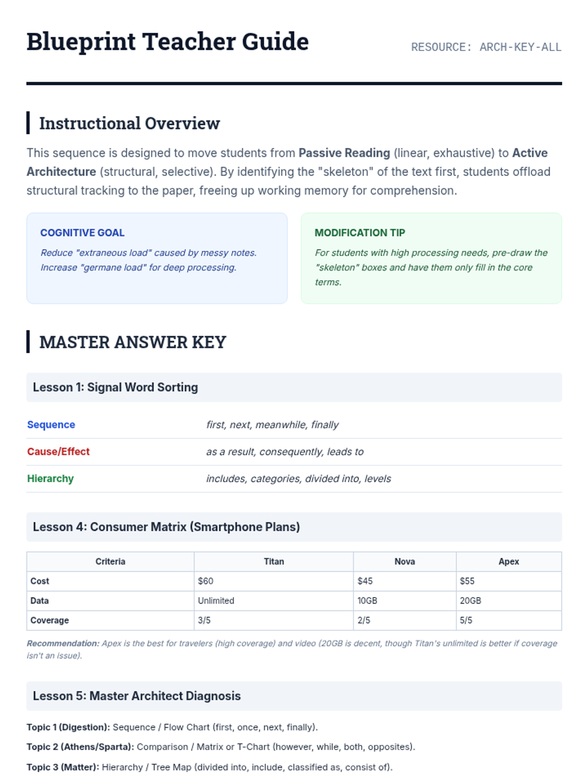 A sequence focused on reducing cognitive load for 10th-grade students by teaching them to align graphic organizers with informational text structures. Students learn to recognize structures, filter noise, and select visual scaffolds that support working memory during complex reading tasks.
