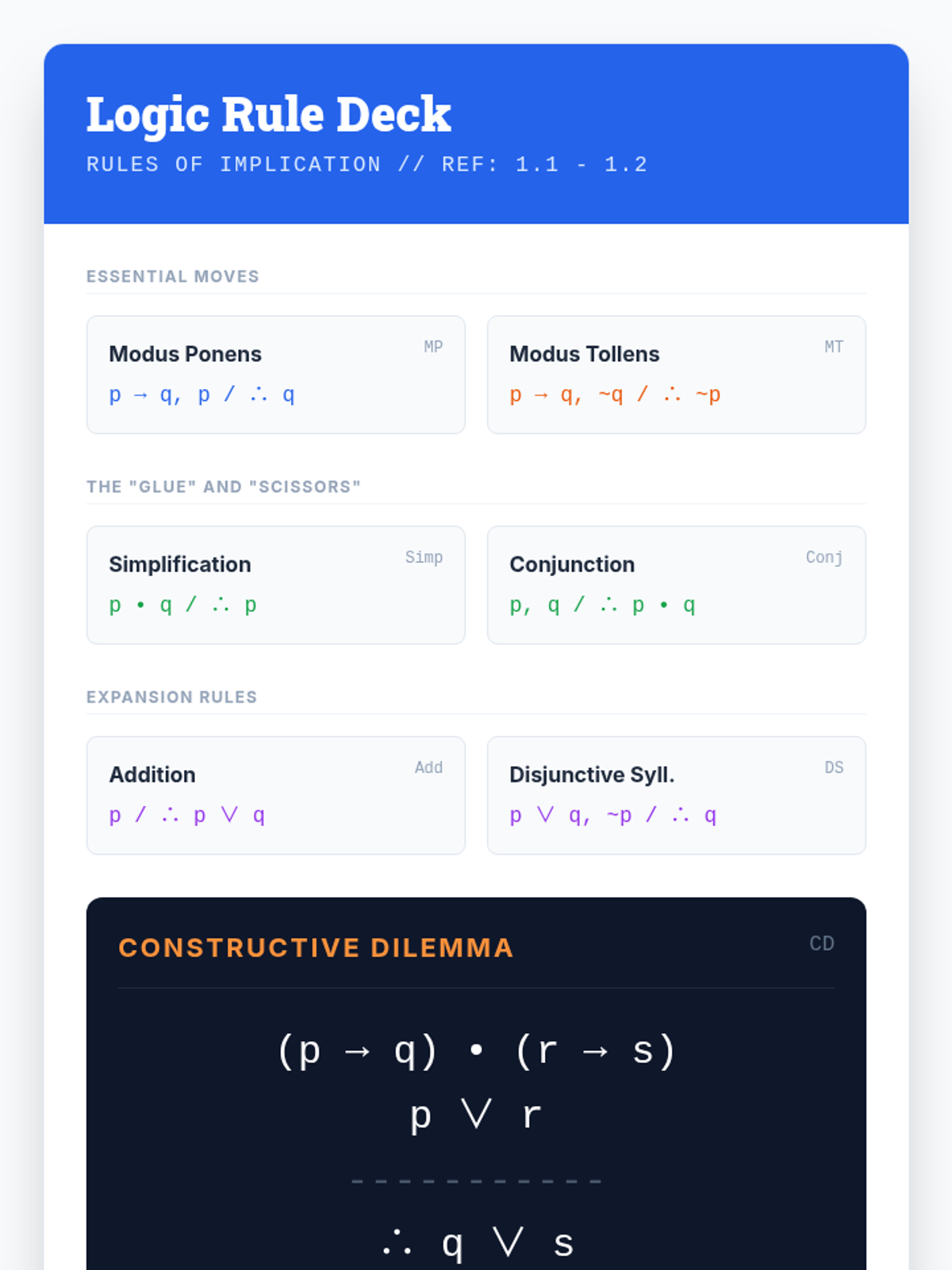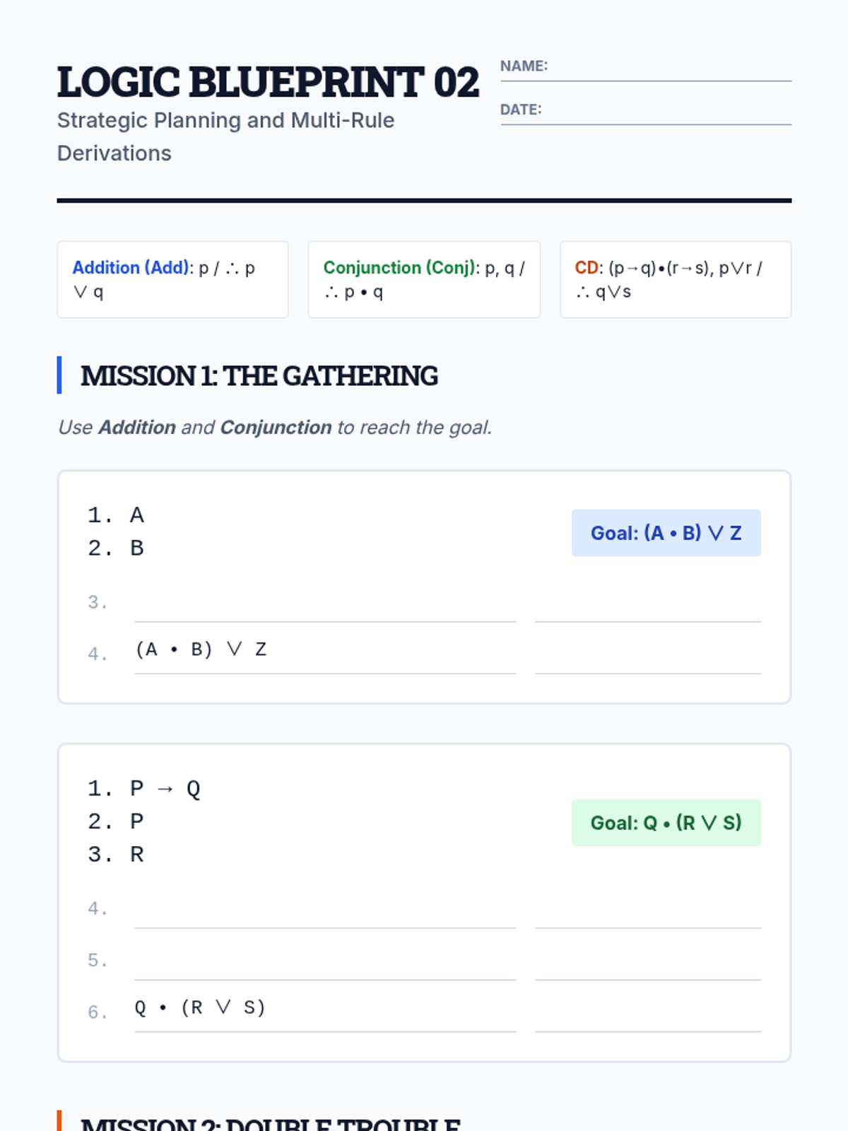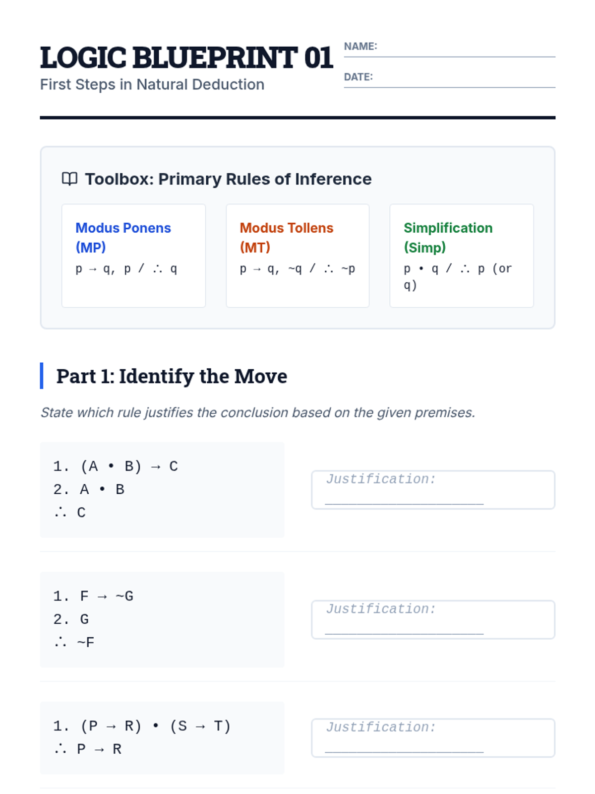 A rigorous exploration of formal logic and natural deduction for 12th-grade students. This sequence guides learners through the construction of formal proofs, using rules of inference and replacement to derive conclusions with mathematical certainty.