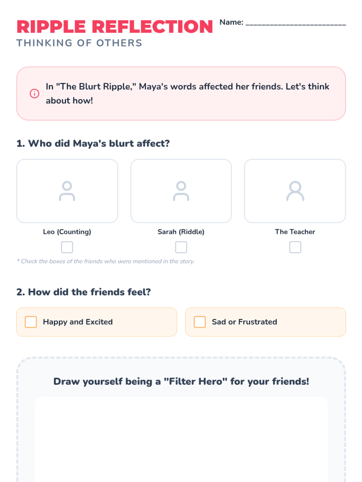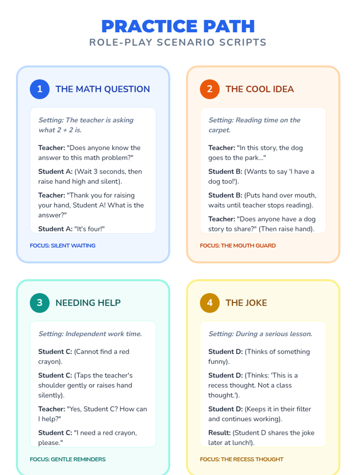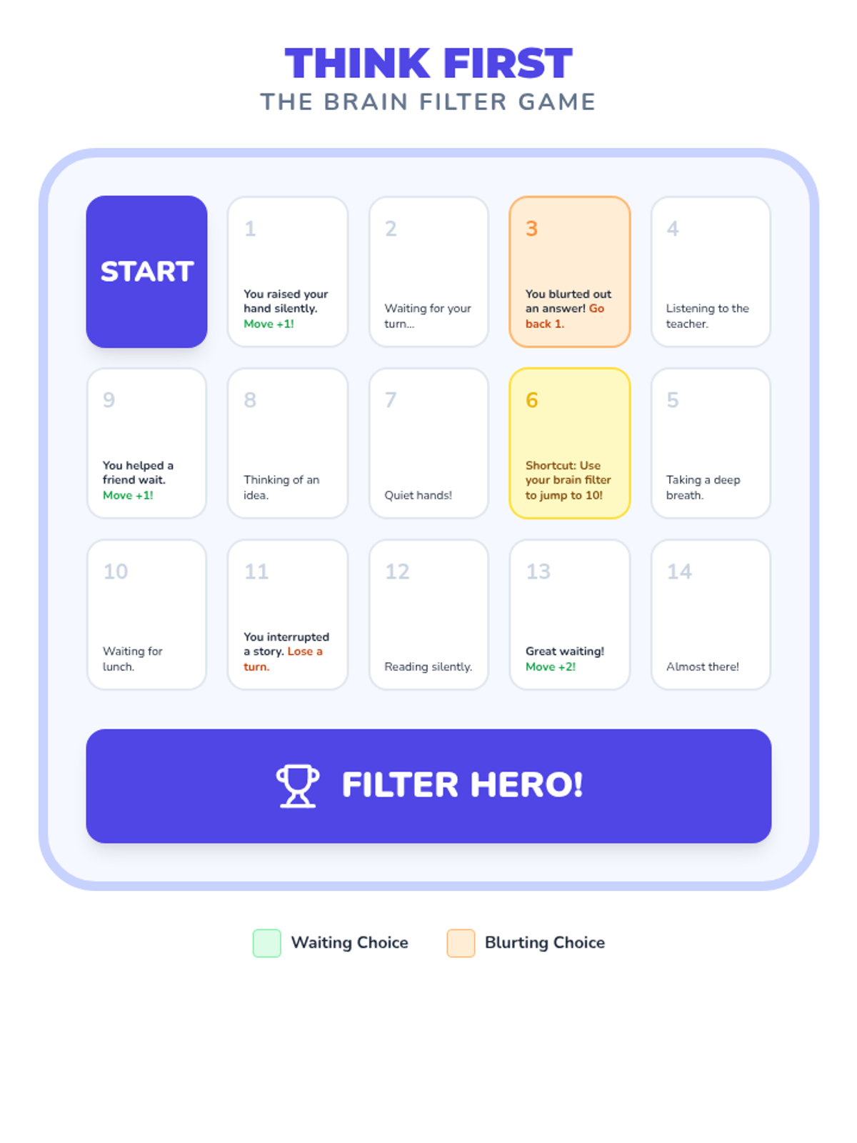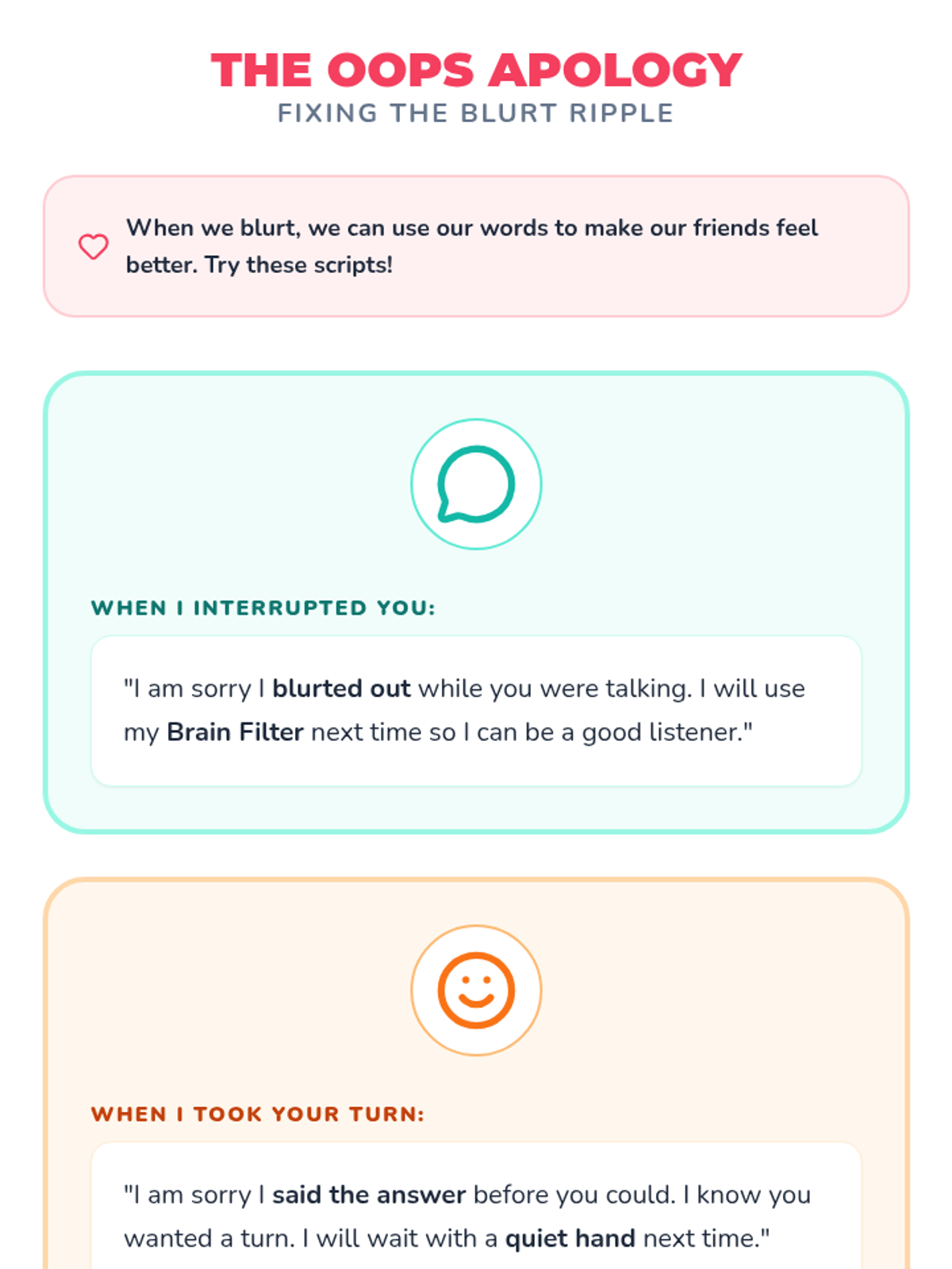 A comprehensive unit for 1st grade students to understand and manage blurting in the classroom through social stories, sorting activities, and interactive games.