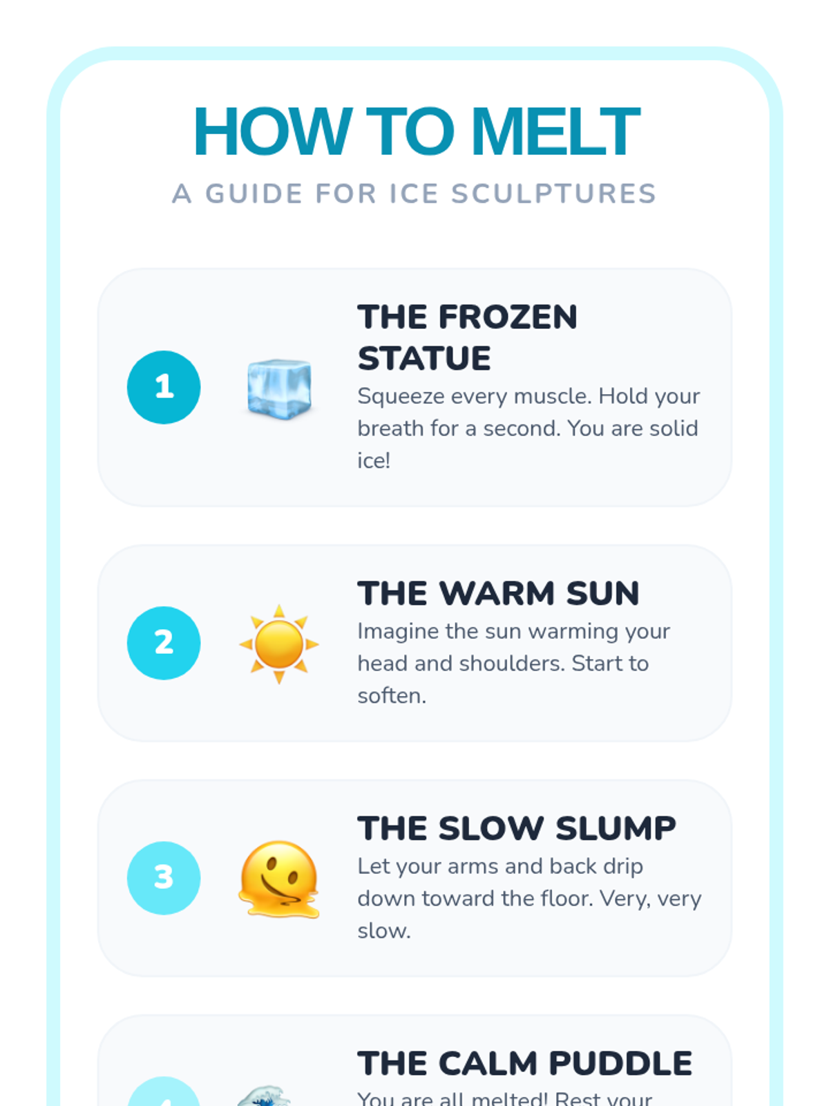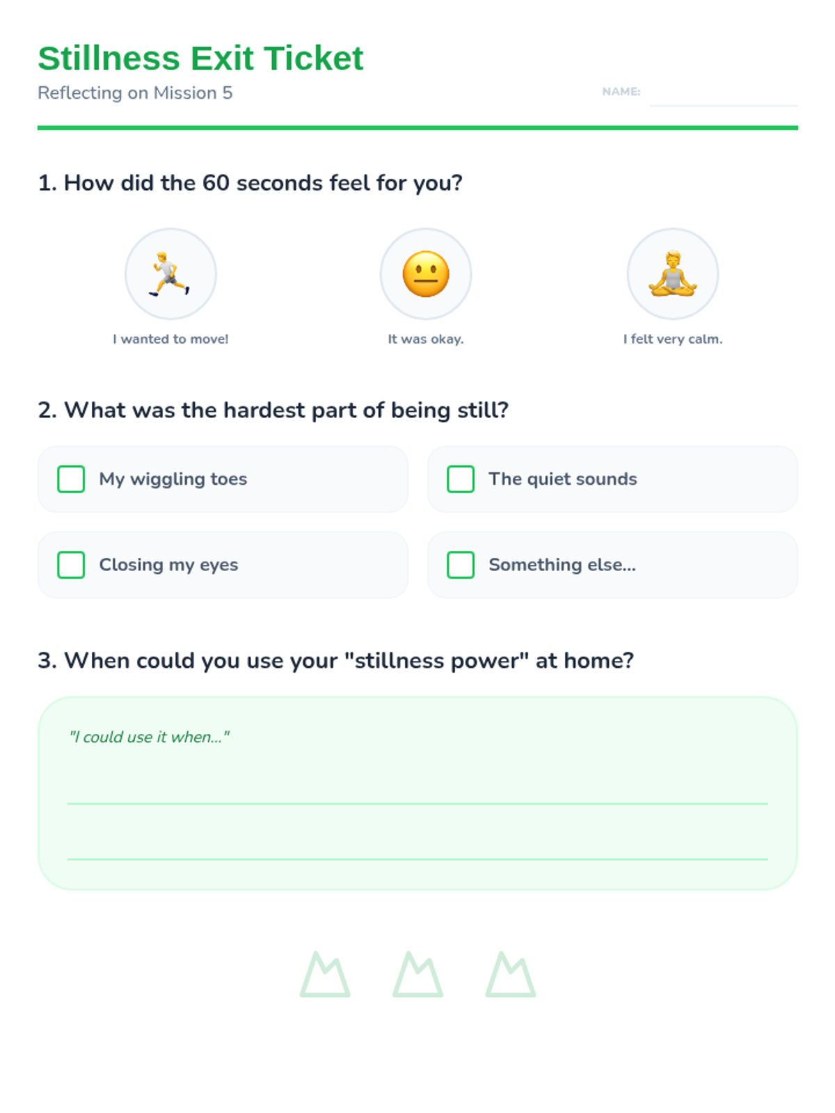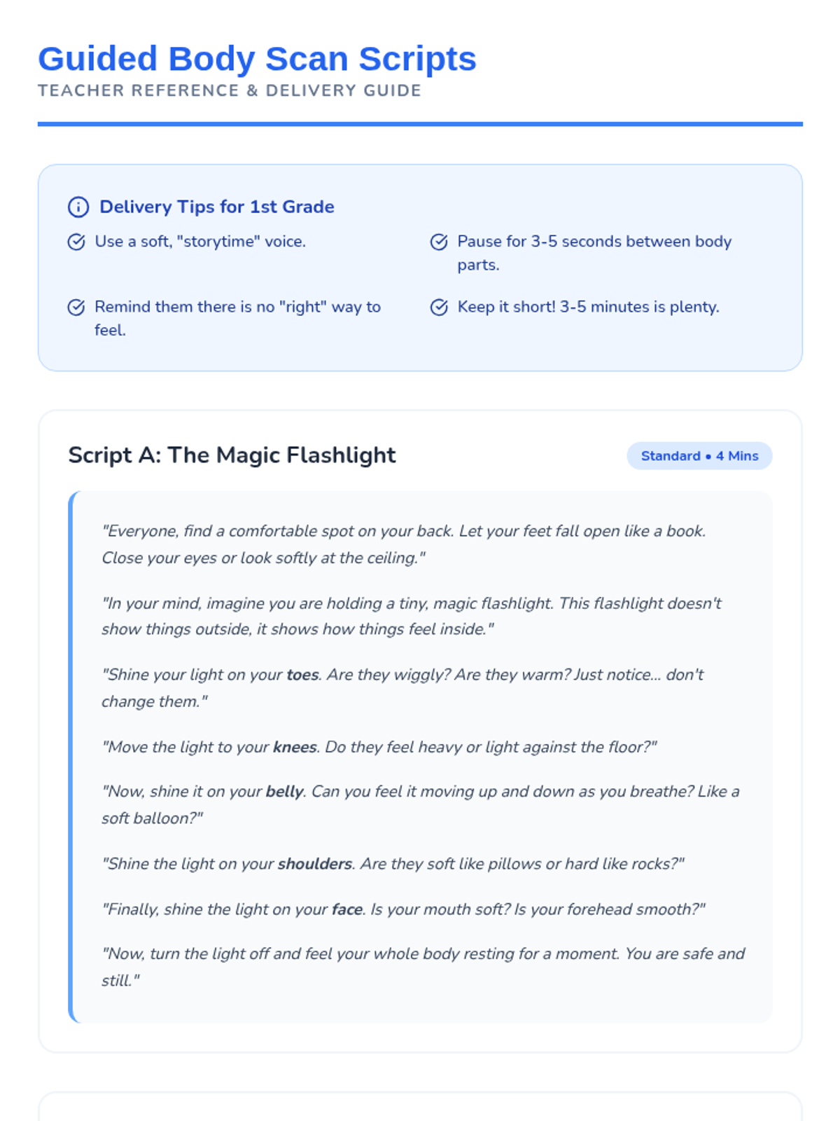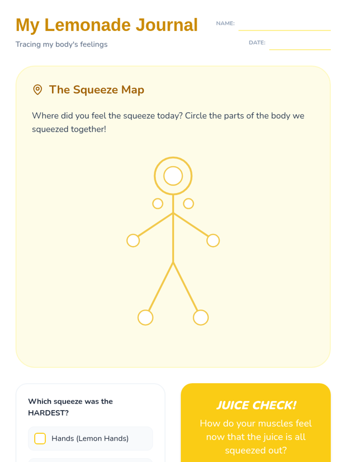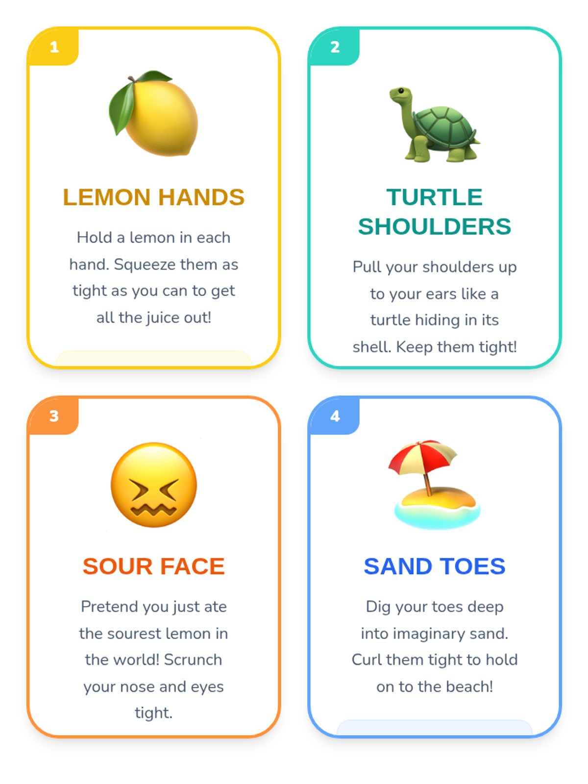 This 1st Grade sequence teaches somatic awareness and muscle relaxation. Students learn to distinguish between tension and relaxation through playful imagery like spaghetti, lemons, and melting ice, culminating in a stillness challenge to build stamina for meditation.