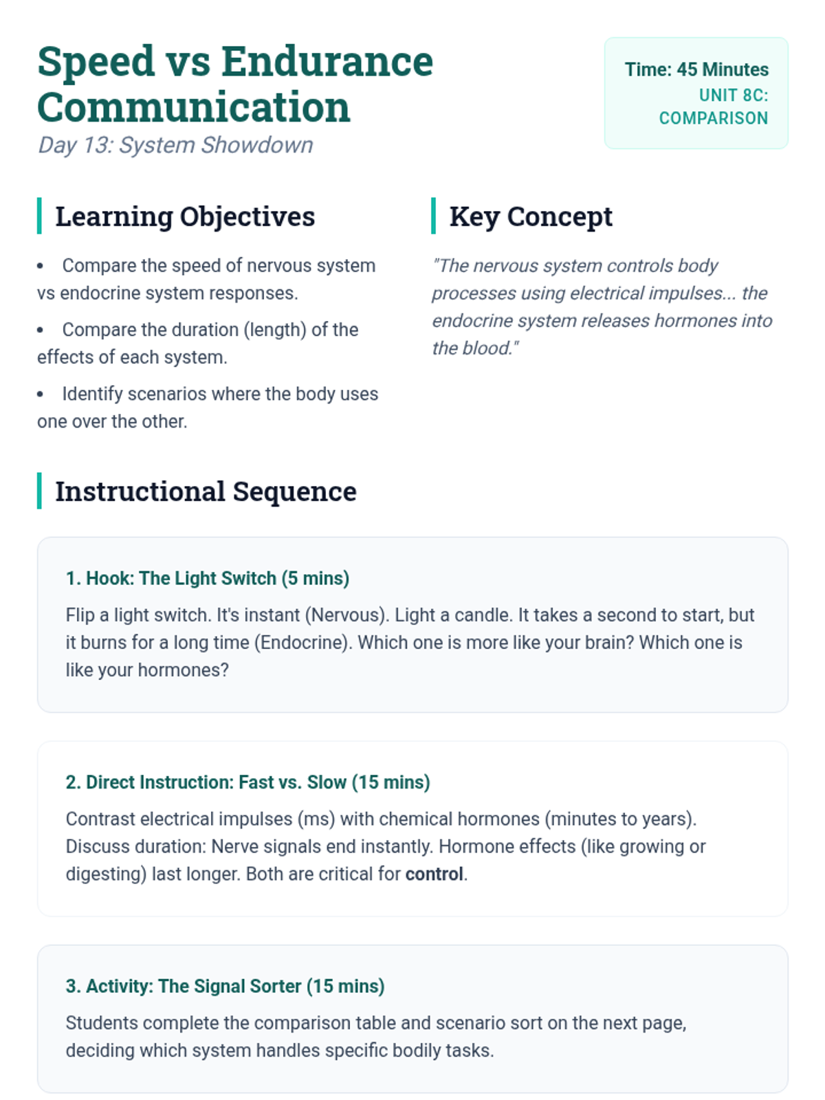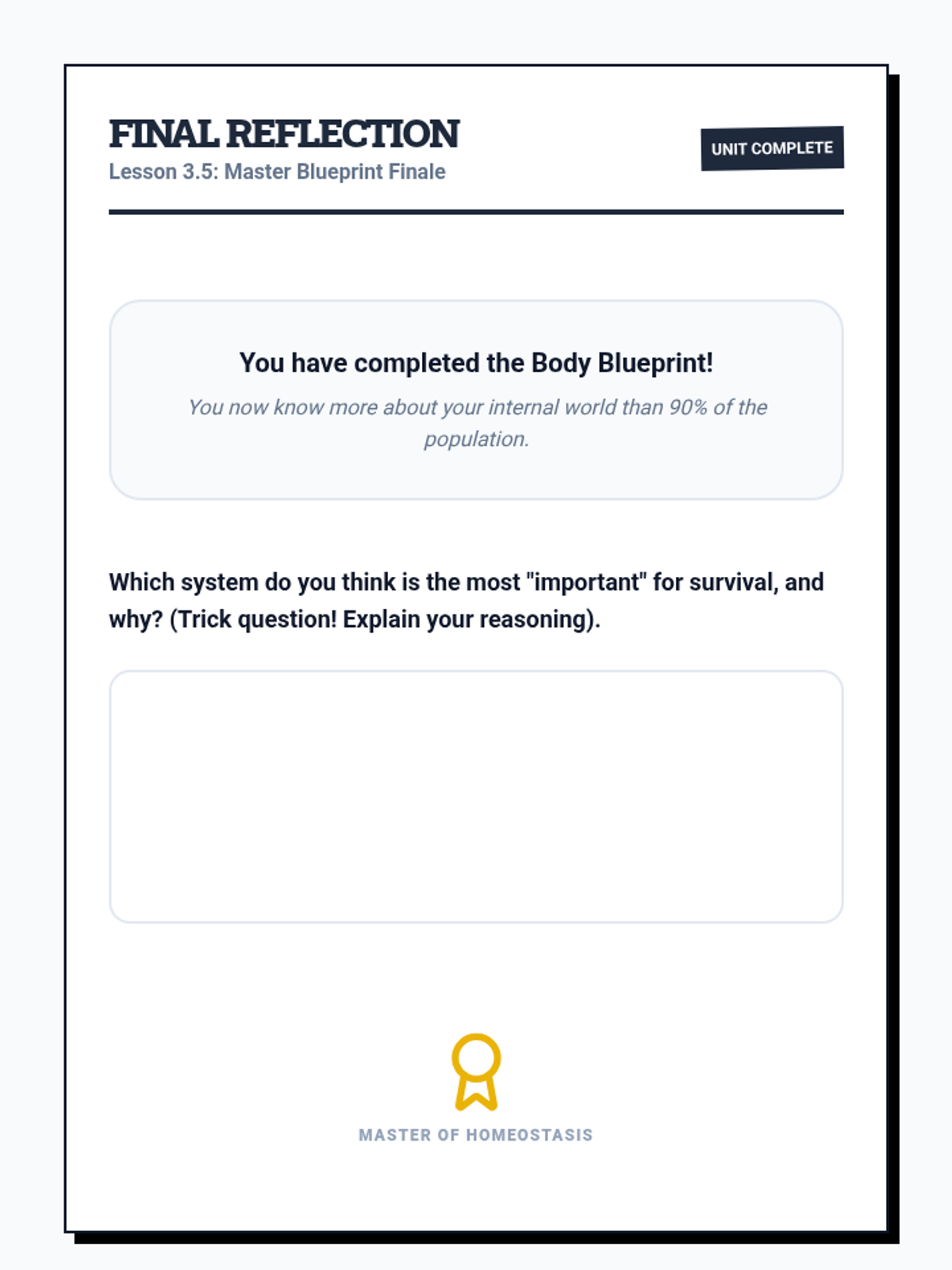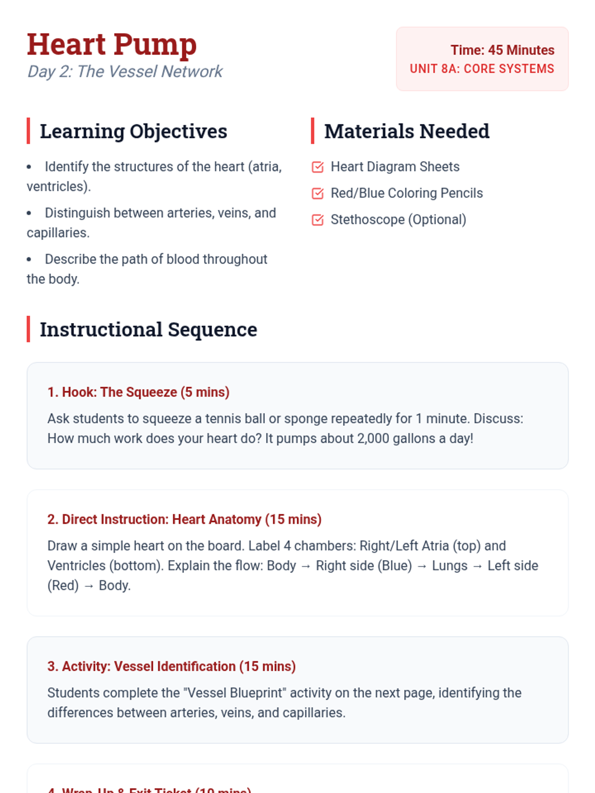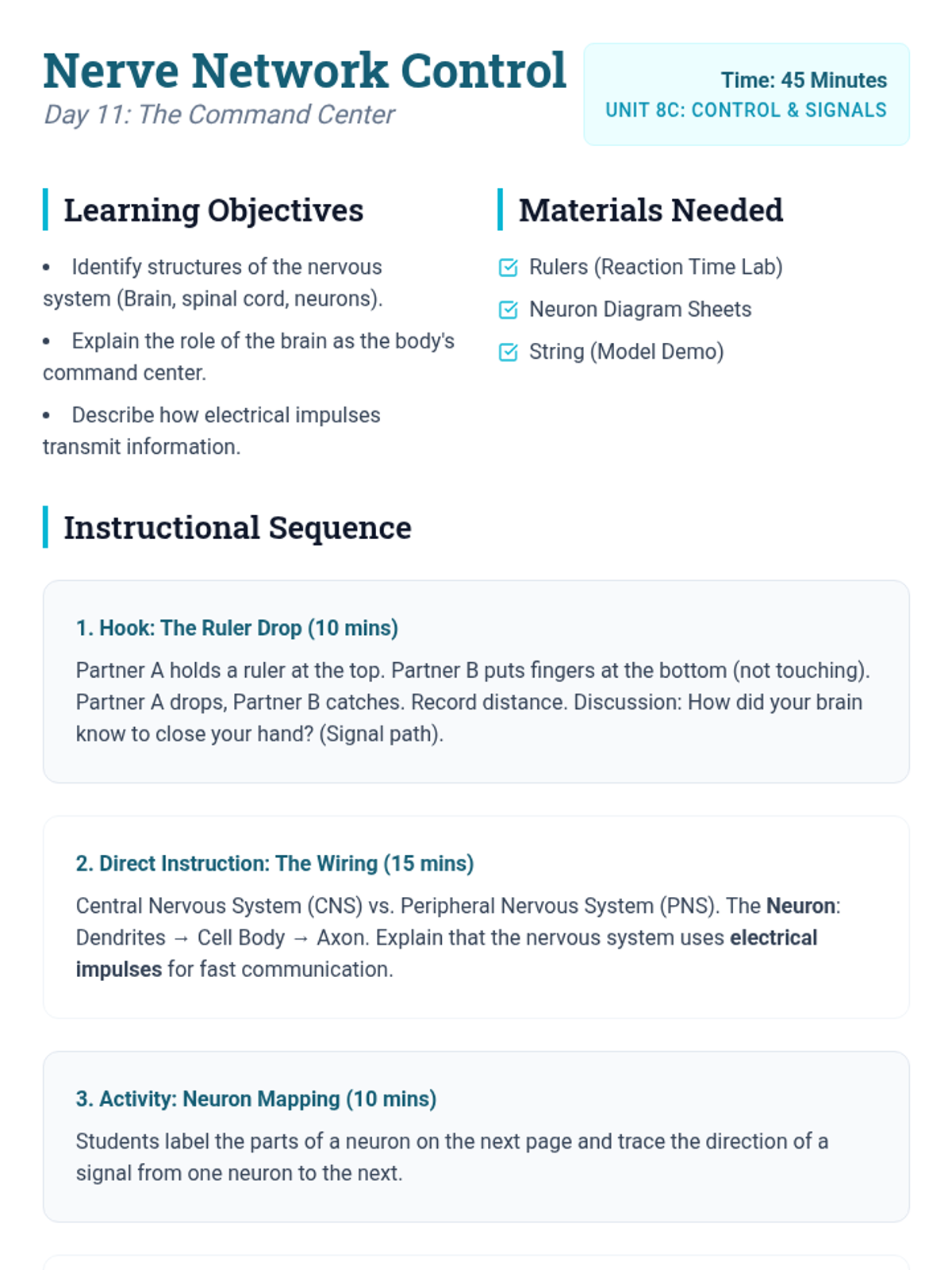 A comprehensive 15-day curriculum unit for 7th-grade science exploring the circulatory, respiratory, digestive, urinary, nervous, and endocrine systems, with a focus on how they interact to support life and maintain homeostasis.