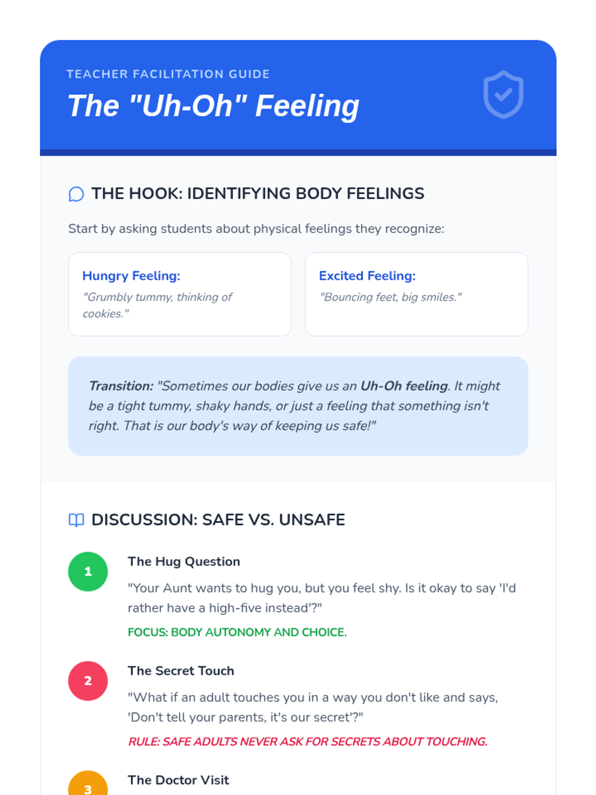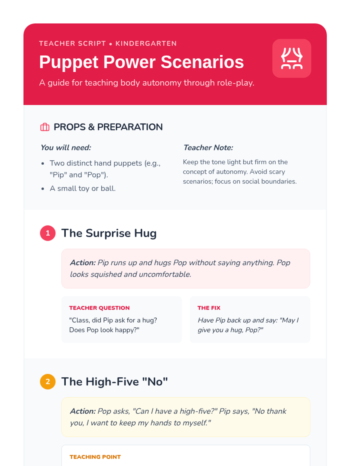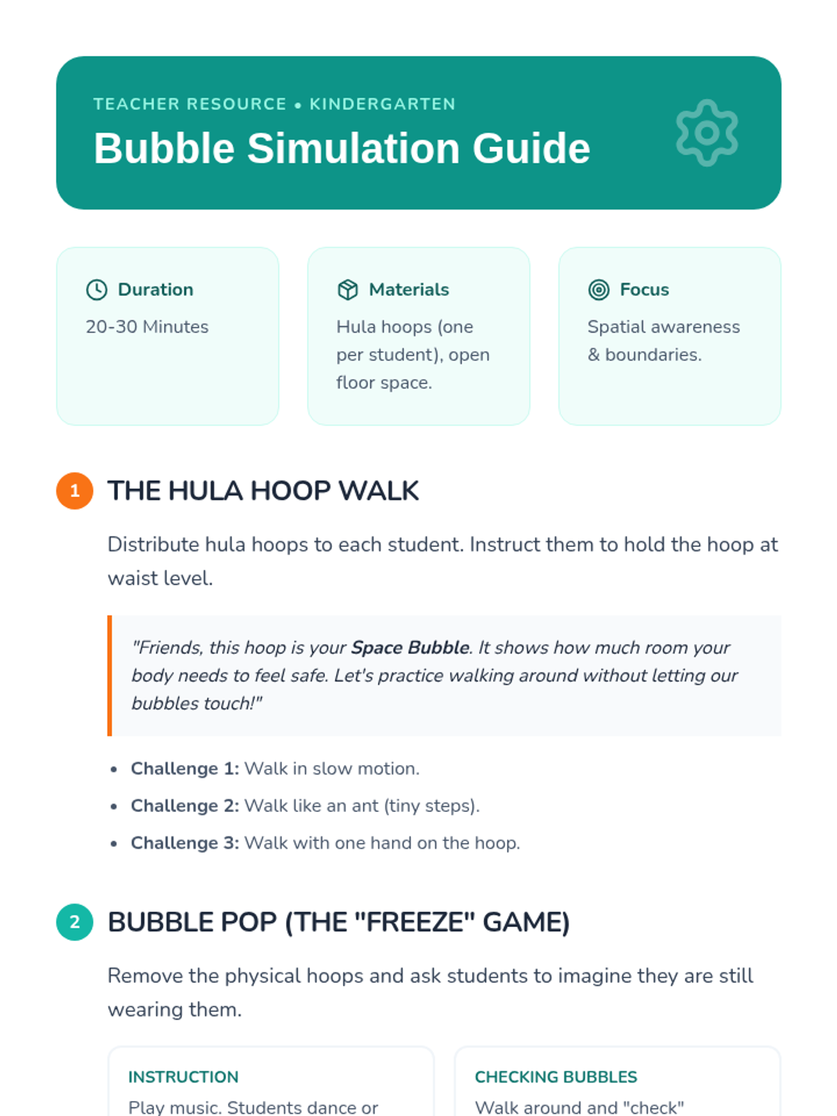 A Kindergarten sequence focused on physical boundaries, body autonomy, recognizing physical sensations of activity, and practicing relaxation techniques. Students learn to define personal space, communicate boundaries, monitor their heart rate, identify safe adults, and understand the importance of rest.