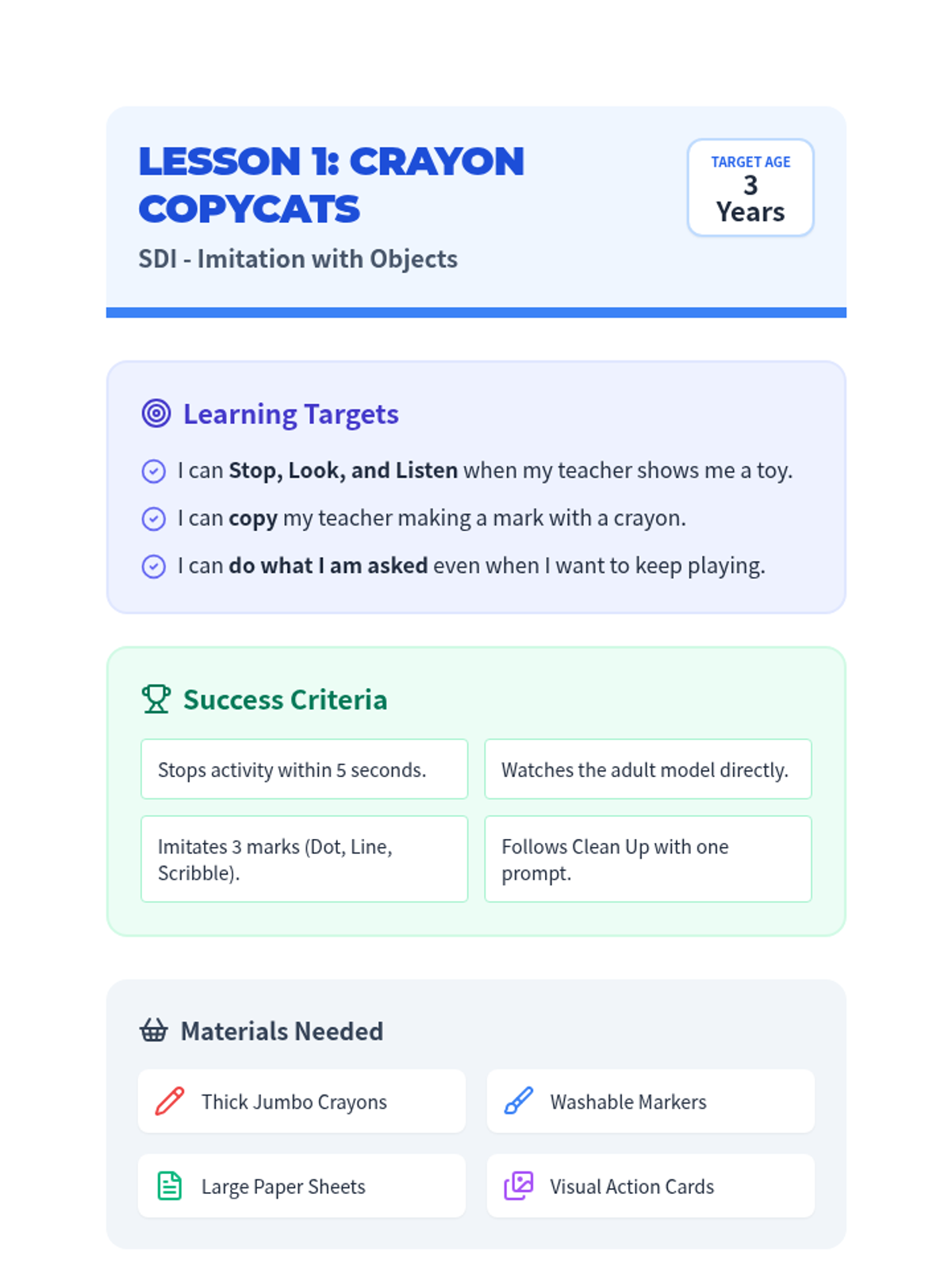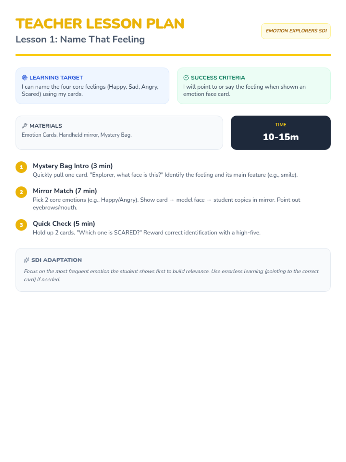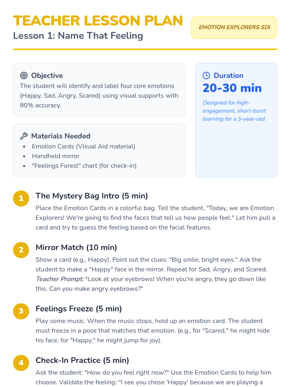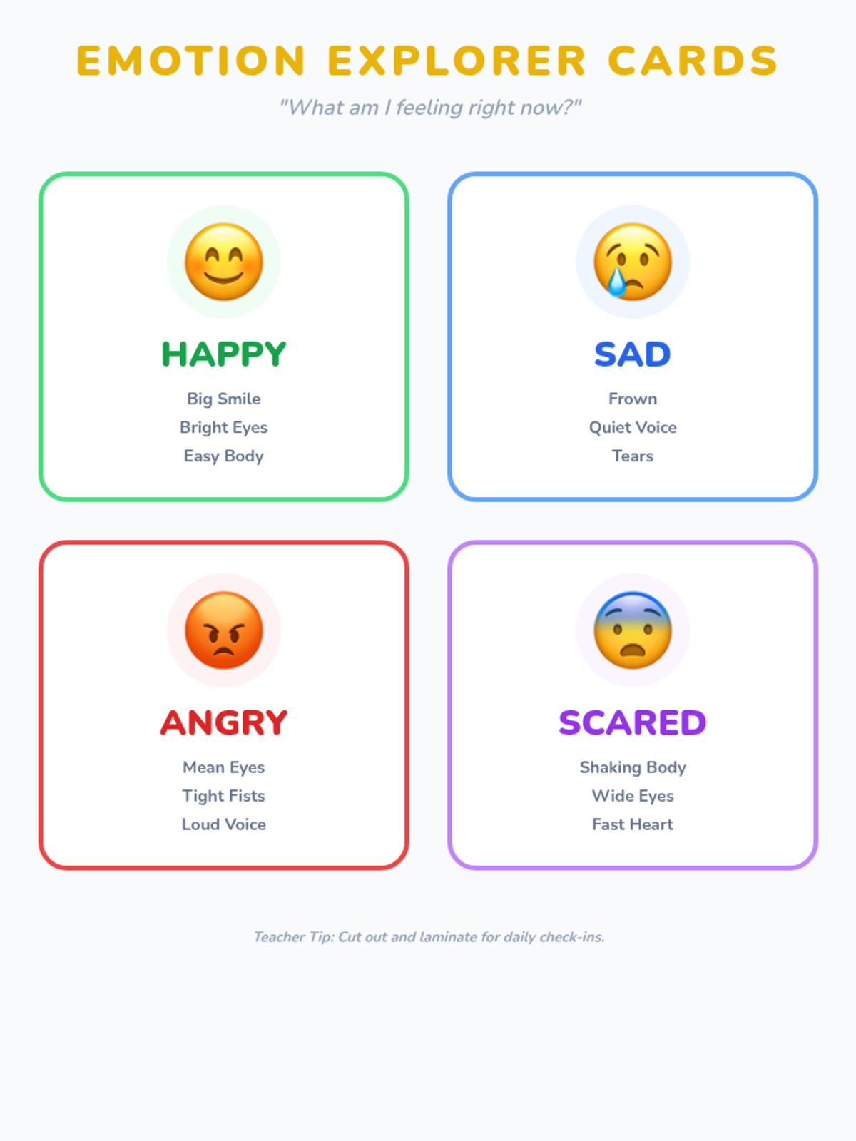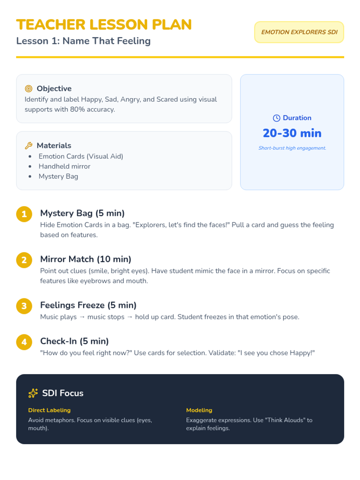 A hands-on sequence for Pre-K students to explore sensory tools (proprioceptive, tactile, auditory, and visual) that help regulate their nervous systems. Students identify personal favorites to build a custom 'Recovery Kit' for moments of dysregulation.
