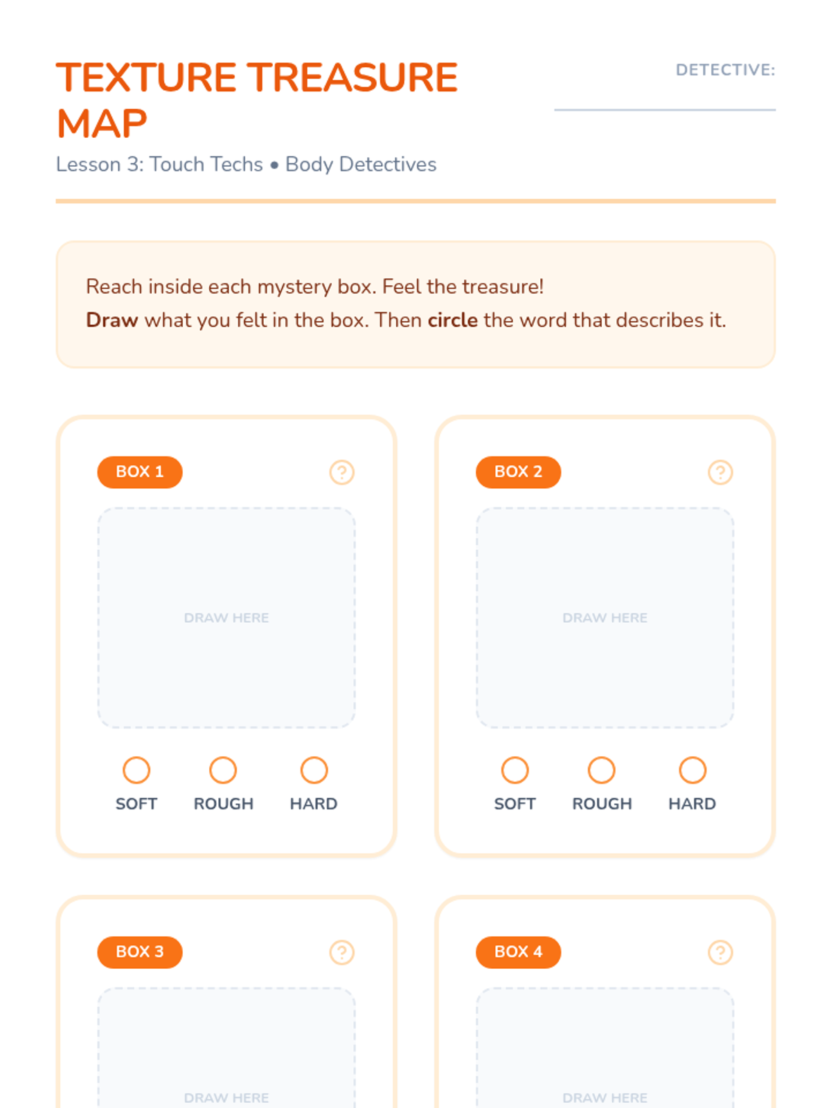 This sequence introduces Kindergarten students to the physical components of computers and tablets through tactile exploration and observation. Students learn to identify hardware parts and practice responsible equipment handling through the 'Tech Detectives' theme.