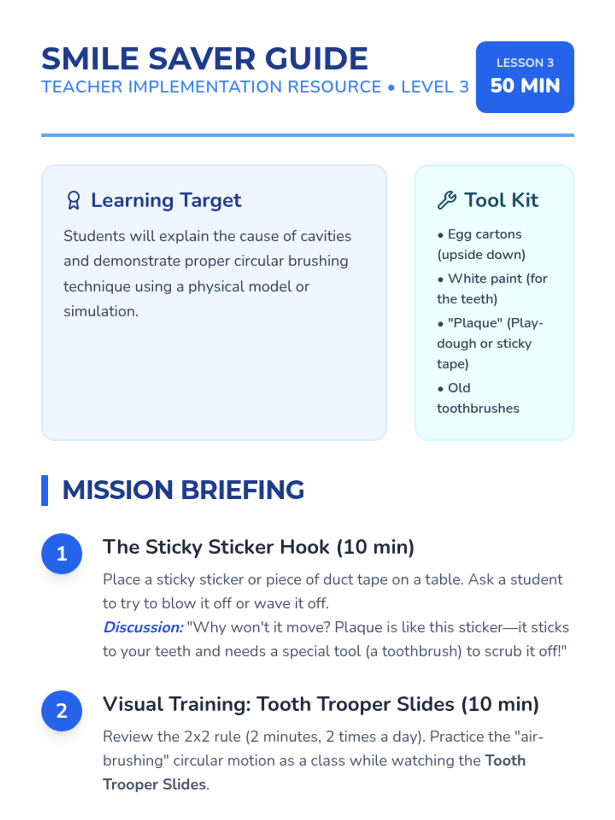 A fun and engaging introduction to oral hygiene for first-grade students, focusing on proper brushing and flossing techniques, healthy habits, and the importance of routine care.