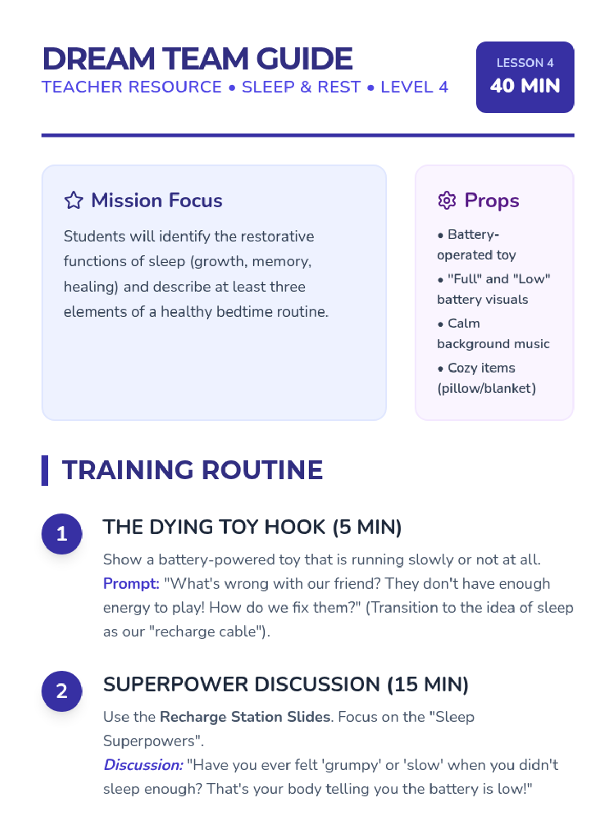 A comprehensive 1st Grade sequence focused on personal hygiene, germs, dental health, sleep, and building daily routines through a 'Body Hero' theme.