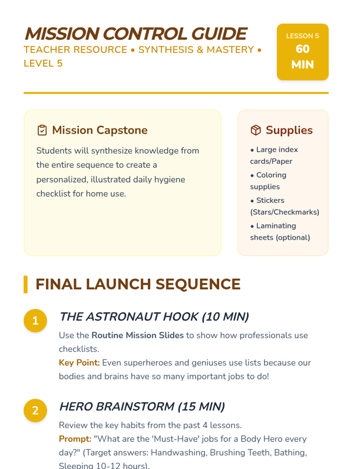 A comprehensive unit on personal hygiene and self-care habits for young learners, focusing on daily routines that keep bodies healthy and strong.