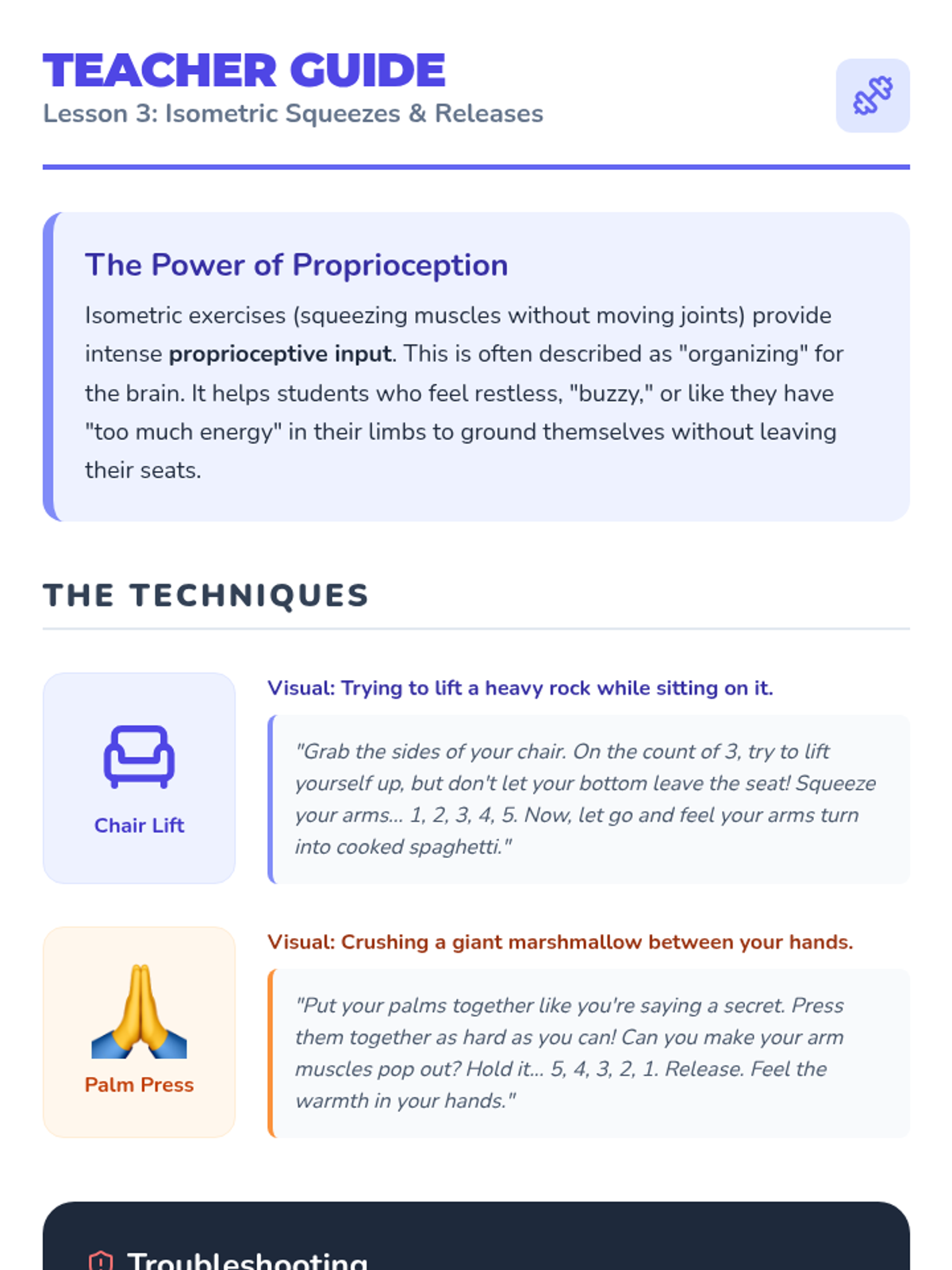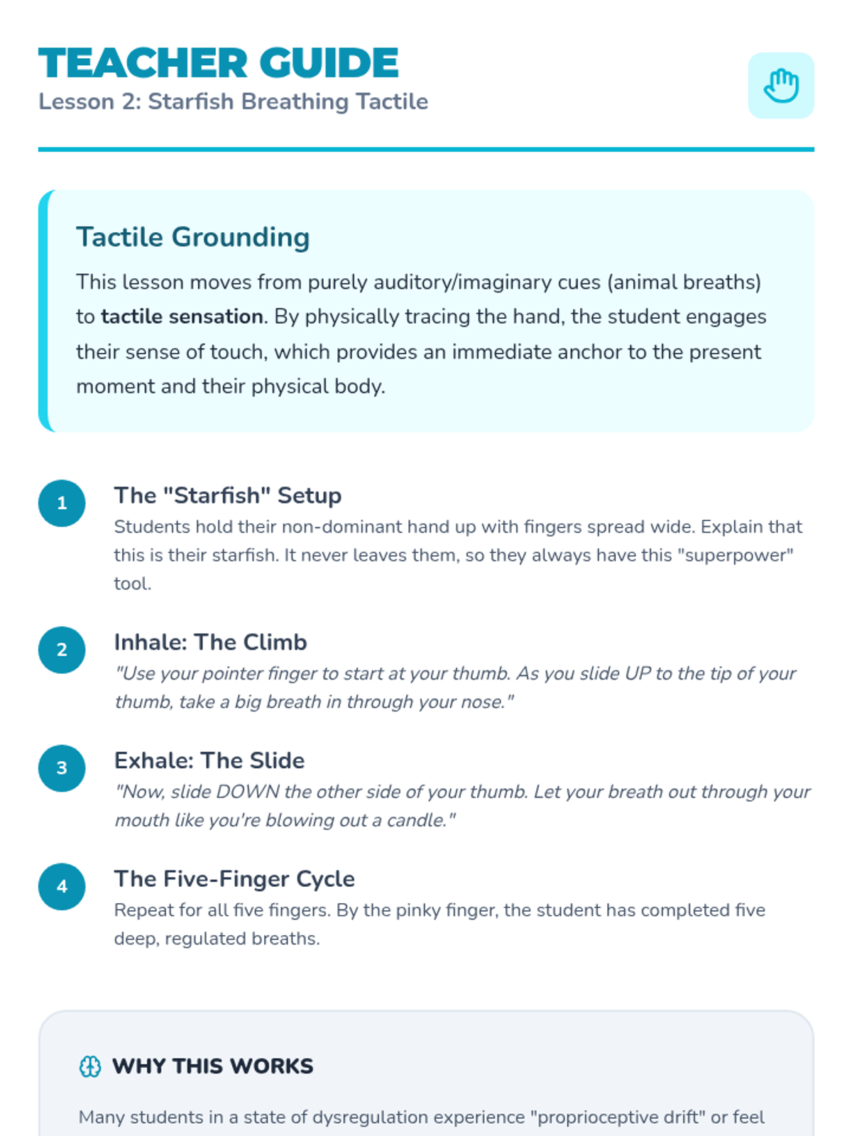 This sequence teaches Kindergarten students somatic strategies like breathwork and muscle movements to manage dysregulation. Students learn 'invisible superpowers' to calm their bodies in any environment without specialized equipment.