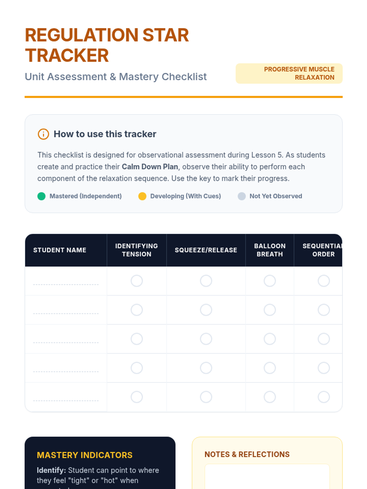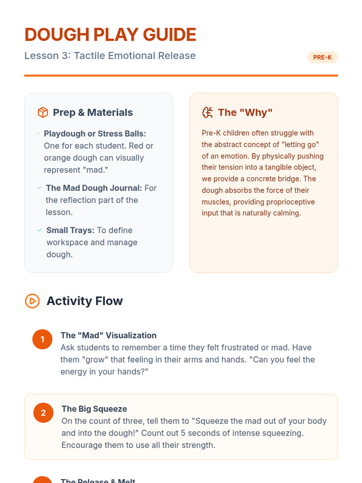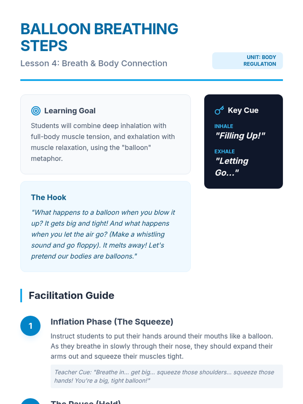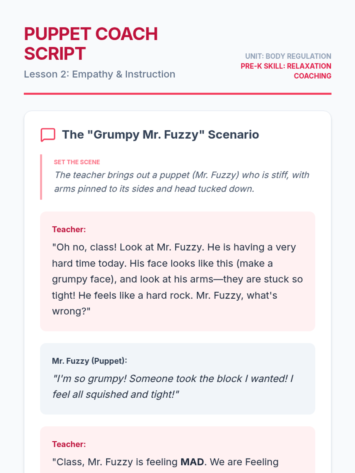 A Pre-K sequence focused on teaching children how to identify physical sensations of tension and use progressive muscle relaxation to manage big emotions like anger and frustration.