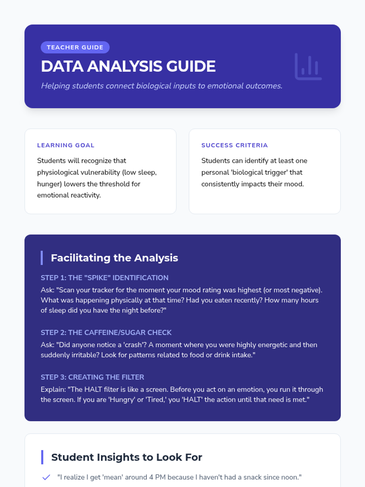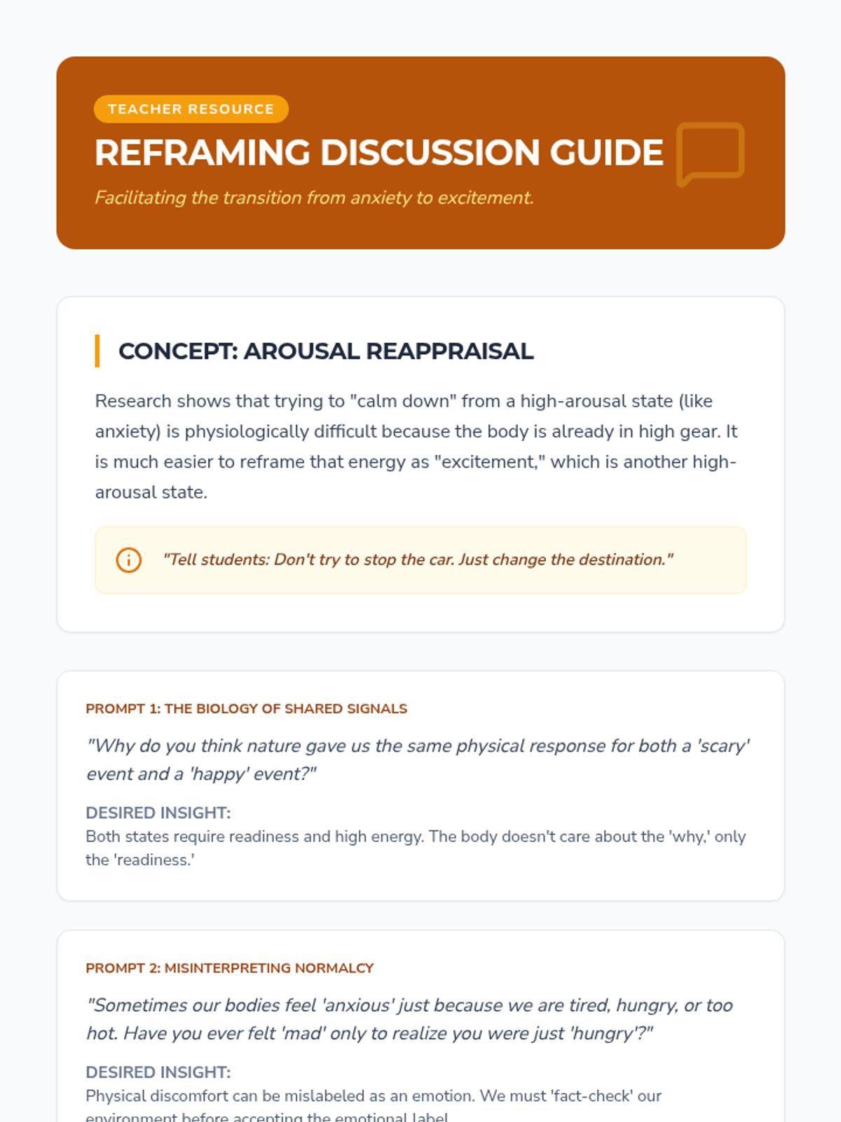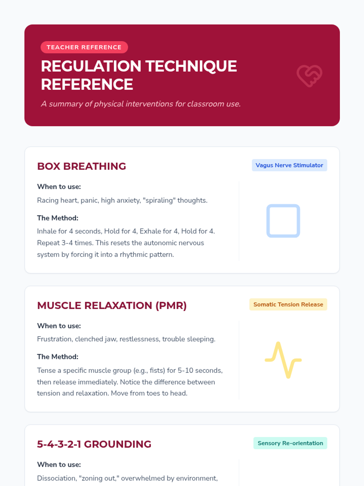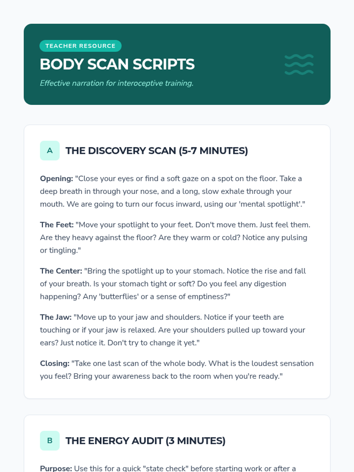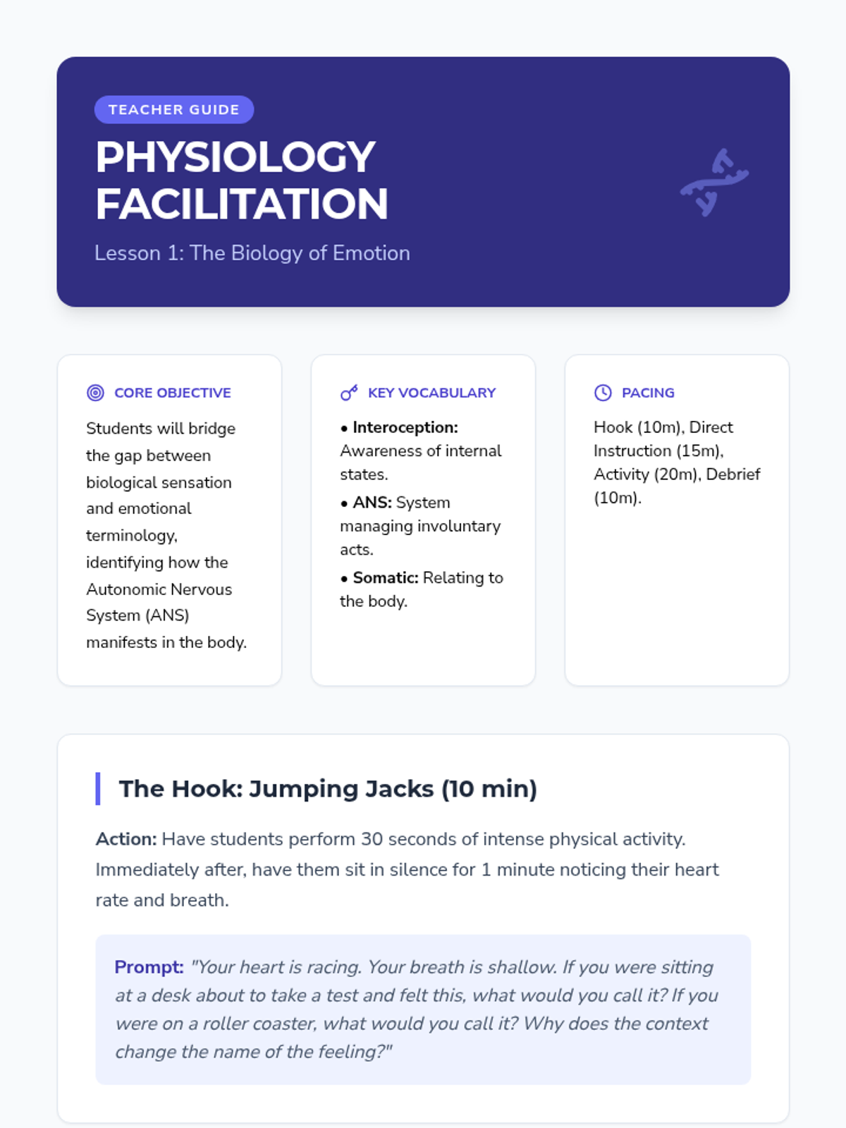 A 5-lesson sequence for 8th-grade students focused on identifying emotional states through physiological signals and body cues. Students learn the biological basis of emotion, practice interoception, and develop physical regulation strategies.