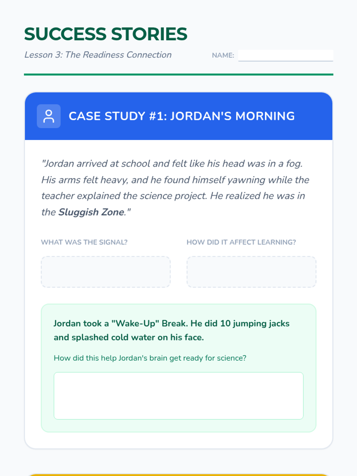 A 5-lesson sequence for 4th Grade students focused on interoception and self-regulation. Students learn to recognize physiological signals and use proactive sensory breaks to stay in a 'ready to learn' state.