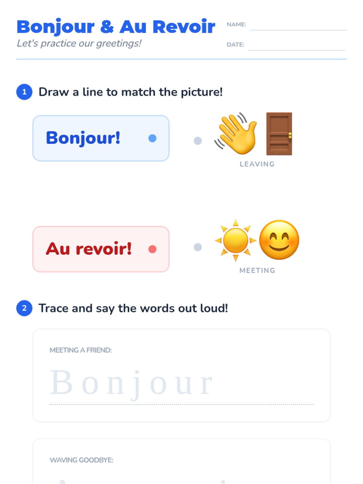 A fun, interactive introduction to French greetings and manners designed for 1st graders. Students learn through puppets, games, and role-play to confidently say hello, goodbye, and use magic words in various social settings.