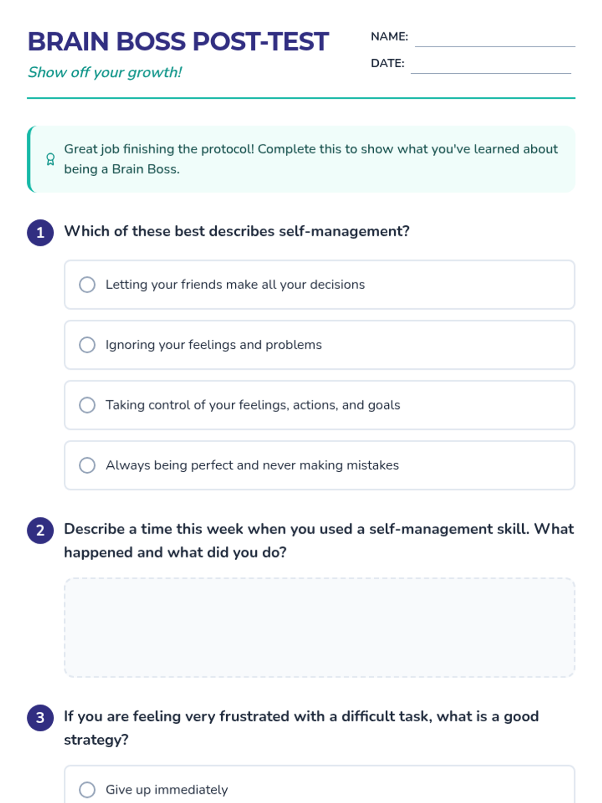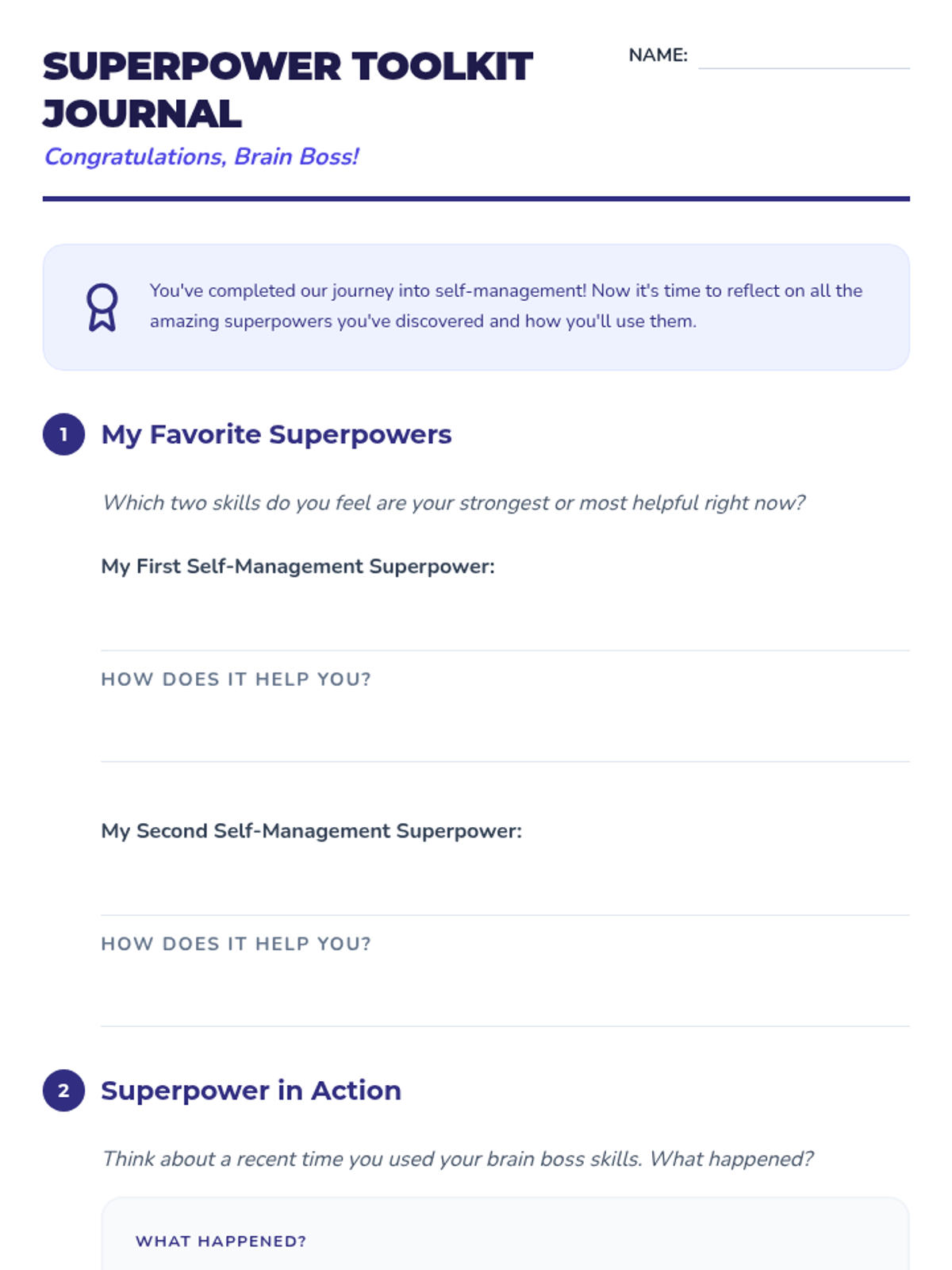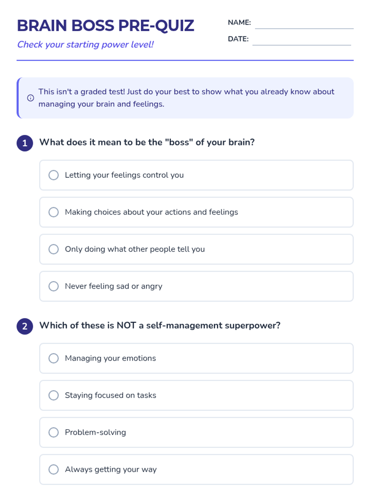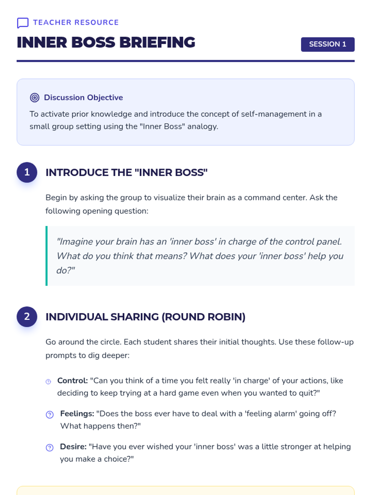 A five-part small group series for 4th-grade girls focused on self-management, emotional regulation, focus, and problem-solving through a 'Brain Boss' superpower theme.