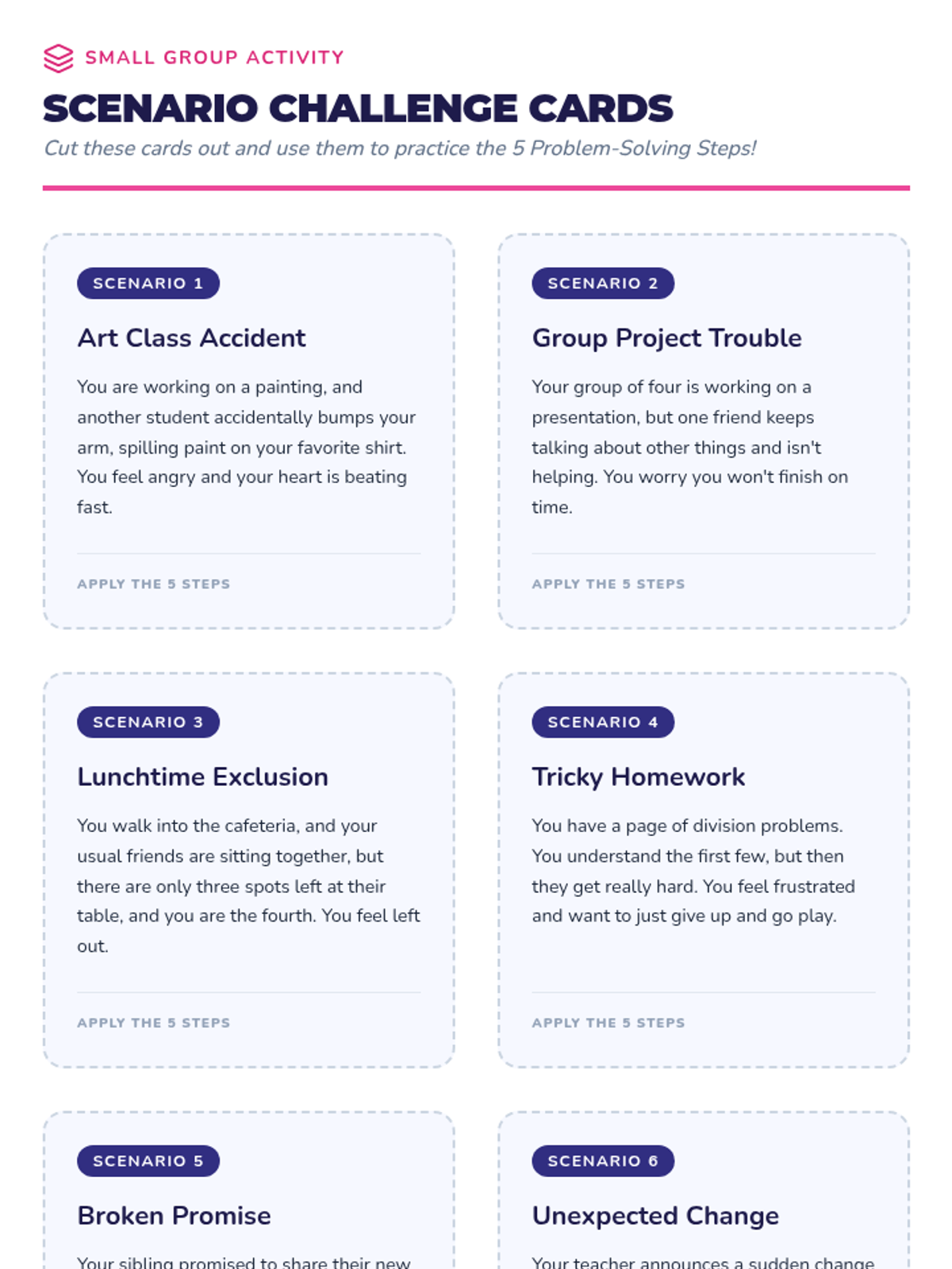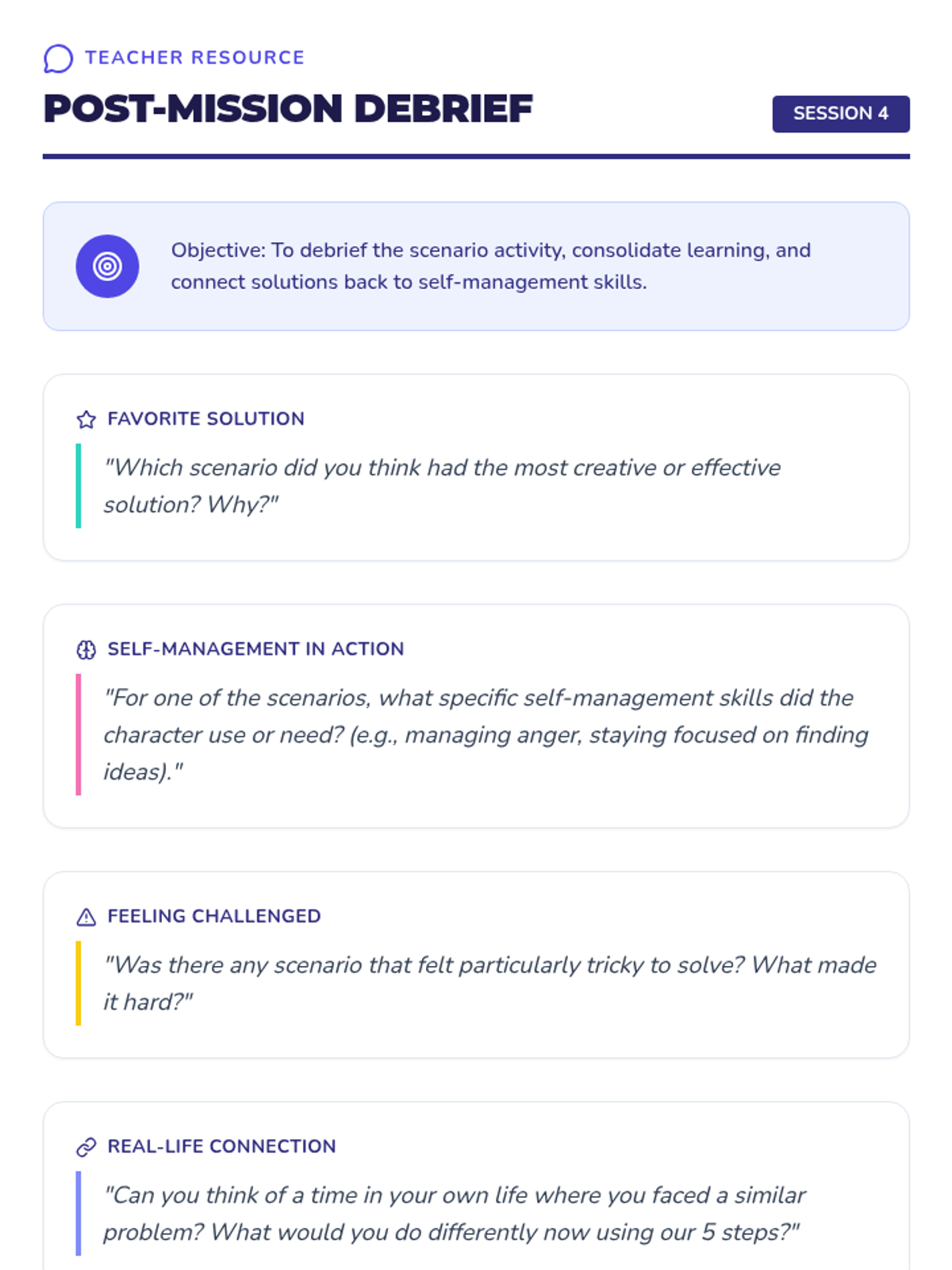 A comprehensive restorative practice sequence for upper elementary classrooms. It focuses on rebuilding classroom culture through a structured "Reset" meeting and provides tools for peer-to-peer and group mediation to resolve ongoing conflicts and restore the learning environment.