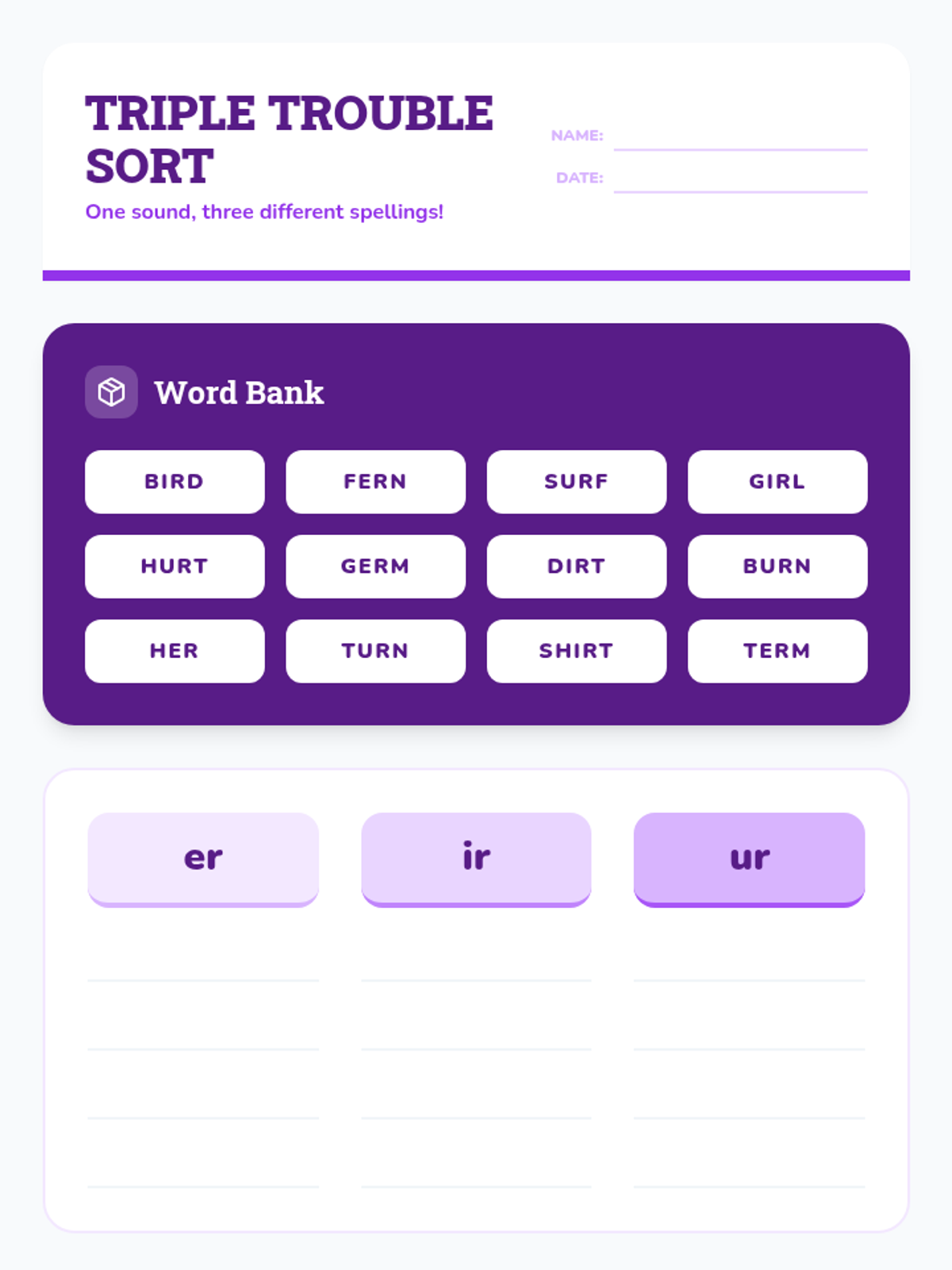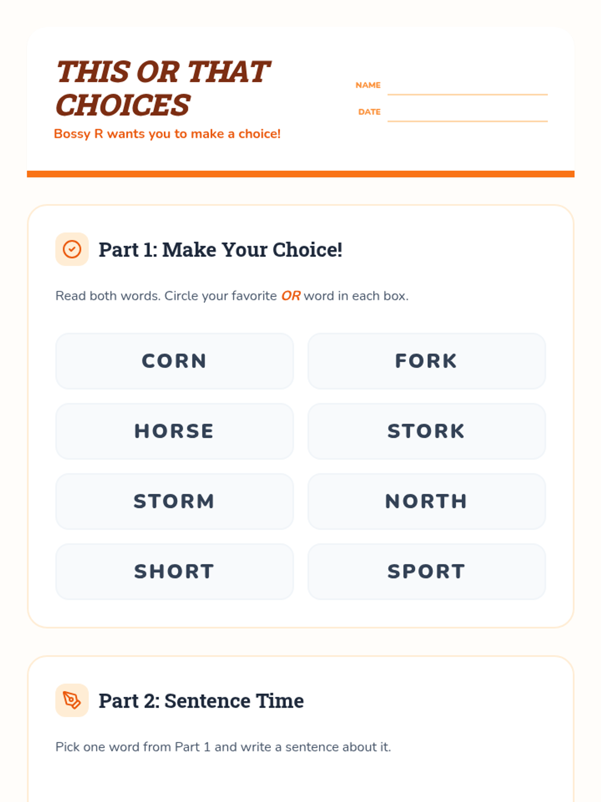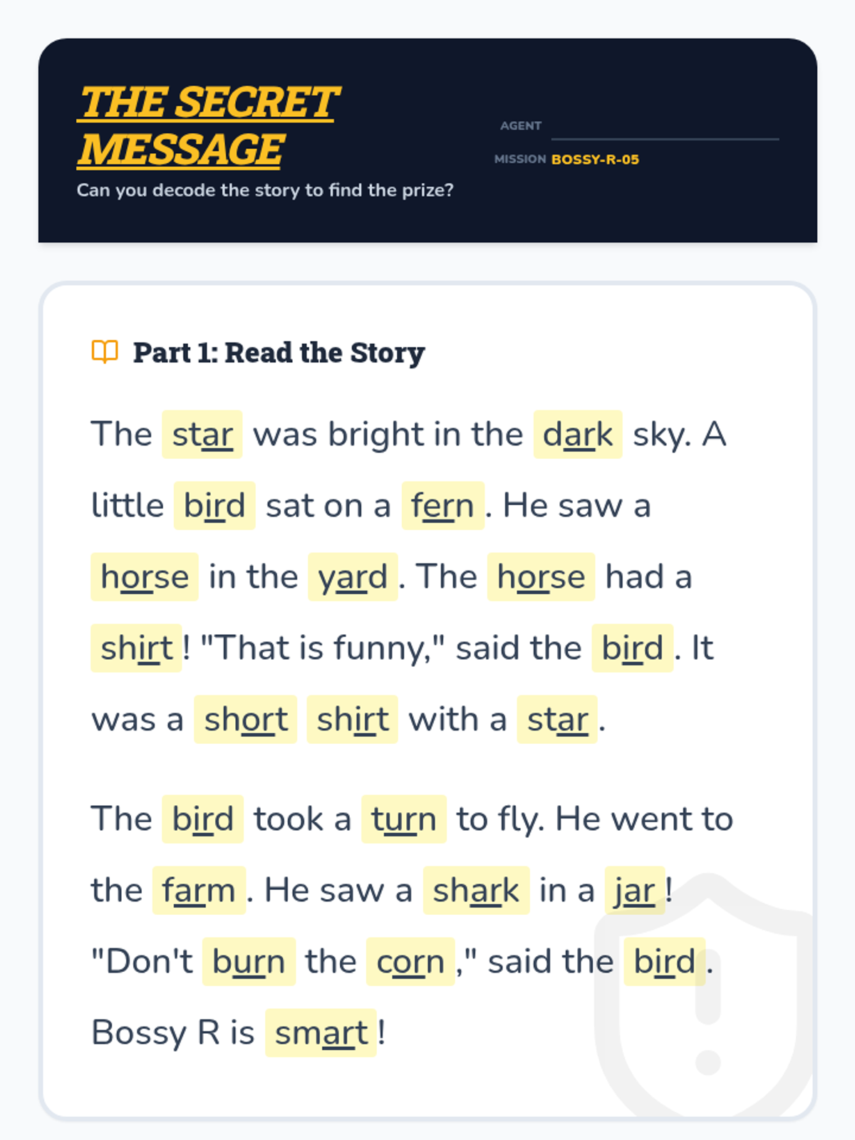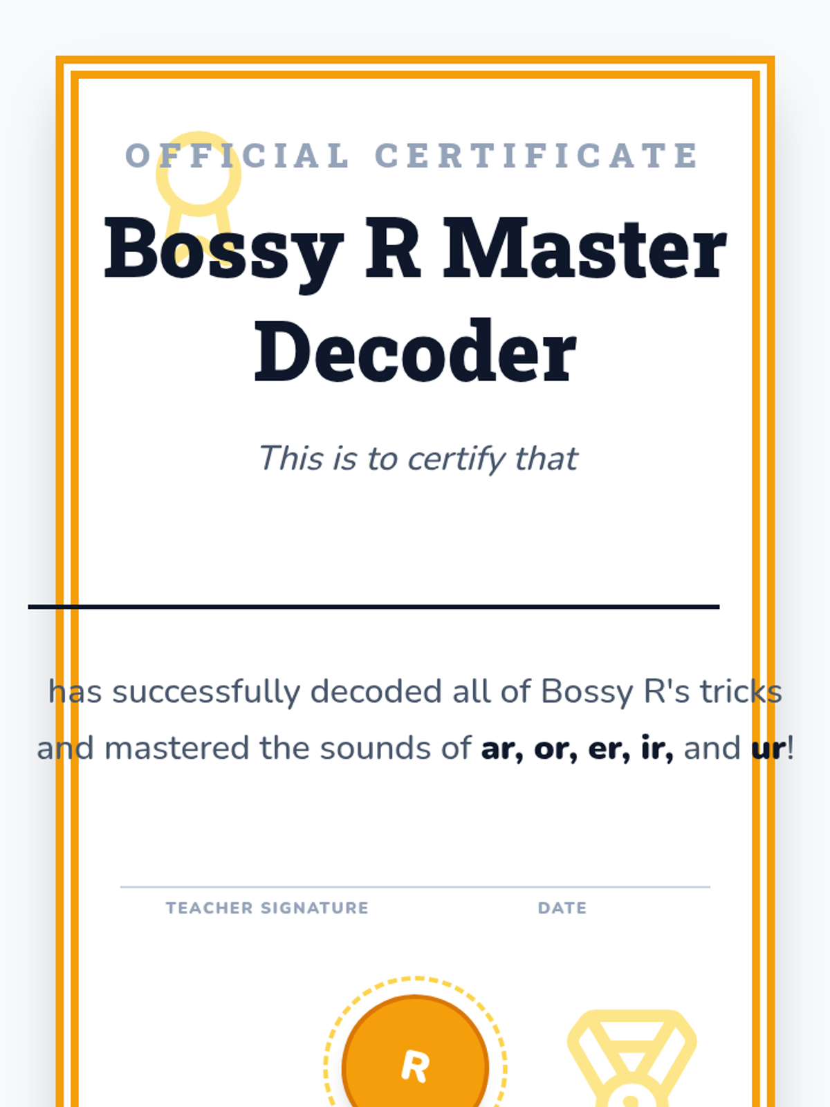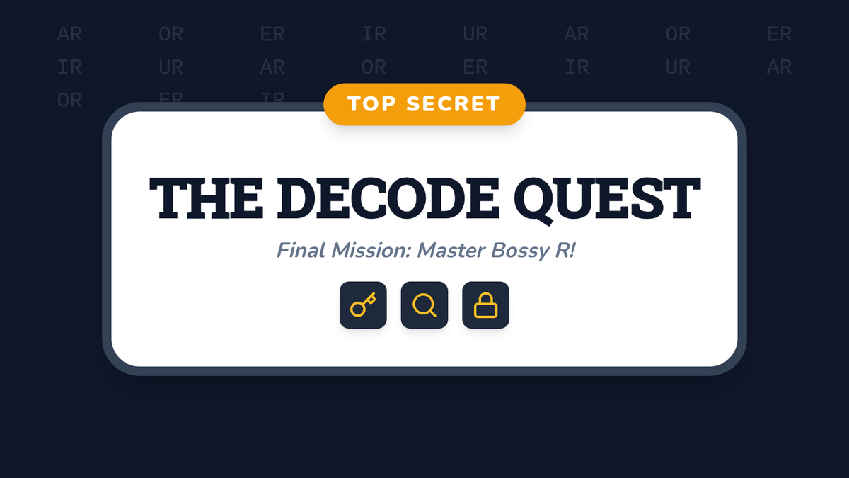 A comprehensive 1st-grade phonics sequence introducing R-controlled vowels through the character of 'Bossy R'. Students explore 'ar', 'or', and the triplet 'er, ir, ur' using games, role-play, and decoding challenges.
