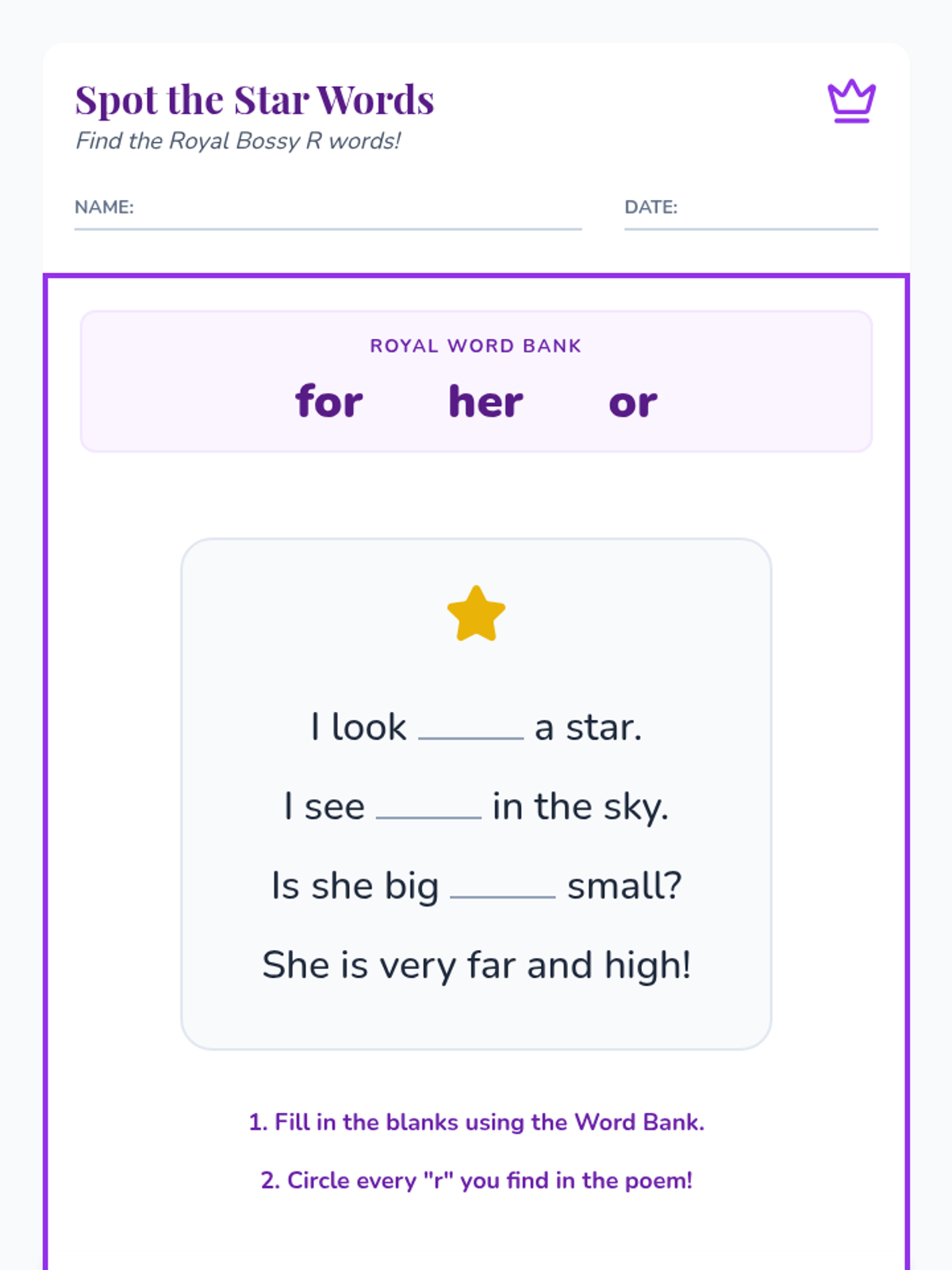 This project-based sequence integrates r-controlled vowels (Bossy R) into creative expression and storytelling for Kindergarten students. Students move from identifying sight words in context to constructing and sharing their own patterned stories, emphasizing the application of phonics in meaningful reading and writing contexts.