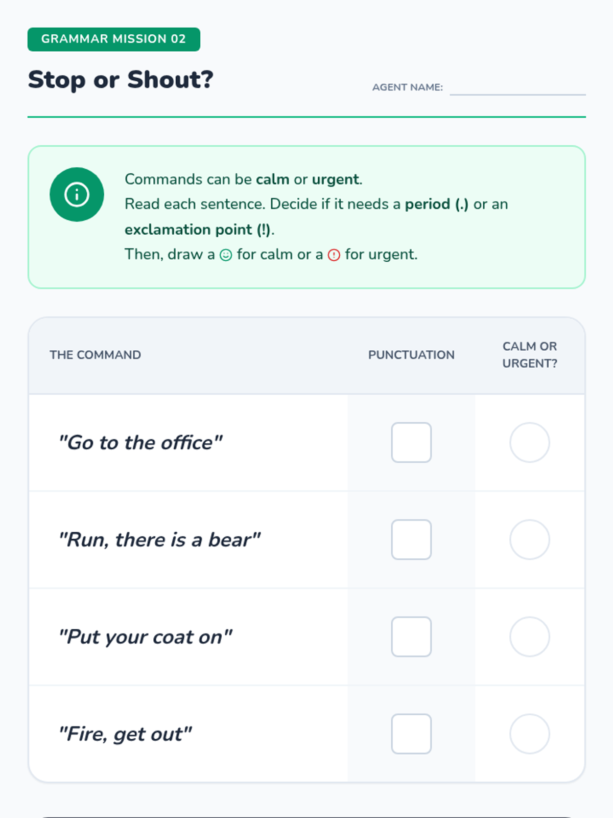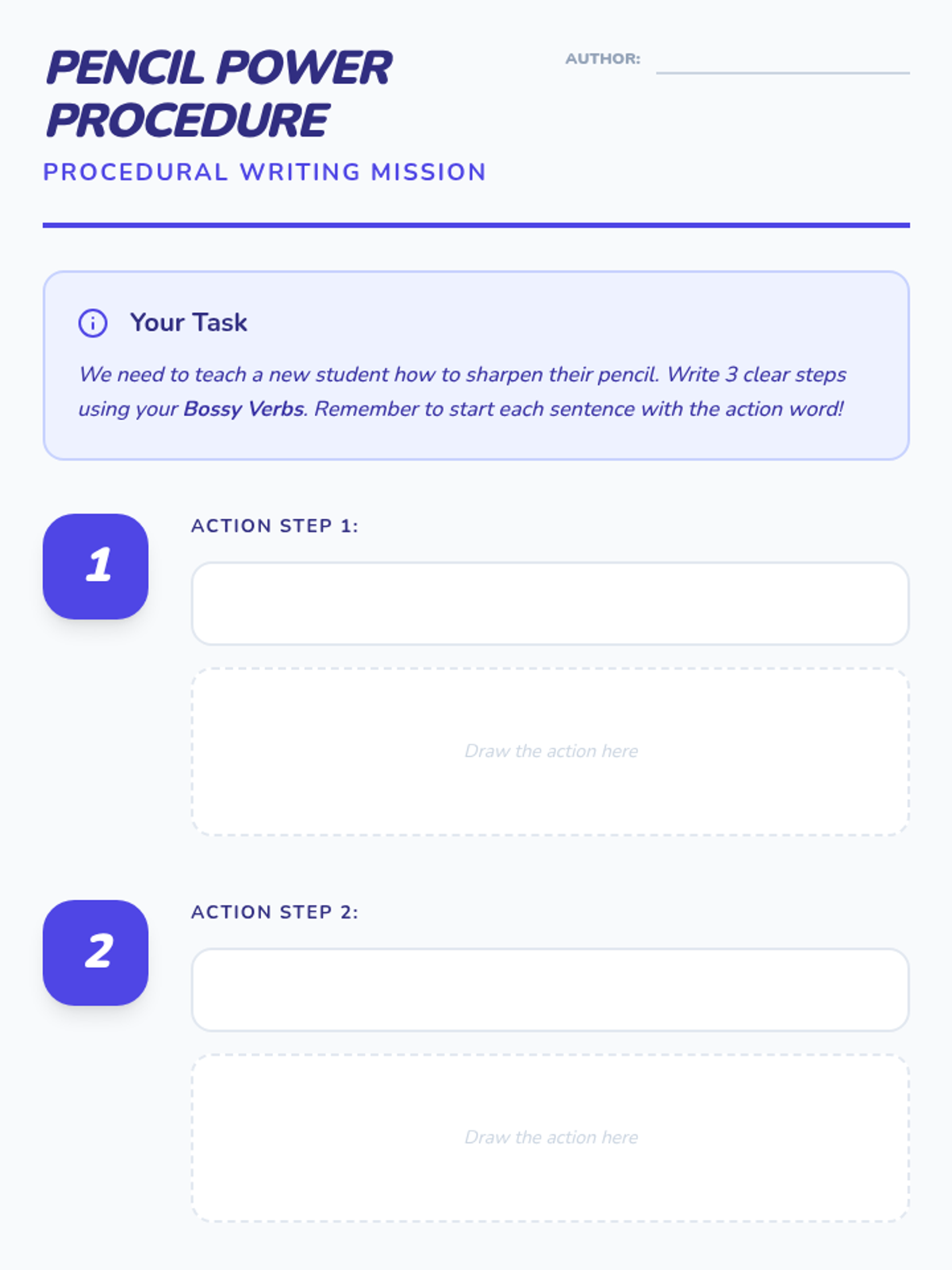 This sequence introduces 1st Grade students to the imperative mood through the concept of 'Bossy Verbs.' Students will move from identifying commands in speech to writing their own multi-step 'How-To' guides, focusing on clarity, punctuation, and sequencing.