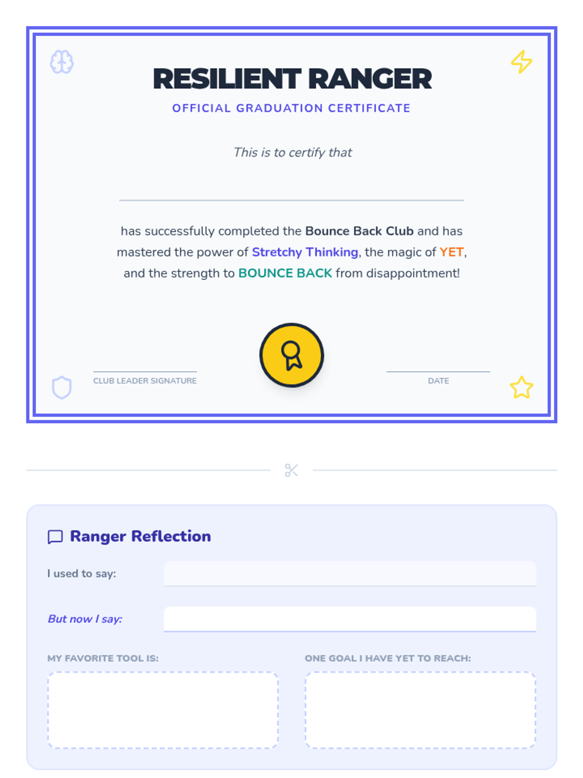 A 6-week lunch-time group for 2nd graders focused on building executive functioning skills (planning, focus, organization) and self-confidence (resilience, growth mindset) through quick 15-minute active sessions.