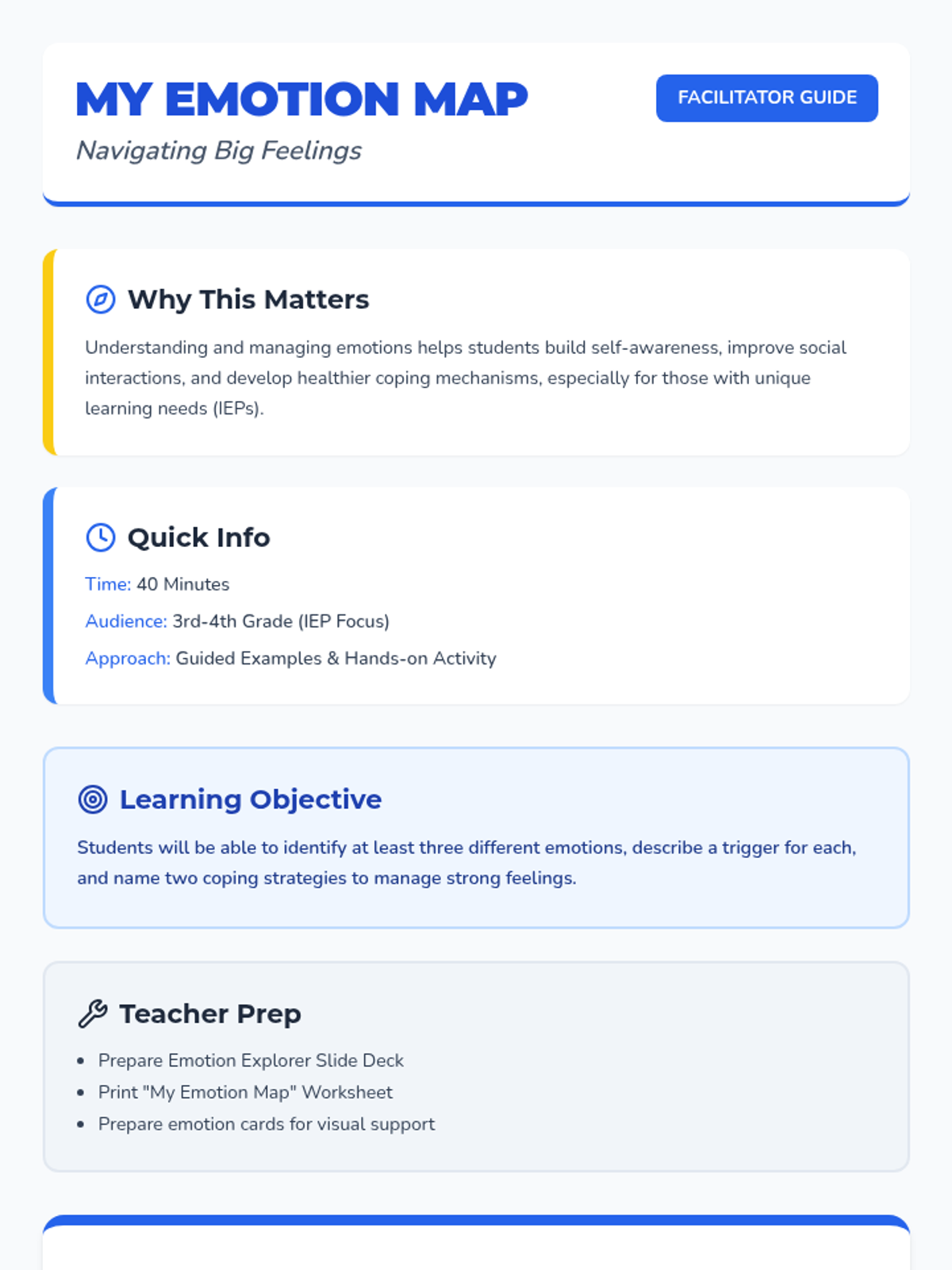 A comprehensive sequence for K-3 students to build core self-awareness skills, including identifying emotions, recognizing personal strengths, and developing a growth mindset.