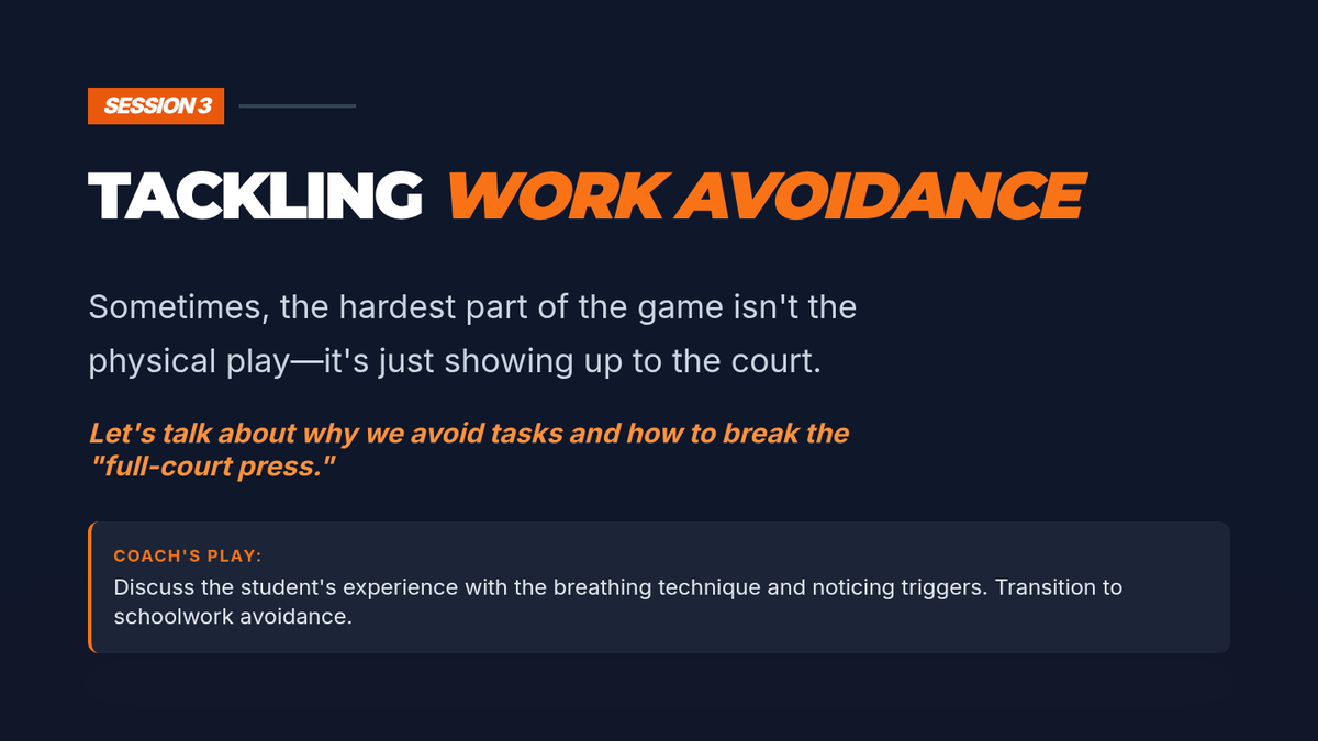 A 4-session individual counseling sequence for an 8th-grade student, using basketball analogies to process grief, regulate emotions, and overcome work avoidance.