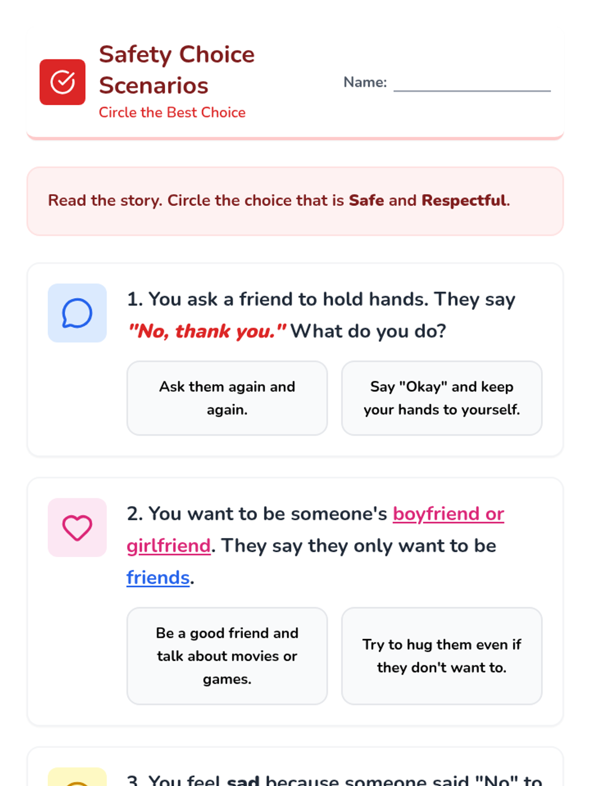 A comprehensive mini-unit for high school Life Skills students on personal boundaries, specifically focusing on the difference between friendships and romantic relationships, and how to respect the word 'No'.
